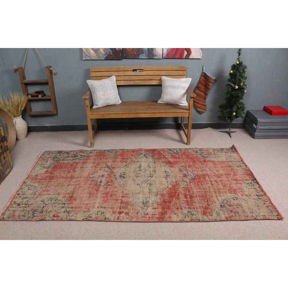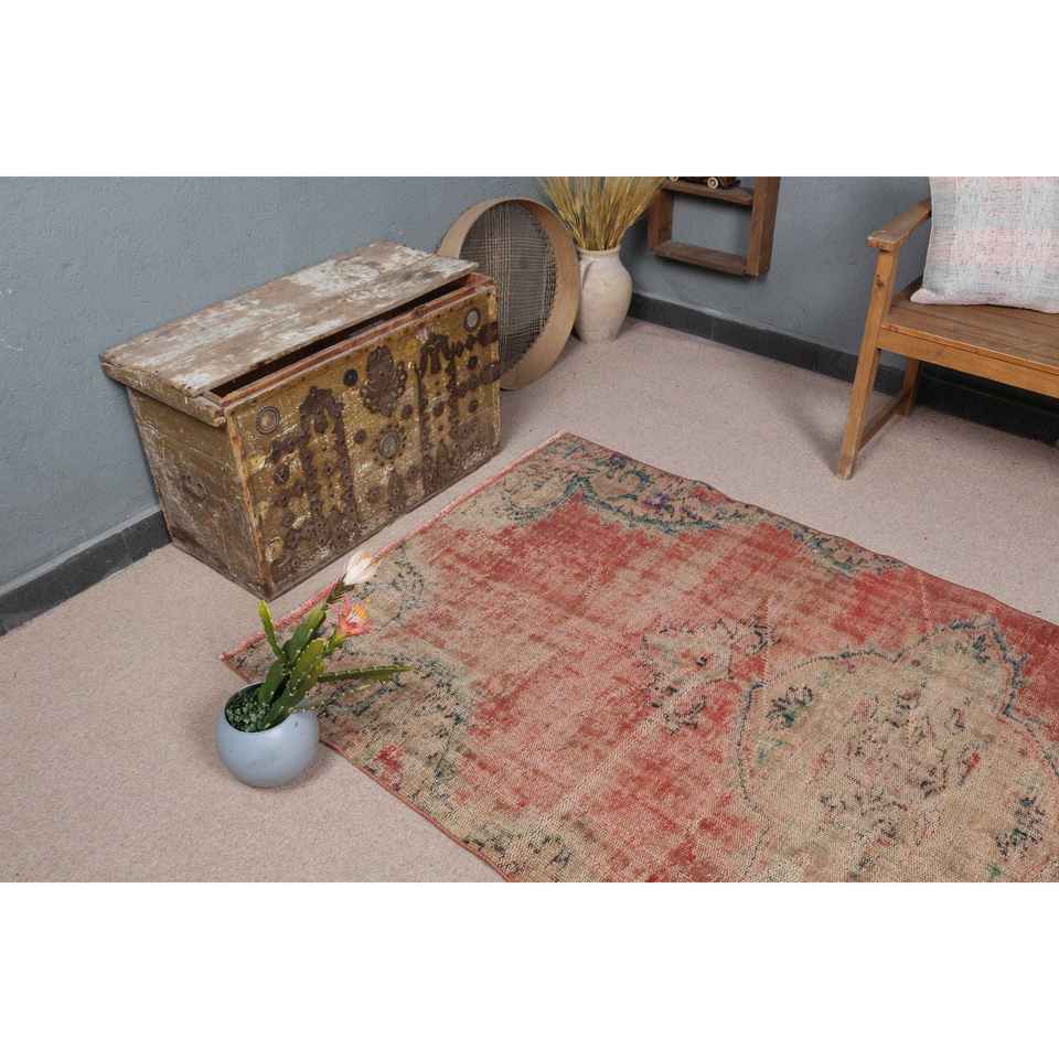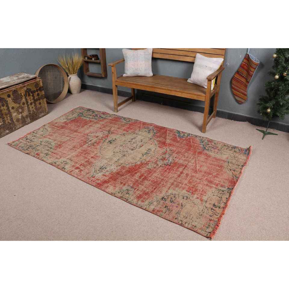 พรมตุรกีขนาด 3.9x8.7 ฟุต พรมวินเทจ พรมขนสัตว์ลายดอกไม้สีแดง