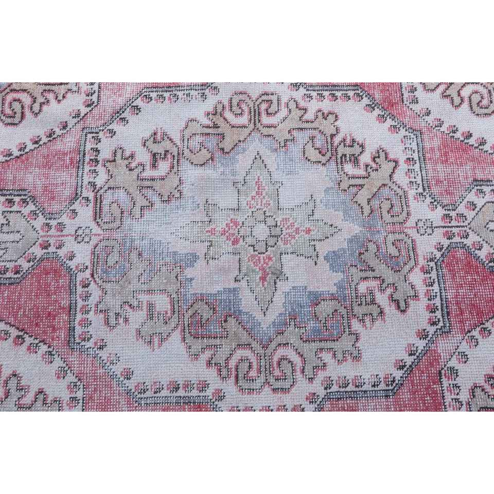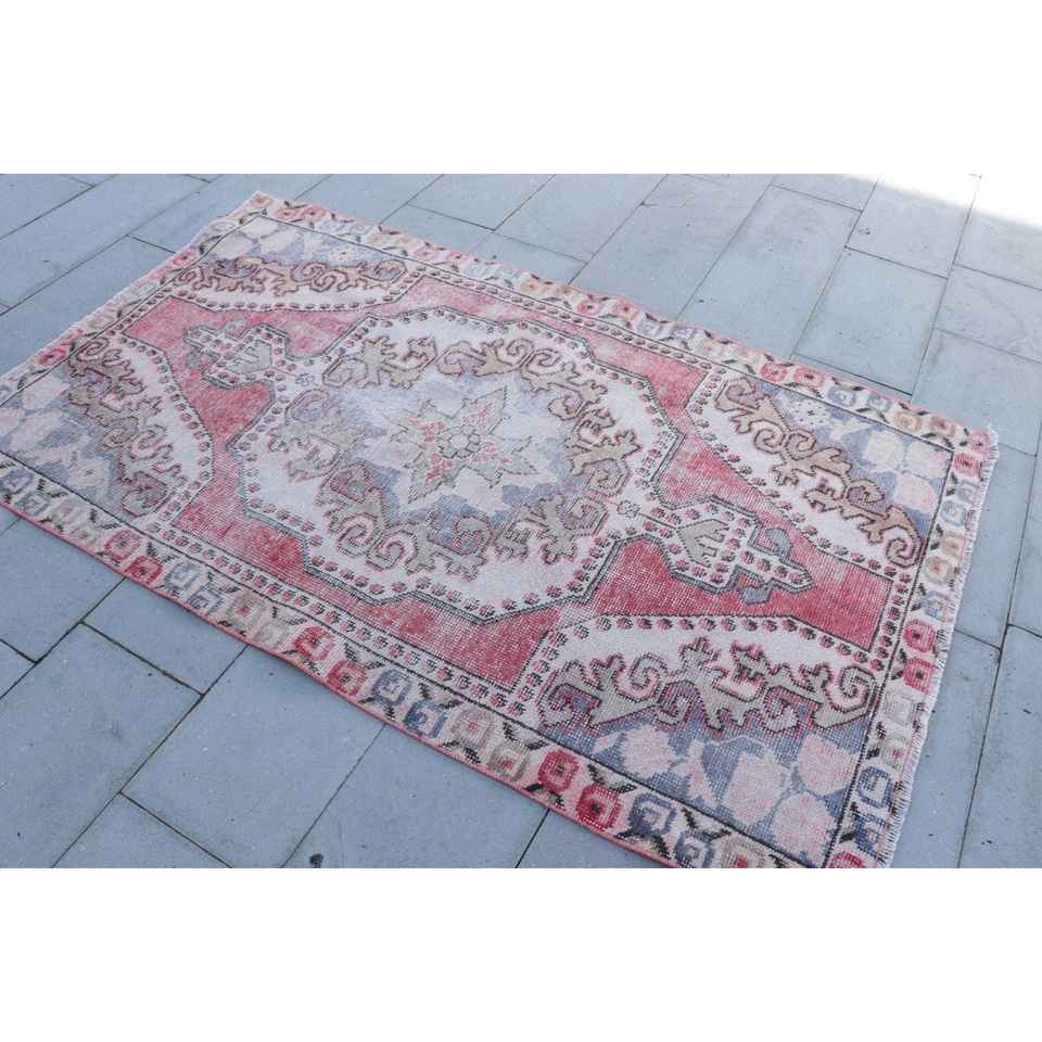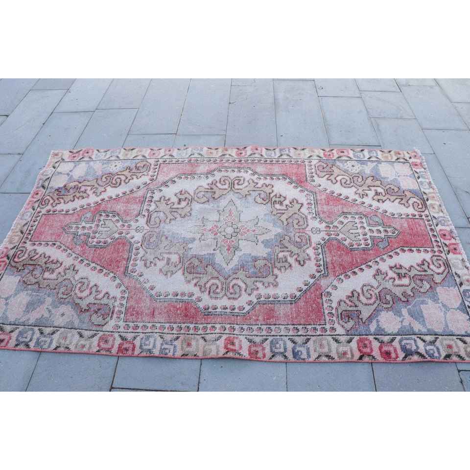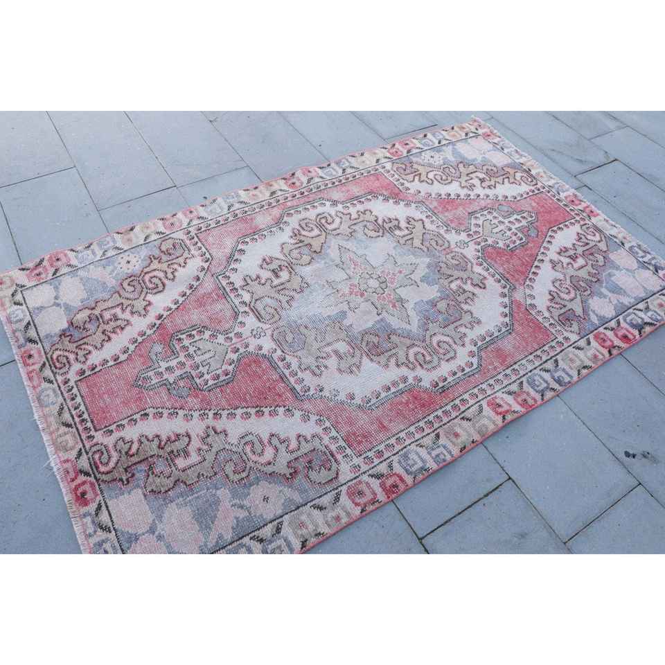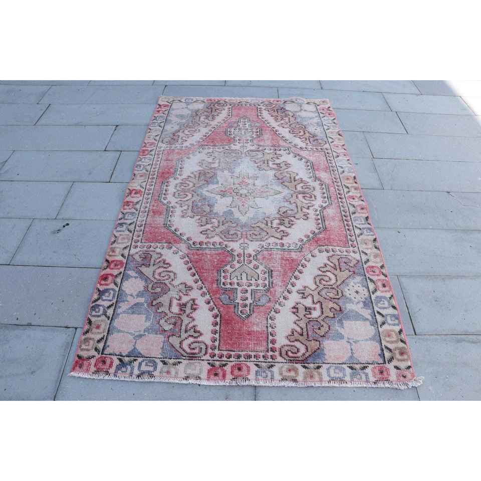 พรมตุรกีขนาด 4.1x6.8 ฟุต พรมวินเทจ พรมลายดอกไม้สีแดงน้ำเงิน
