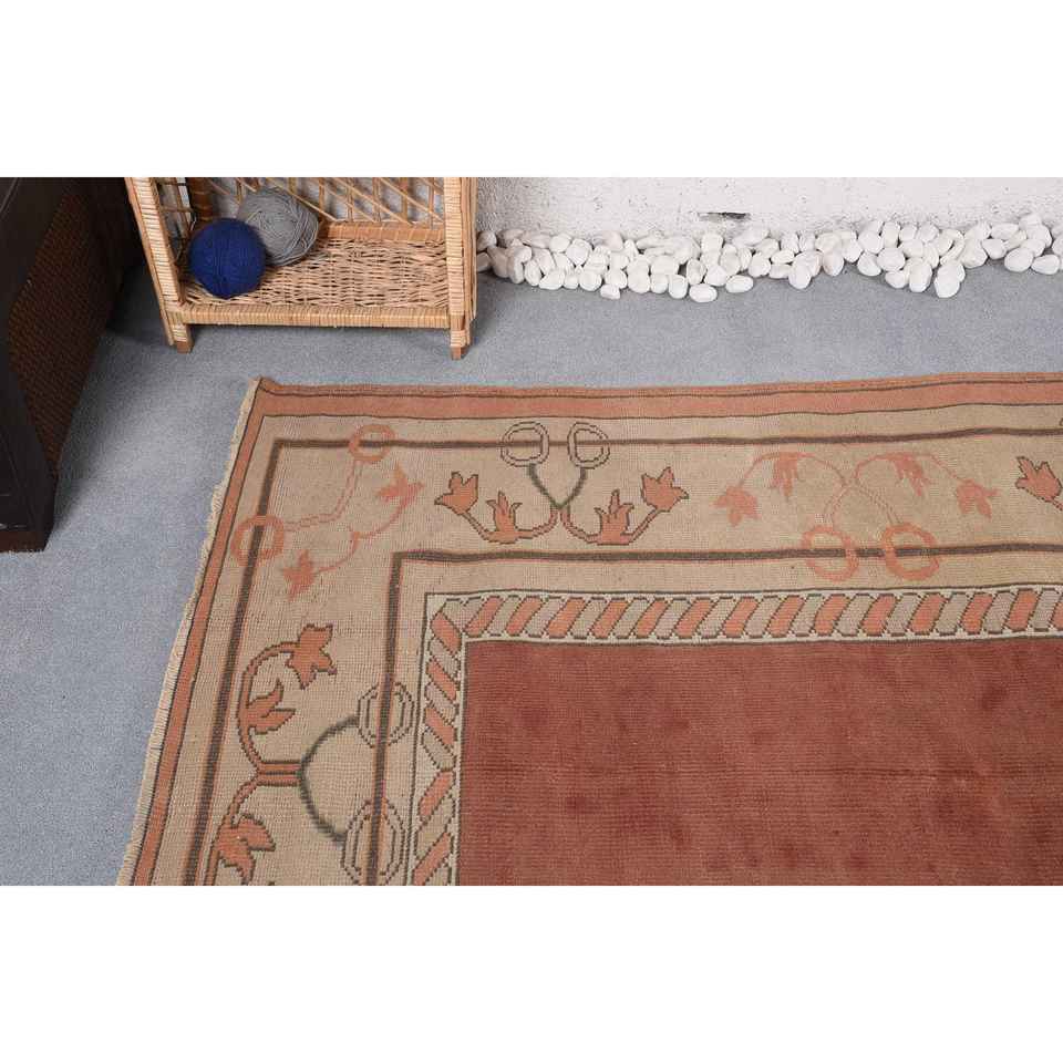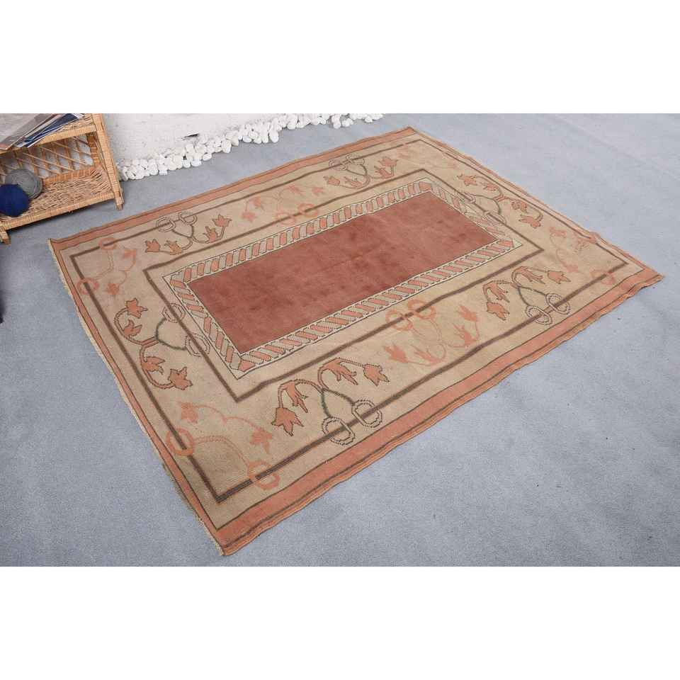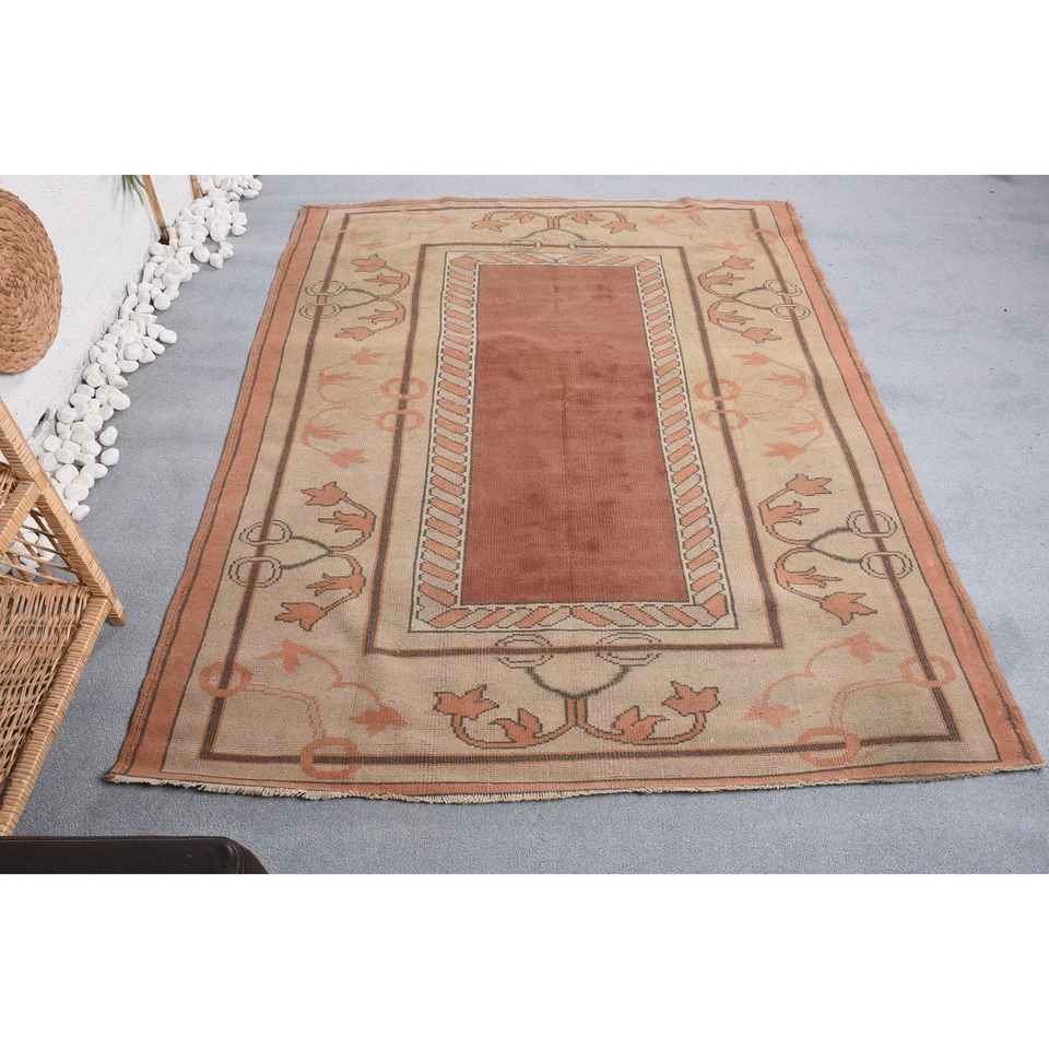 พรมตุรกีขนาด 5.1x6.4 ฟุต พรมวินเทจ พรมขนสัตว์สีเบจสไตล์ตะวันตกเฉียงใต้