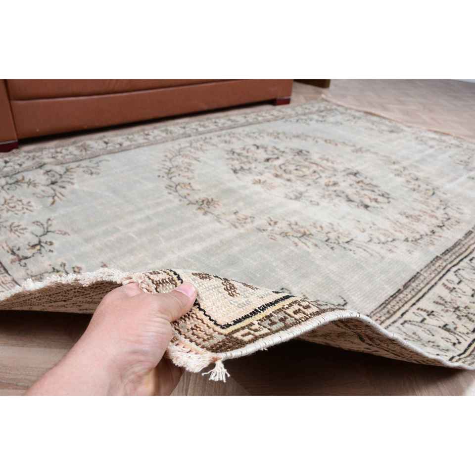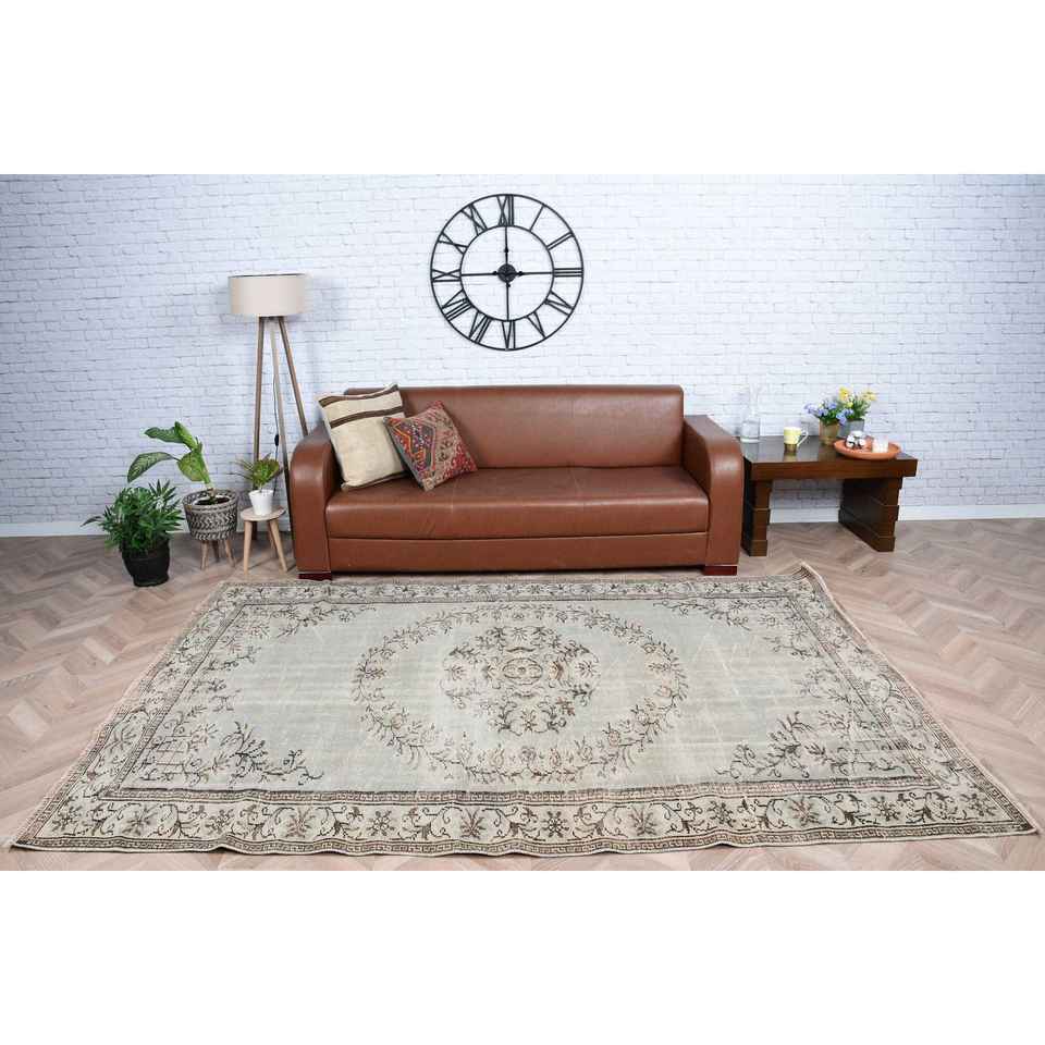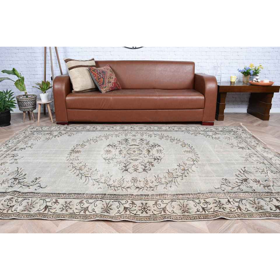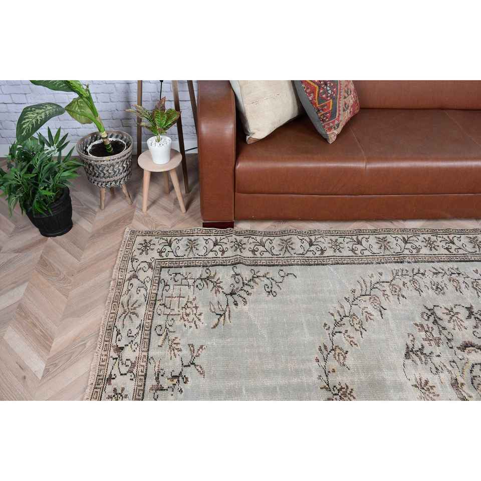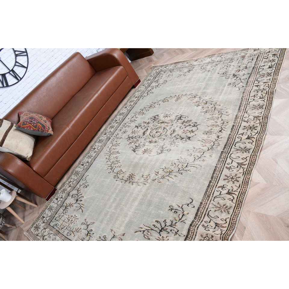 พรมตุรกีขนาด 5.9x8.7 ฟุต พรมวินเทจขนาดใหญ่ พรมขนสัตว์สีเทาแบบปะติดปะต่อ