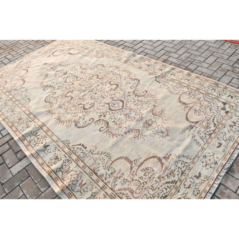 พรมตุรกีขนาด 6.1x10.3 ฟุต พรมวินเทจขนาดใหญ่ พรมสีน้ำตาลเทาล้วน