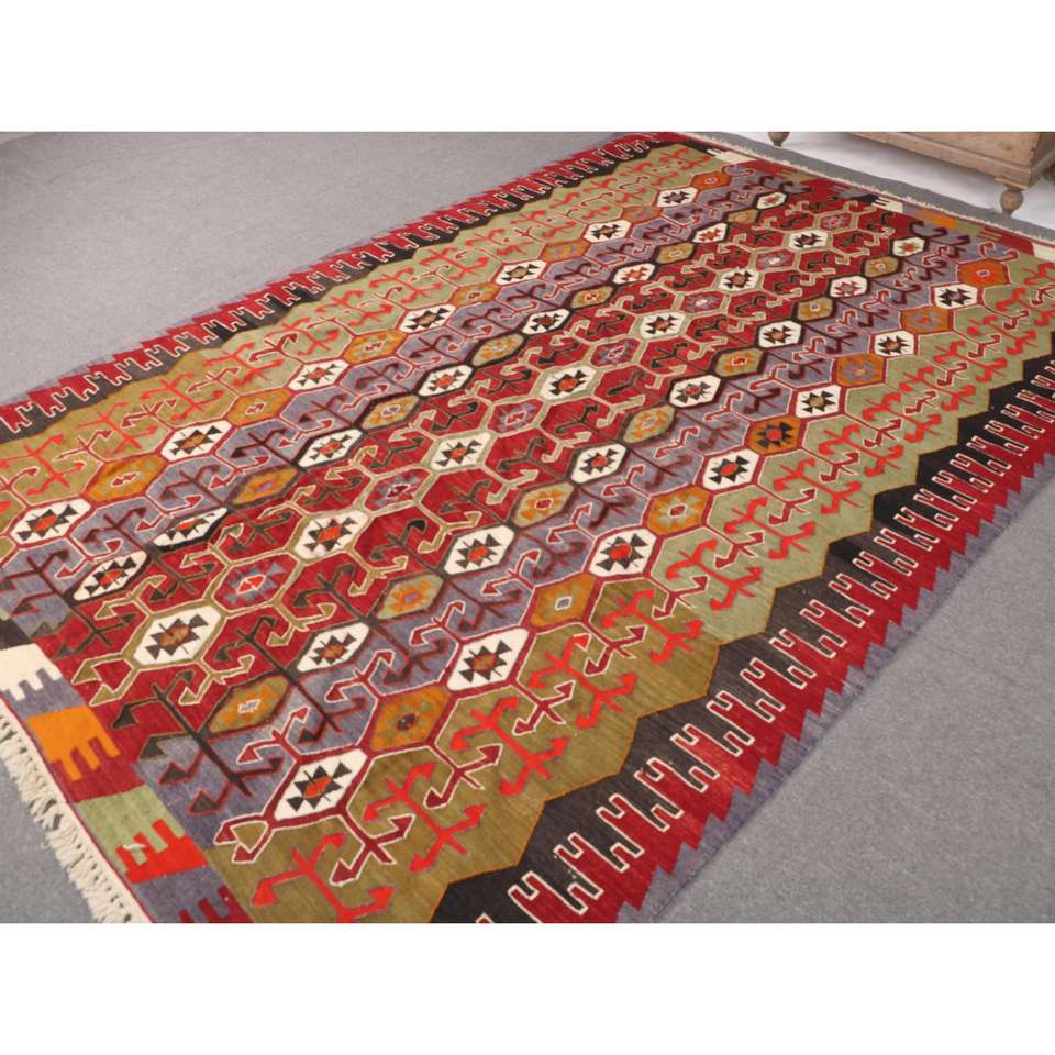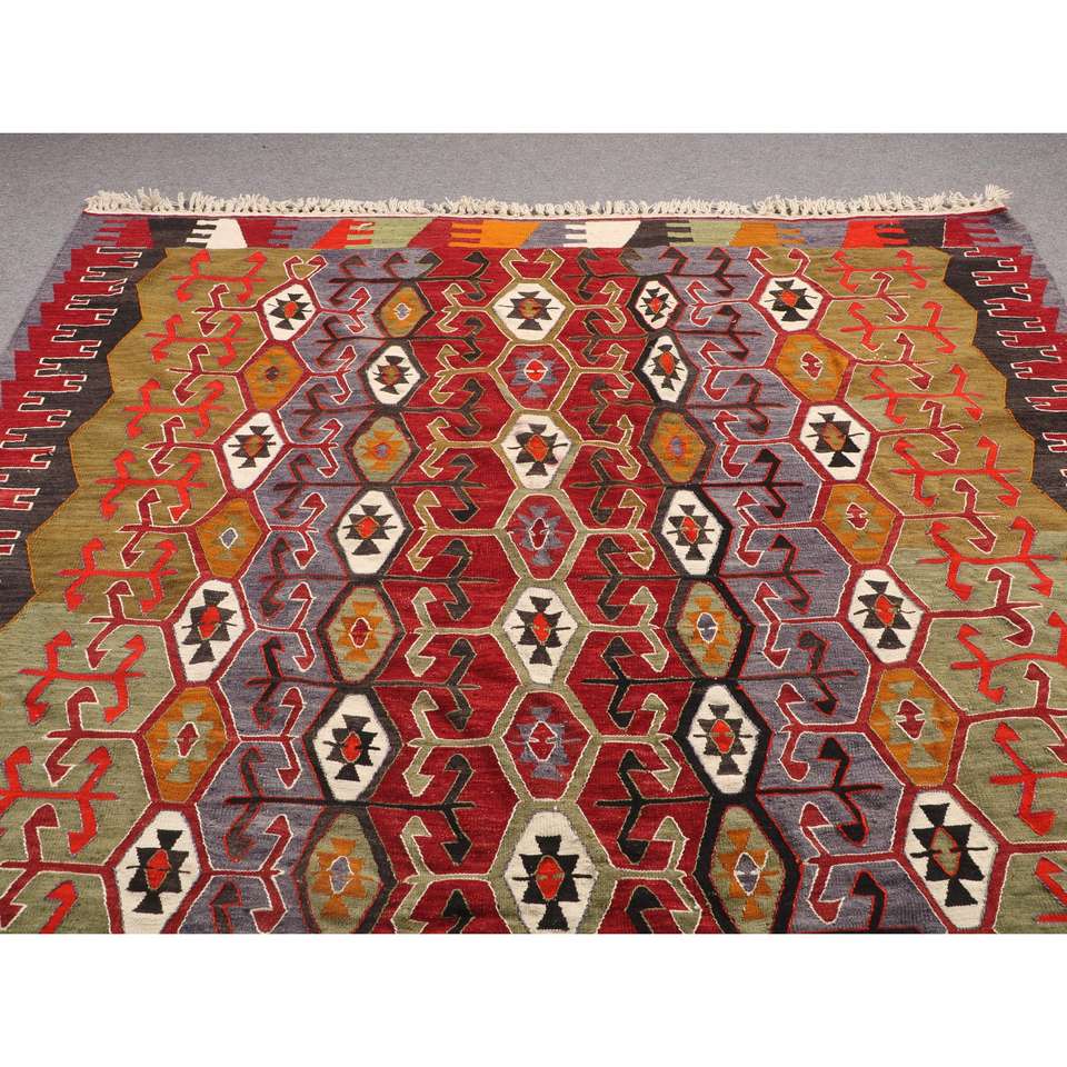 พรมตุรกีขนาดใหญ่ 6.7x10.4 ฟุต พรมวินเทจ พรมคิลิมสีแดงแบบโมร็อกโก
