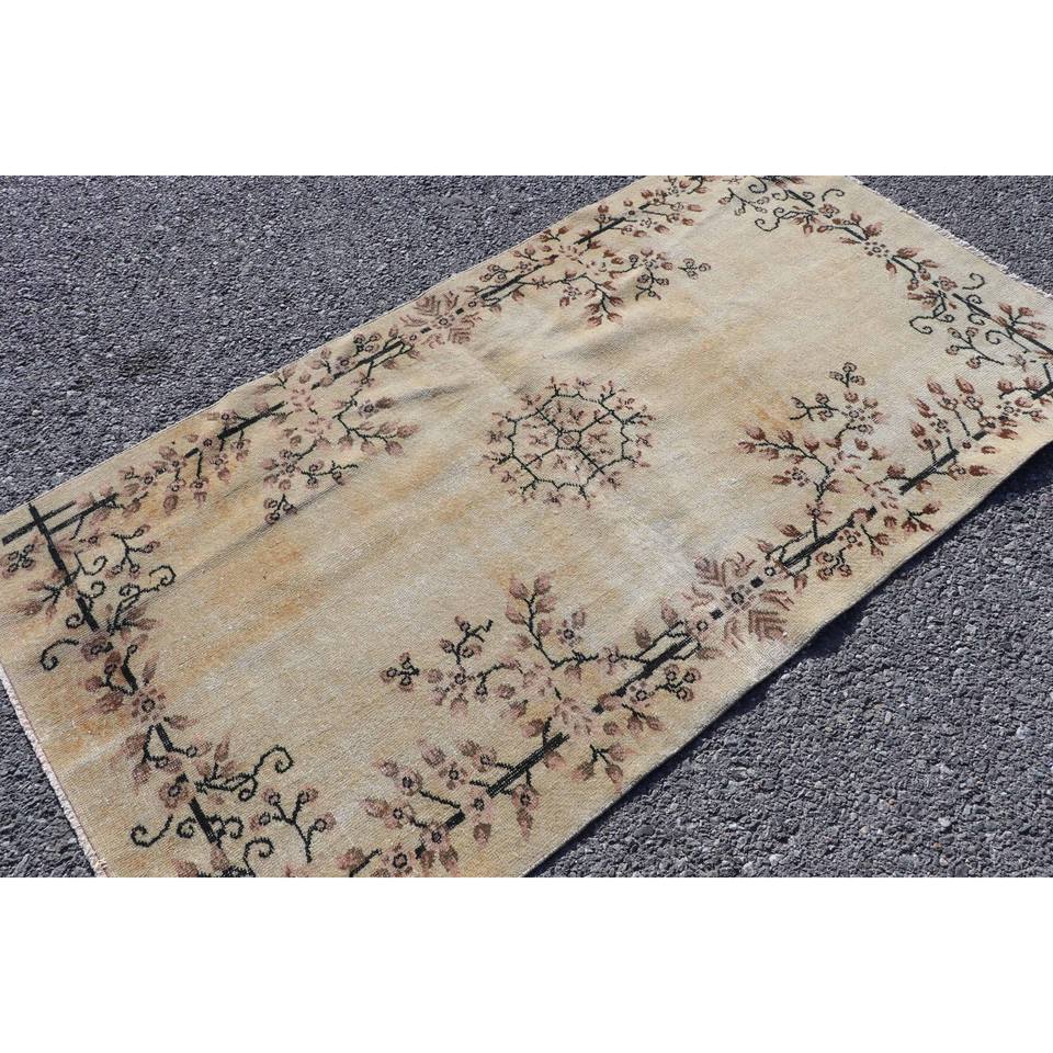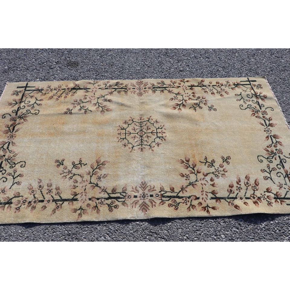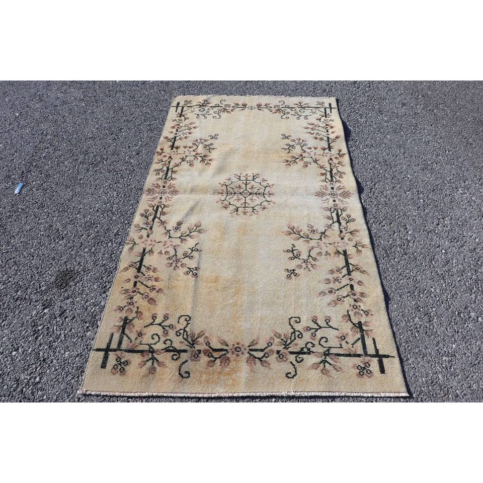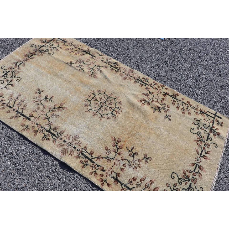 พรมลายดอกไม้สีน้ำตาลสไตล์วินเทจ ขนาด 3.5x6.4 ฟุต ทำจากขนสัตว์