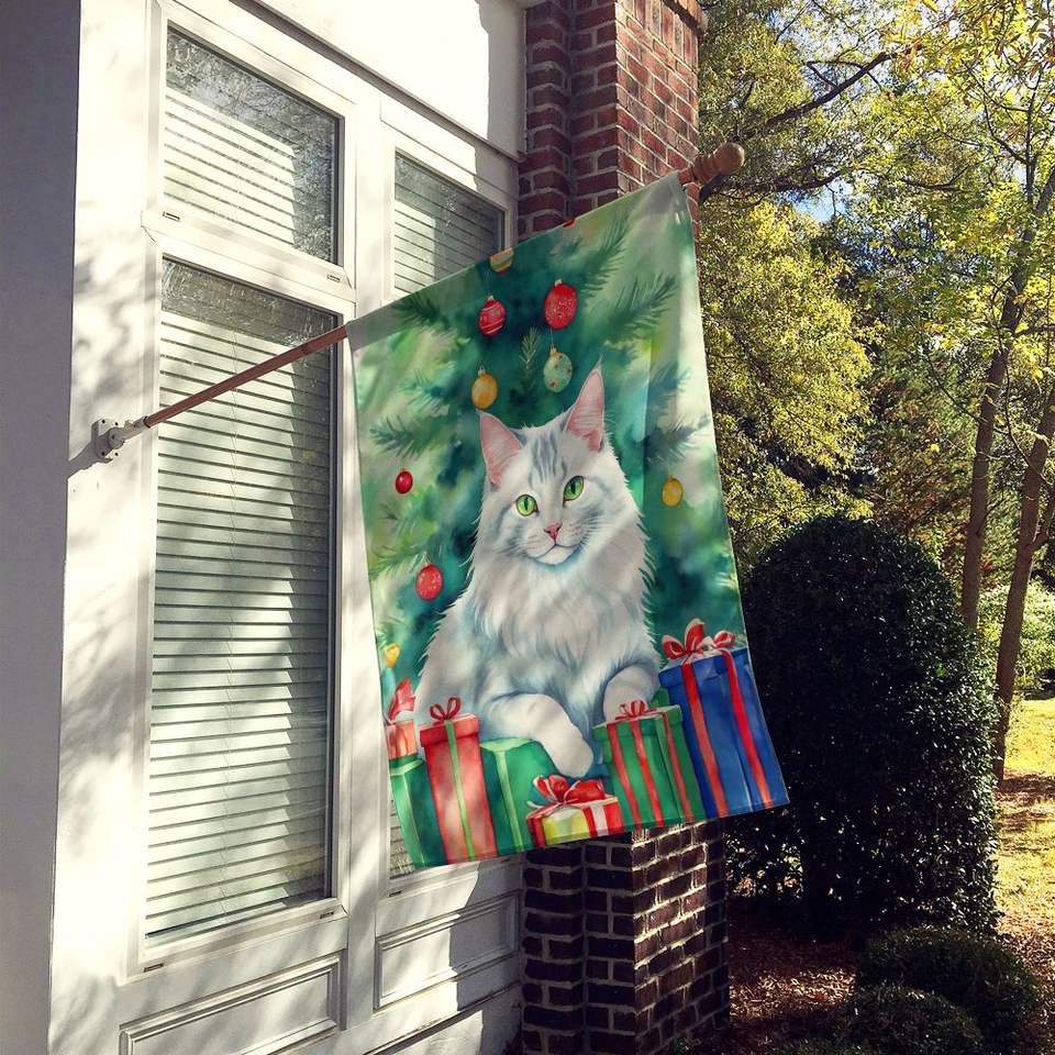 ธงแขวนผนังลายแมวทำจากโพลีเอสเตอร์หลากสีสำหรับตกแต่งลานกว้างลายแมวแองโกราแบบตุรกี