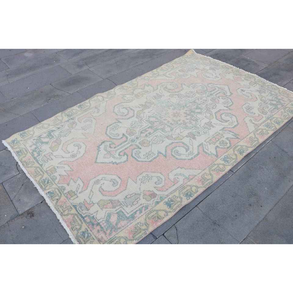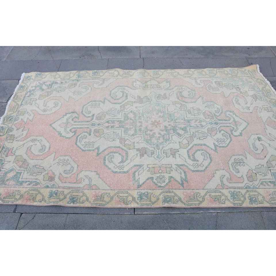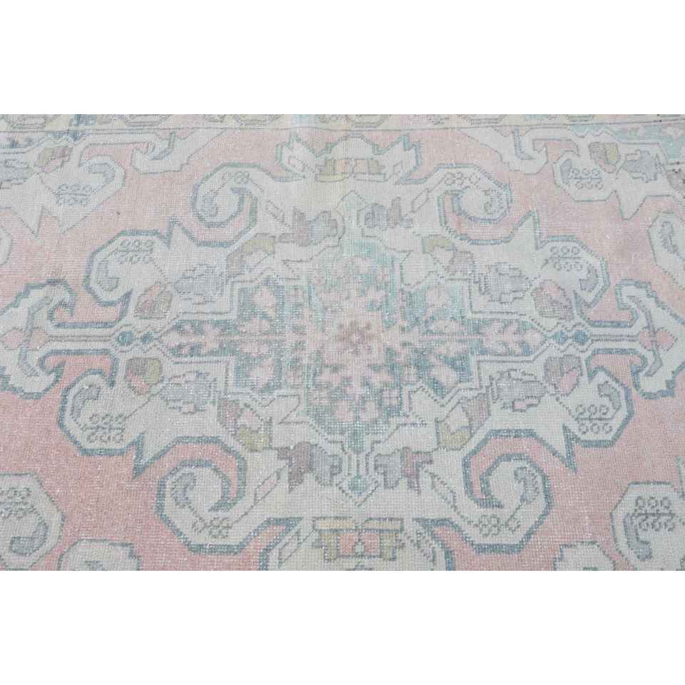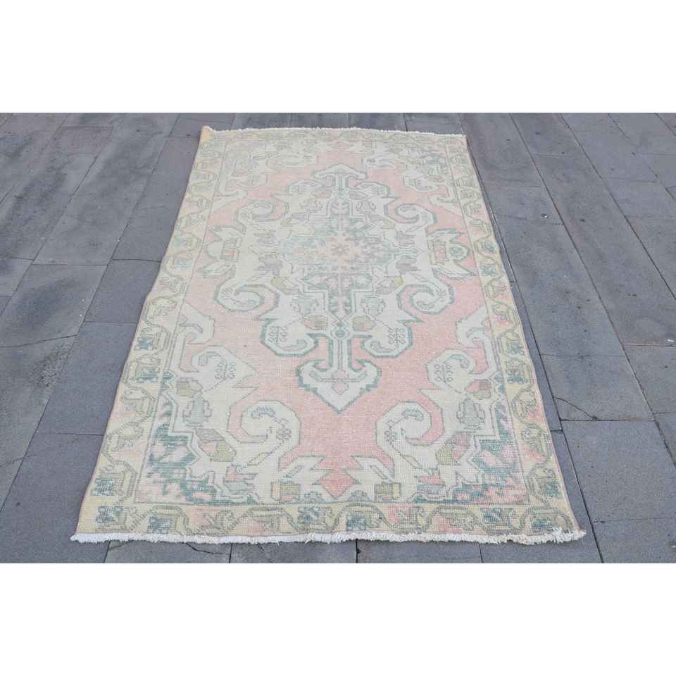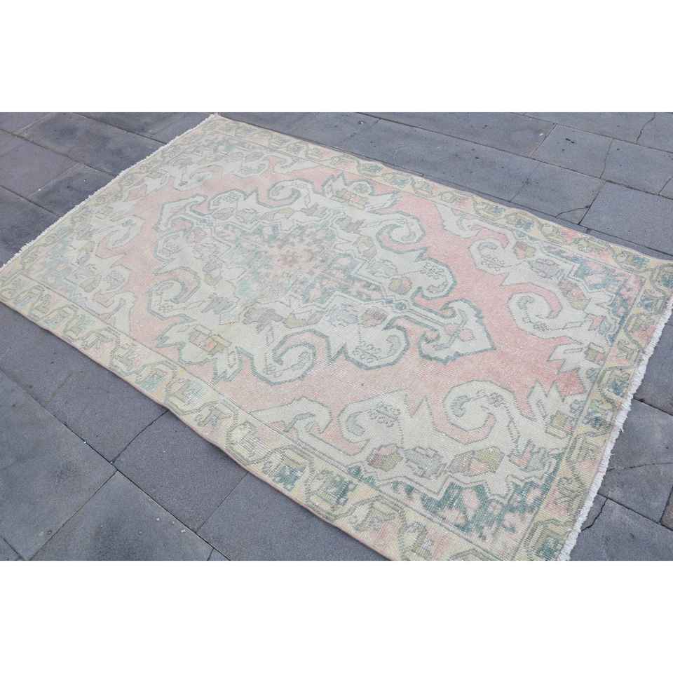 พรมตุรกีขนาด 4.1x6.9 ฟุต สีชมพูออมเบร พรมขนสัตว์วินเทจ