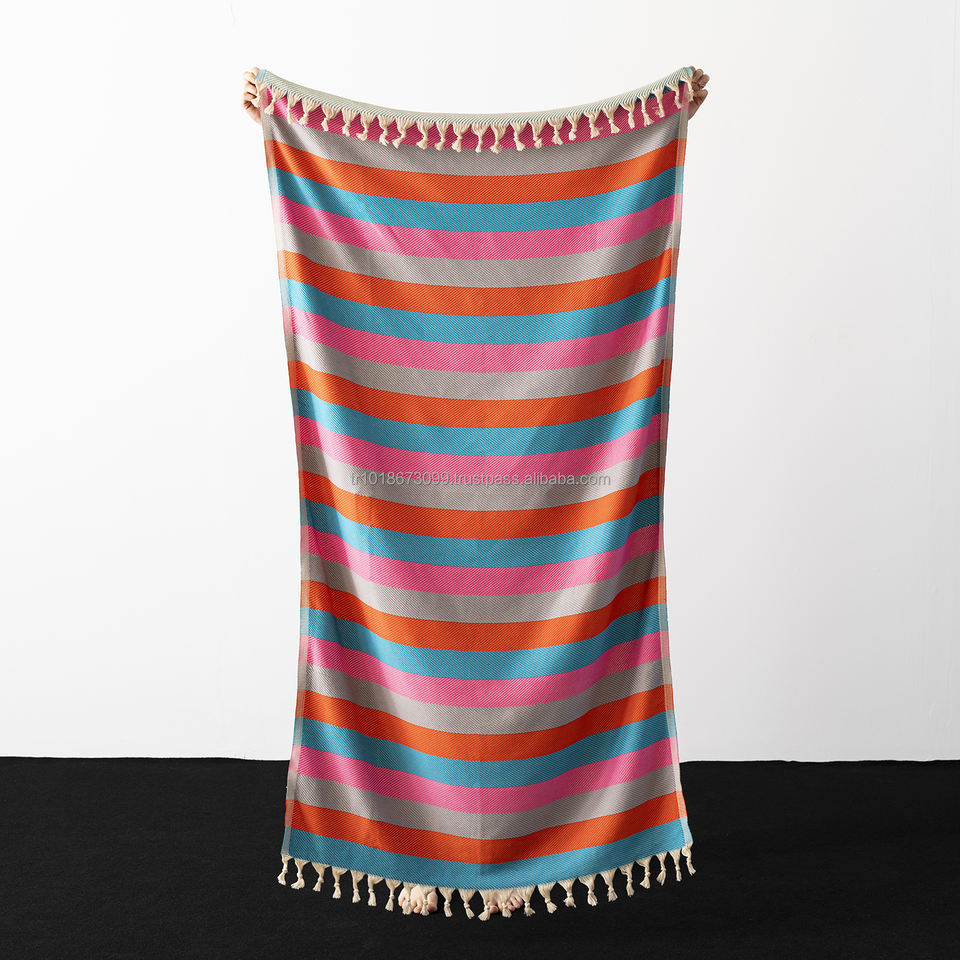 Pestemal ผ้าขนหนูชายหาดตุรกีนุ่มเรียบง่ายไม่มีทรายทำด้วยมือน้ำหนักเบาแห้งเร็วสีสันสดใส
