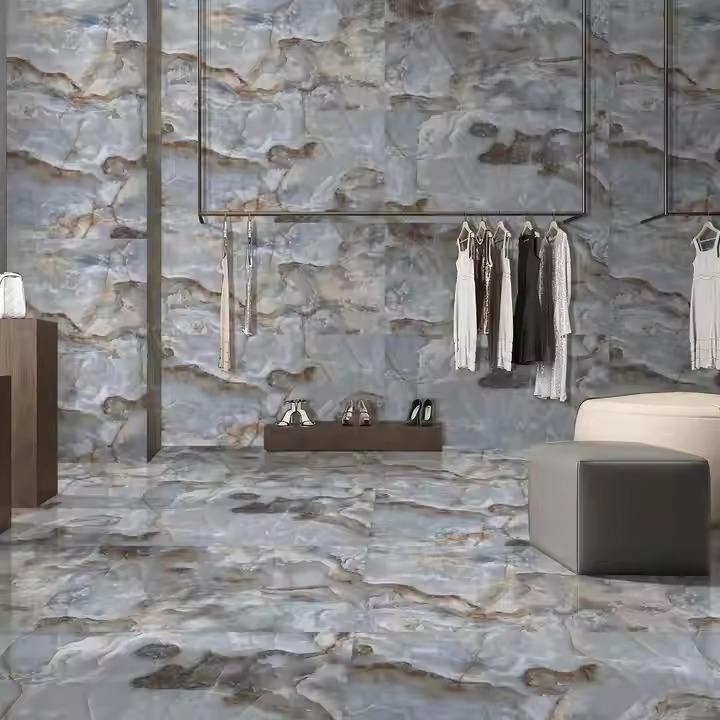 กระเบื้องพอร์ซเลนสีเบจสีฟ้าสเป็คเตอร์80X160เคลือบเงาหรูหราเหมาะสำหรับวิลล่าและโรงแรม