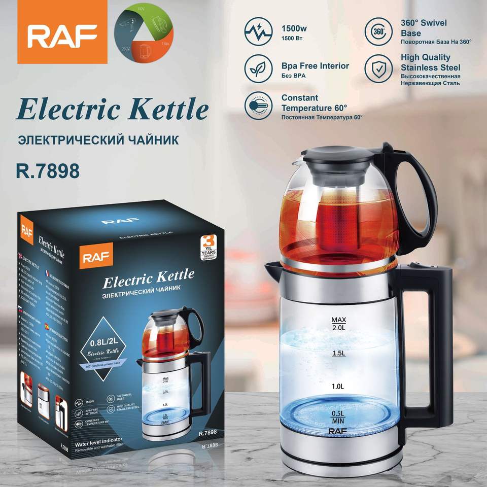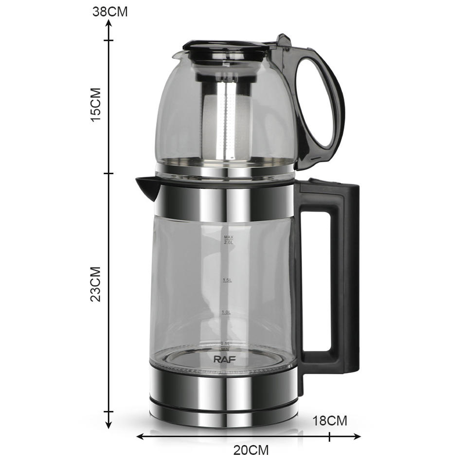 กาต้มน้ำไฟฟ้าไร้สายแบบแก้วสไตล์ตุรกี ความจุ 2.0 ลิตร พร้อมฐานหมุนได้ 360 องศา และระบบปิดอัตโนมัติ สำหรับใช้ในครัวเรือน