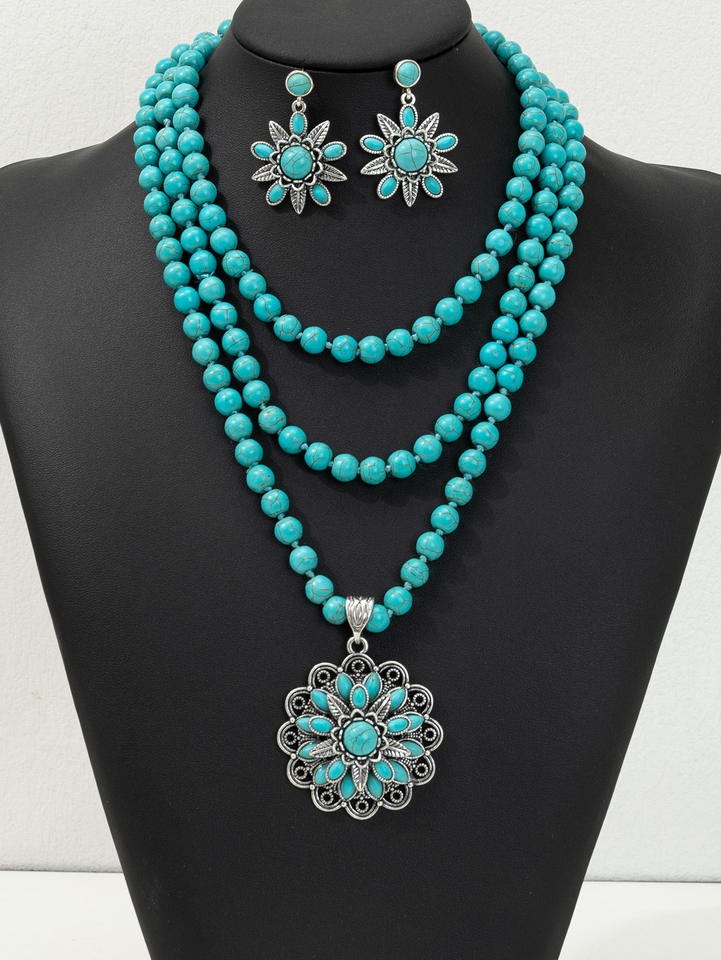 เครื่องประดับแฟชั่นตุรกี เอธิโอเปีย อินเดีย เม็กซิโก สร้อยคอประดับลูกปัดสำหรับผู้หญิง สไตล์โบฮีเมียน ตะวันตก สร้อยคอสีฟ้าคราม ชุดสร้อยคอสไตล์ยิปซี