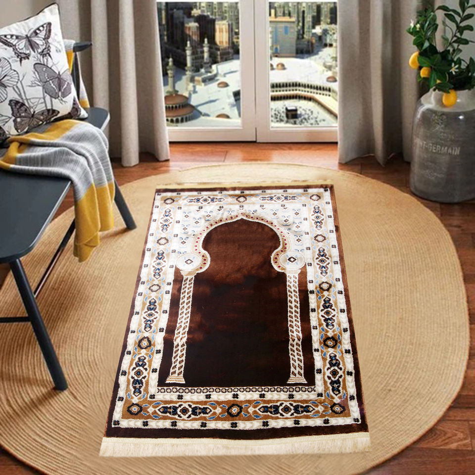 พรมสำหรับสวดมนต์ทรงสี่เหลี่ยมผ้ากำมะหยี่อิสลามหรูหราซักได้ใช้ในบ้านวัสดุขนสัตว์/ผ้าไหมเนื้อนุ่มและทนทาน
