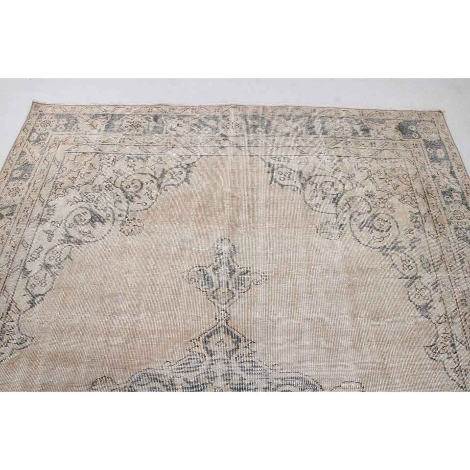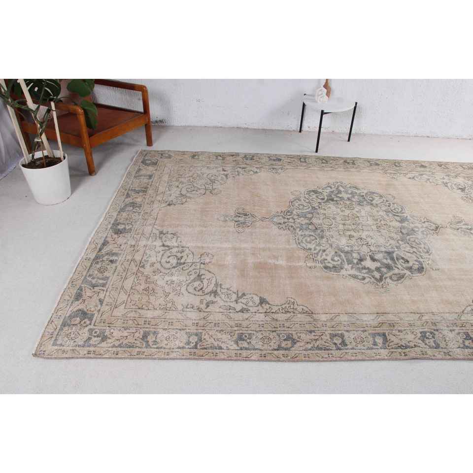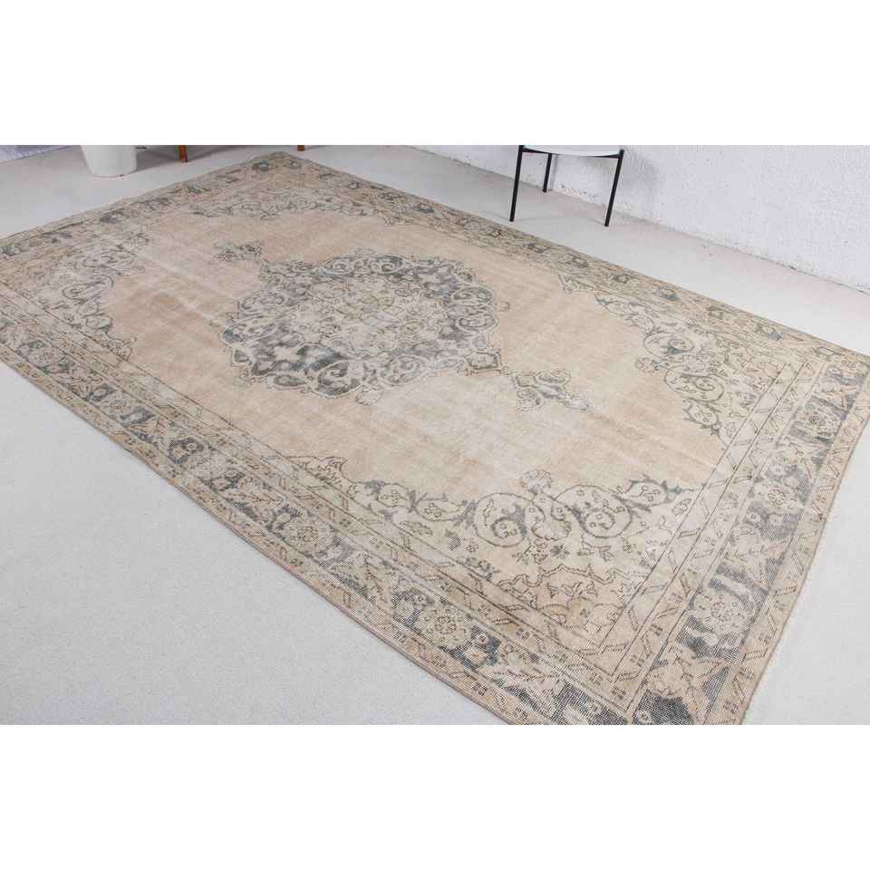 พรมตุรกีขนาดใหญ่ 5.4x10.2 ฟุต พรมวินเทจ พรมขนสัตว์สีเทา