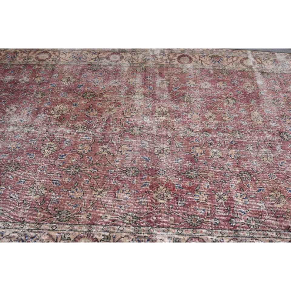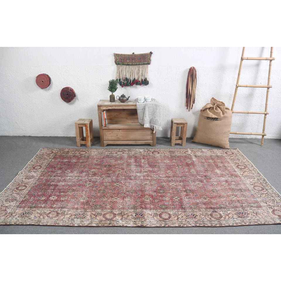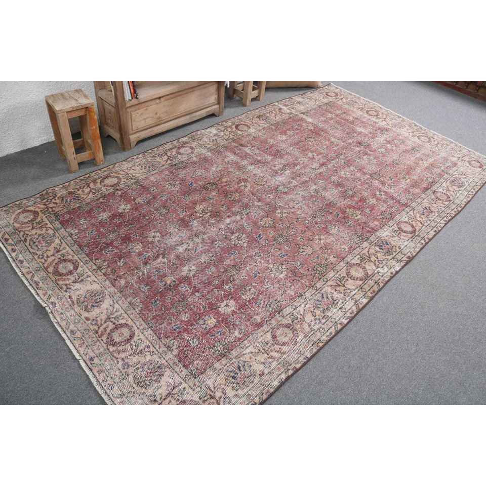 พรมตุรกีขนาดใหญ่ 5x9.3 ฟุต พรมวินเทจ พรมขนสัตว์สีแดงไล่เฉด