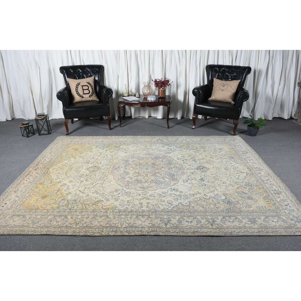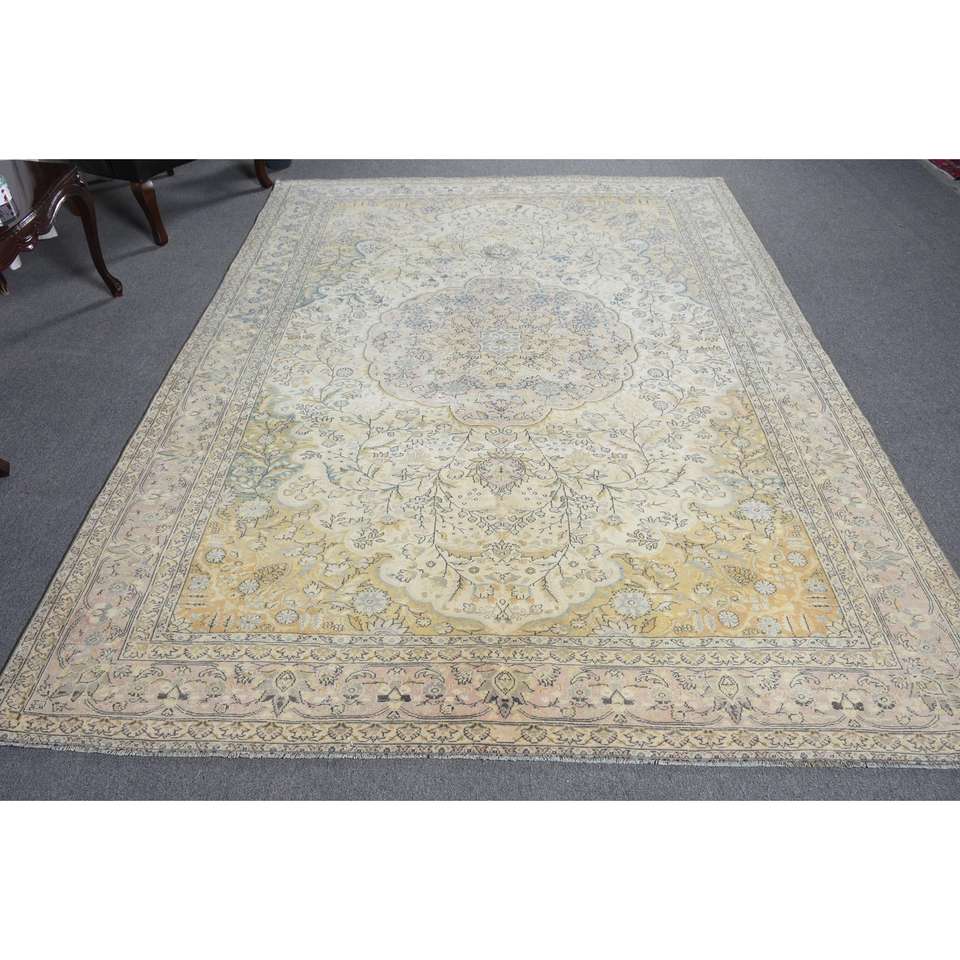 พรมตุรกีขนาดใหญ่ 6.7x9.3 ฟุต (205x284 ซม.) พรมเปอร์เซียสีเหลืองวินเทจ