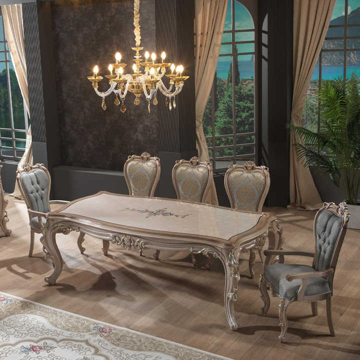 โต๊ะรับประทานอาหารแบบทันสมัยหรูหราของผู้ผลิตตุรกีเฟอร์นิเจอร์พับได้ทำด้วยมือสำหรับห้องรับประทานอาหารห้องนั่งเล่นห้องพระราช