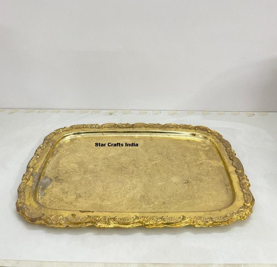 ชุดถาดโลหะสีทองหรูหราสไตล์ตุรกีสำหรับรอมฎอน รูปทรงสี่เหลี่ยมผืนผ้า เป็นมิตรกับสิ่งแวดล้อม เหมาะสำหรับเสิร์ฟขนม/ของหวาน ใช้ในบ้าน สำนักงาน หรือในวันขอบคุณพระเจ้า