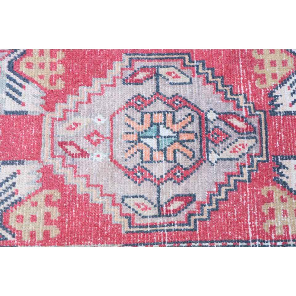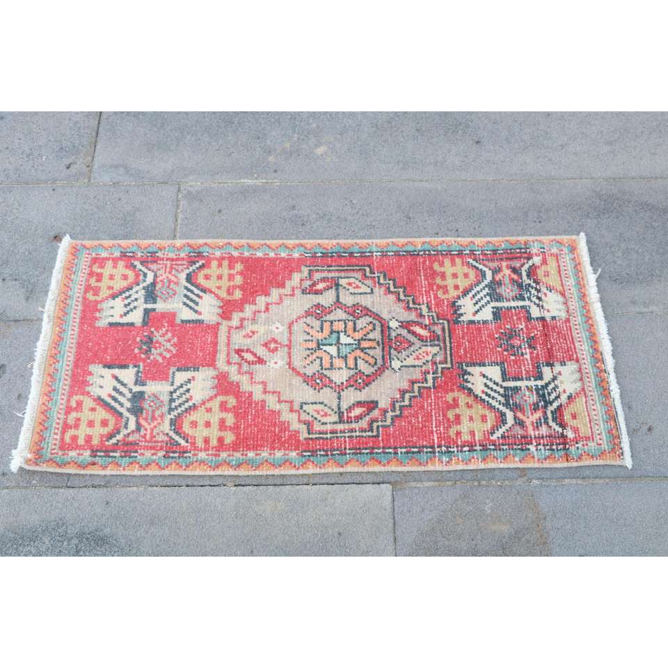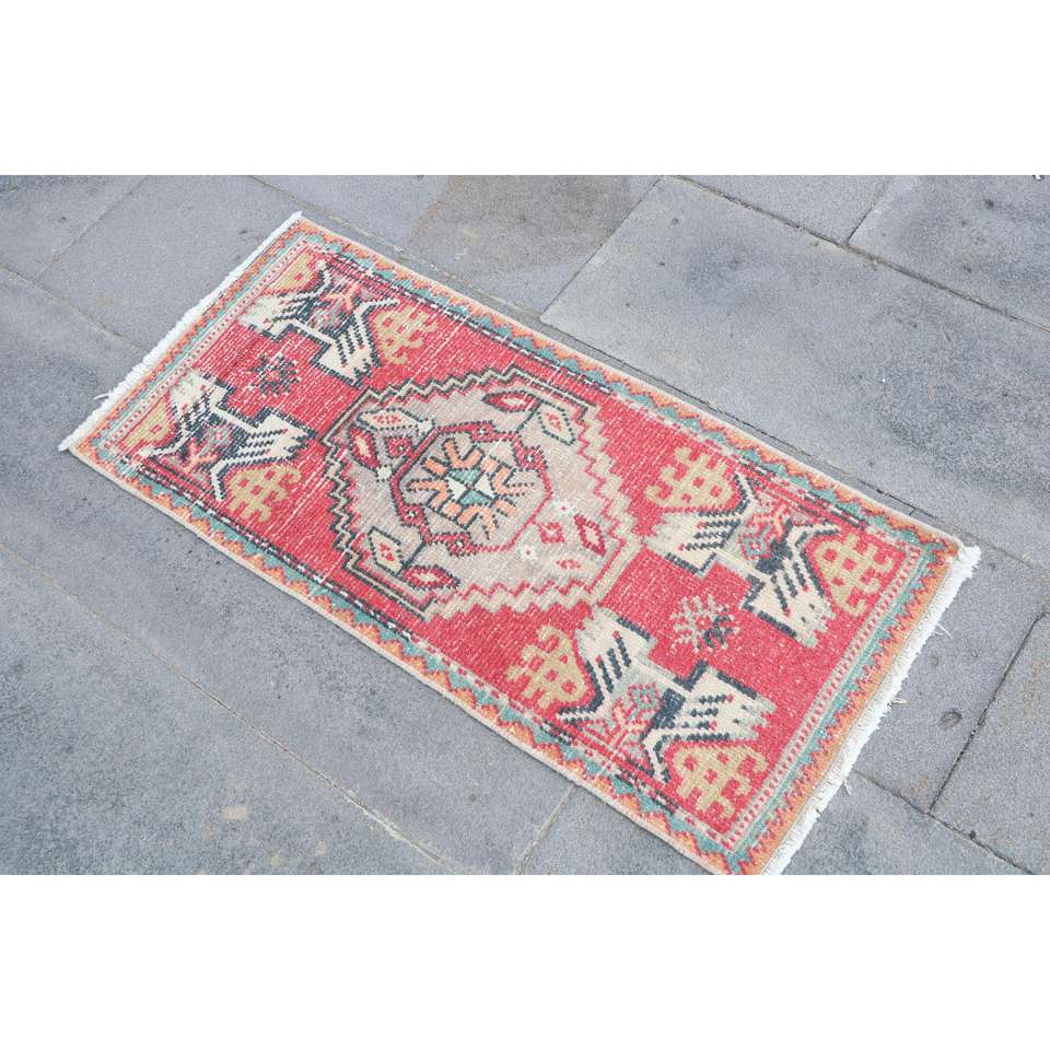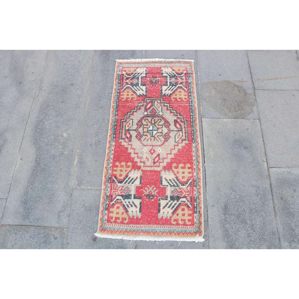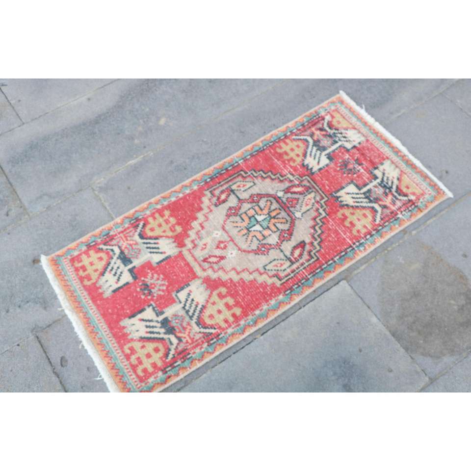 พรมตุรกี, พรมขนาดเล็ก 1.4x3.1 ฟุต, พรมวินเทจสีแดงทำจากขนสัตว์แบบอิคัต