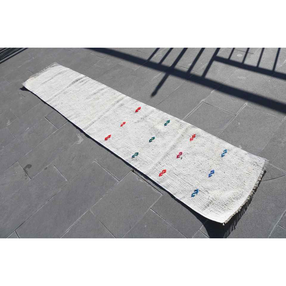 พรมตุรกี, พรมวิ่งขนาด 1.7x9.1 ฟุต, พรมวินเทจสีขาวทำจากขนสัตว์แท้