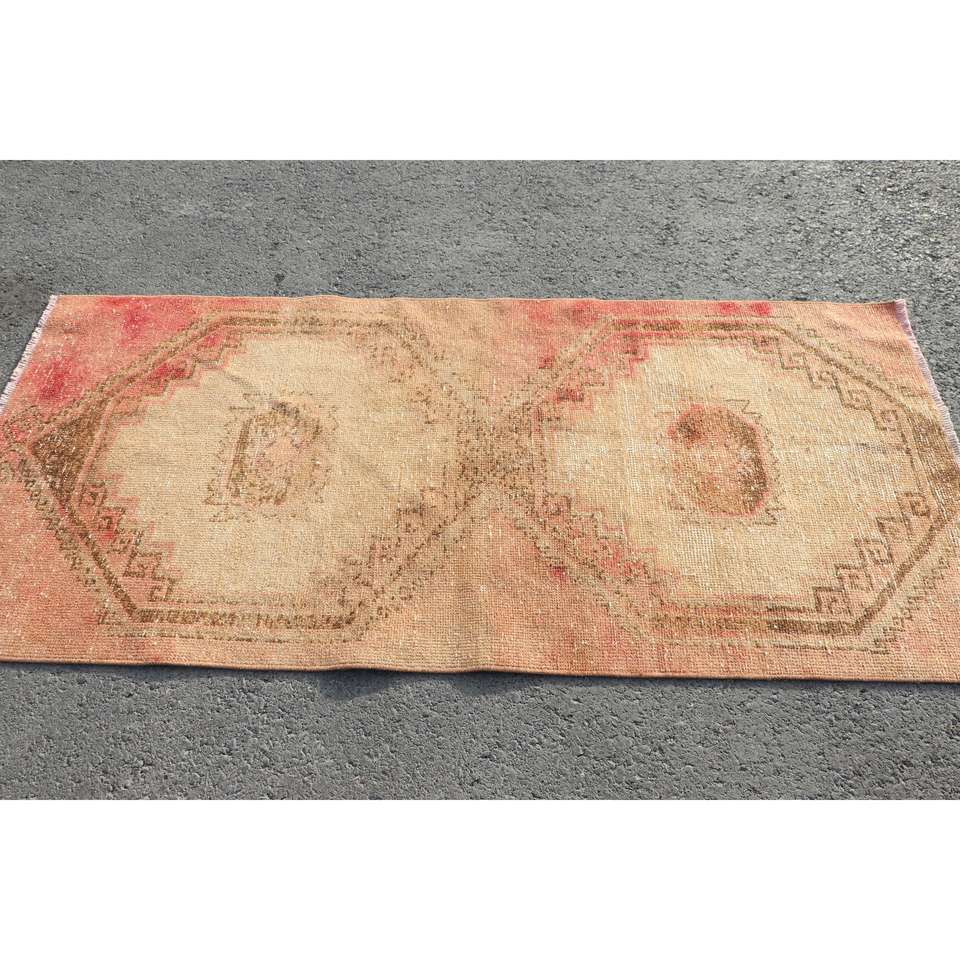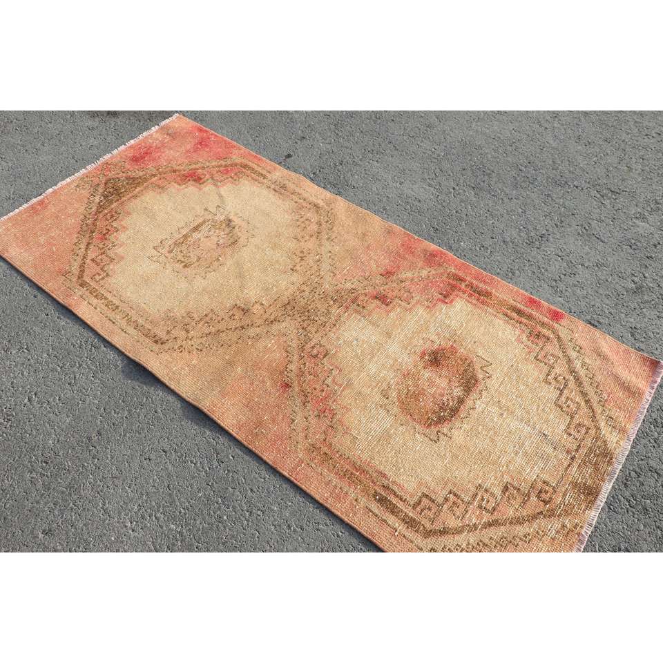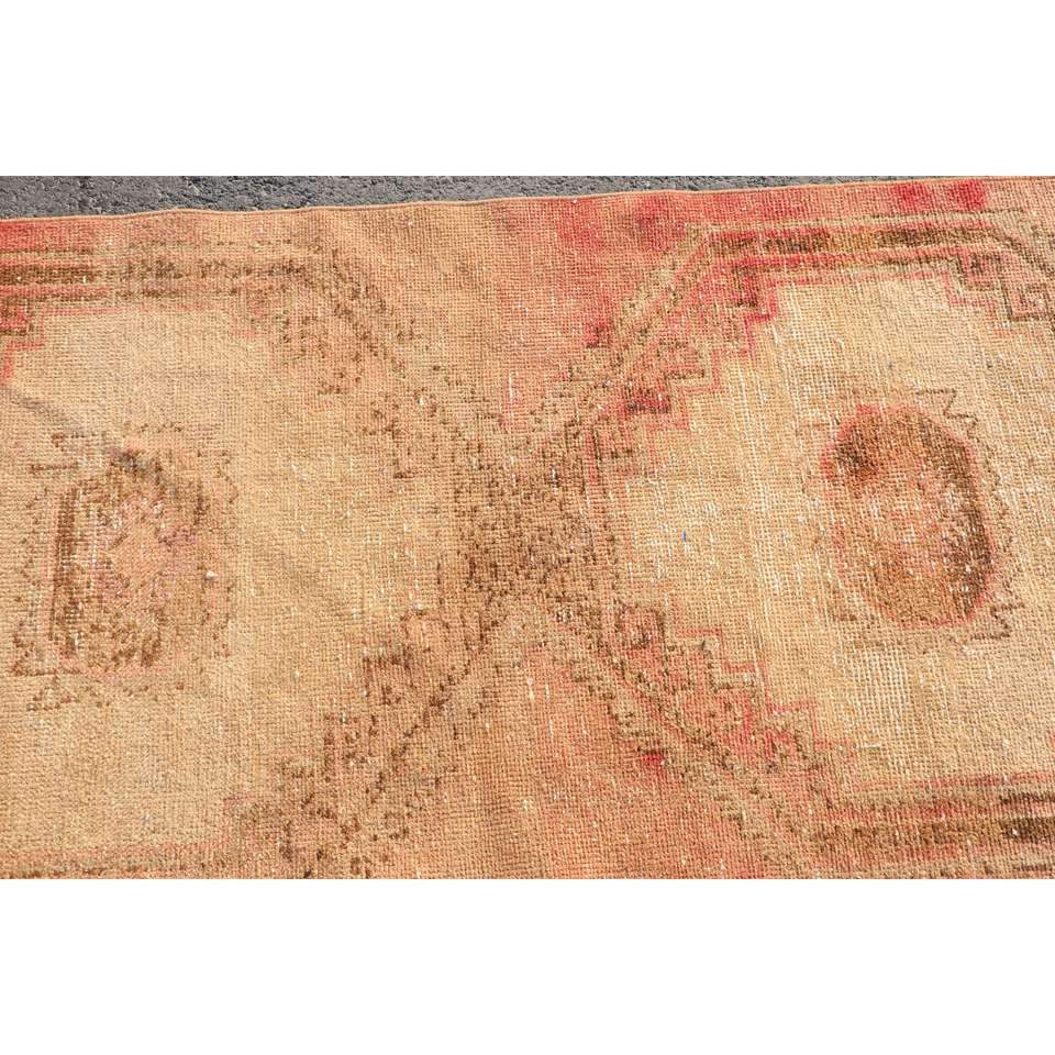 พรมตุรกี 3x6.4 ฟุต สีน้ำตาลแดง ลายแบบนามธรรม พรมขนสัตว์วินเทจ