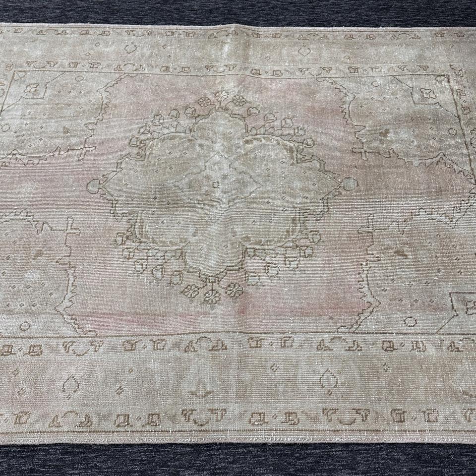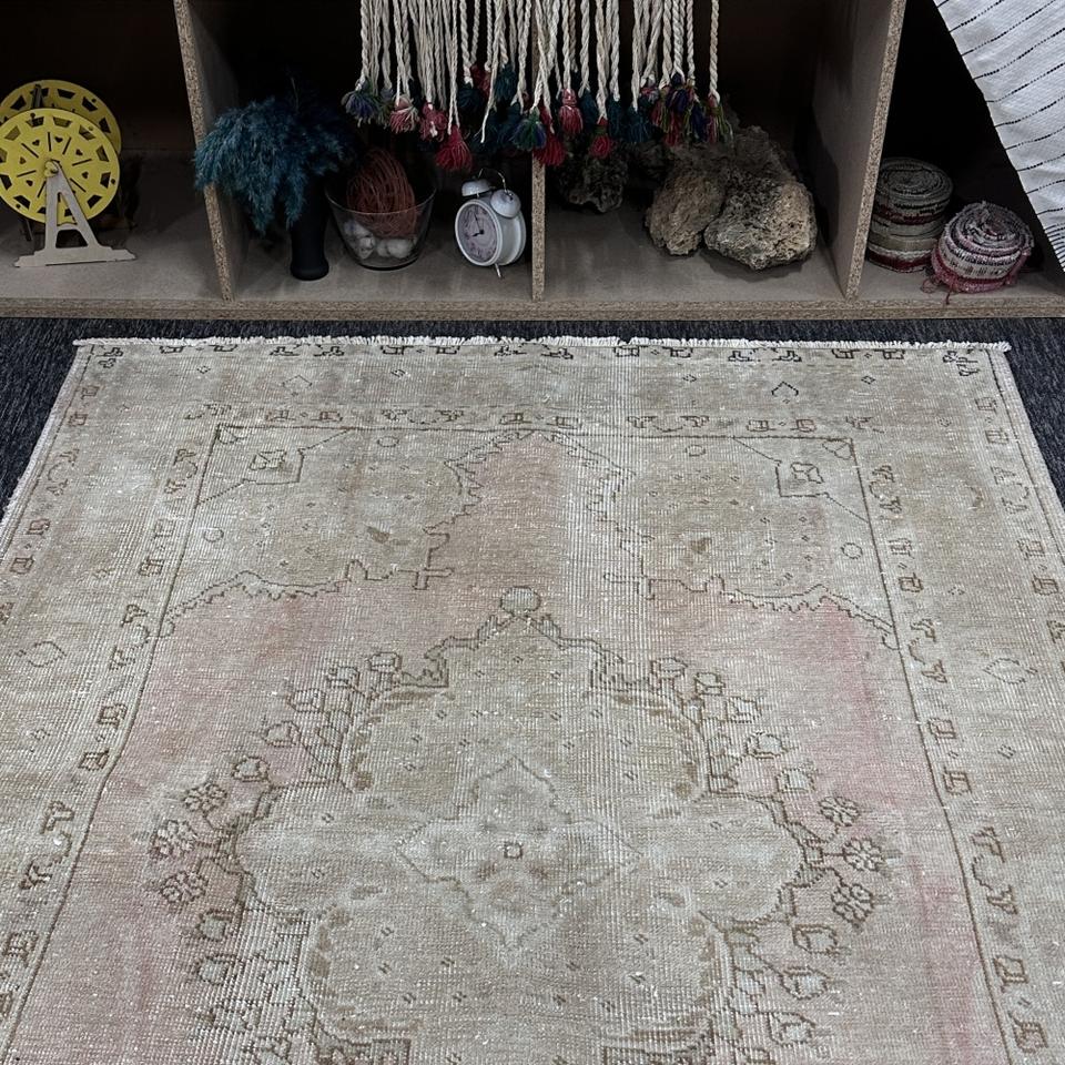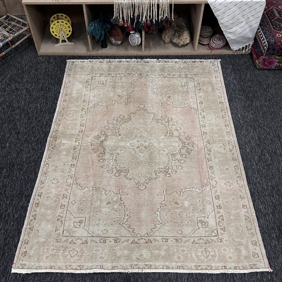 พรมตุรกี, พรมตกแต่งขนาด 4.7x6 ฟุต, พรมสีเบจชมพู, พรมขนสัตว์