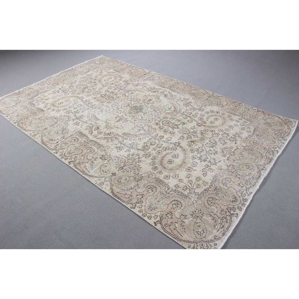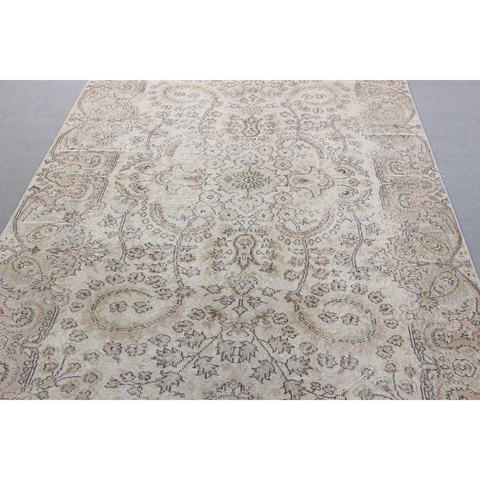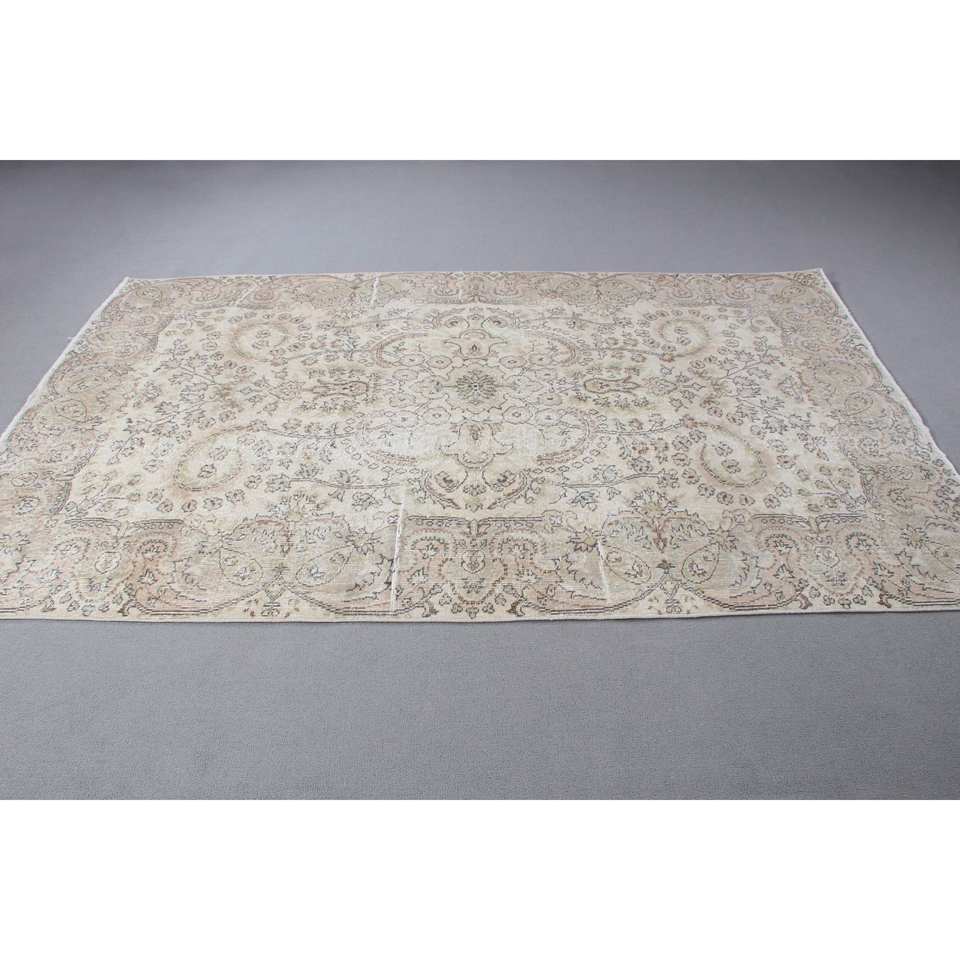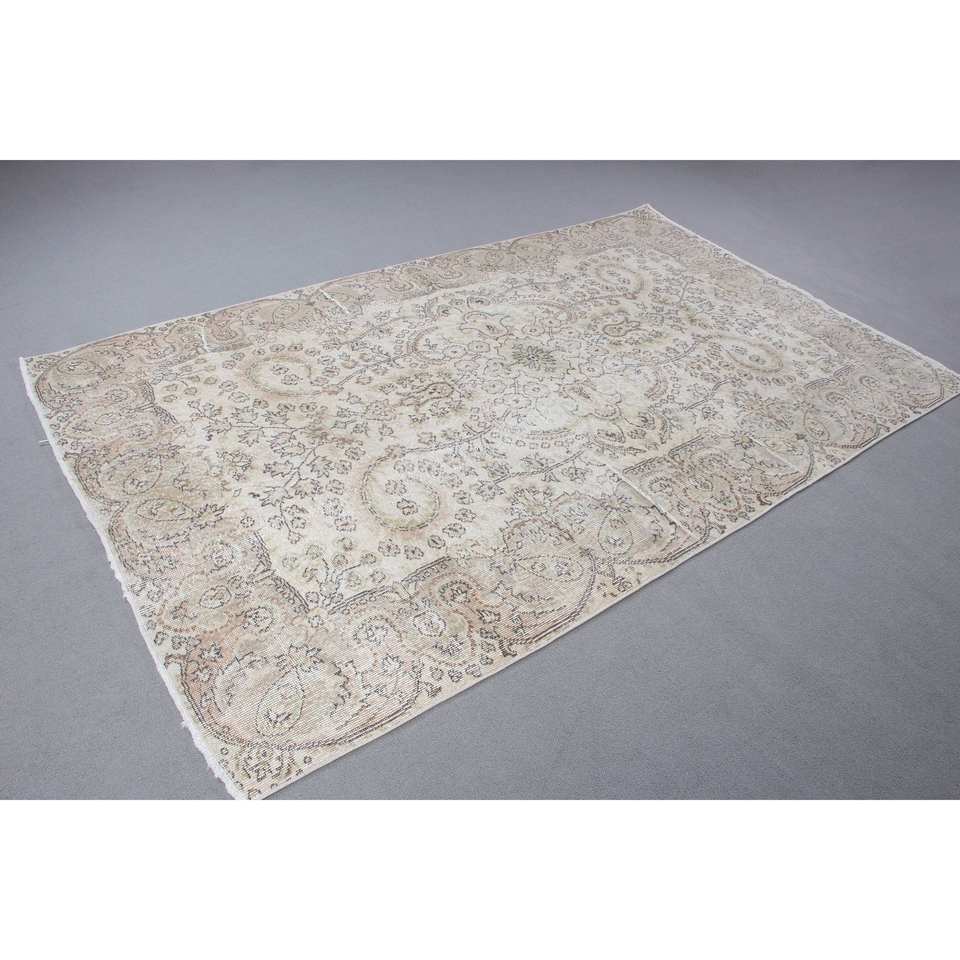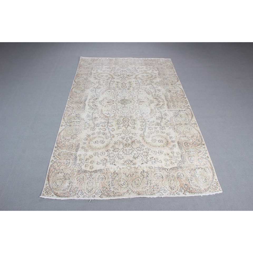 พรมตุรกี, พรมวินเทจขนาด 5.5x8.9 ฟุต, พรมขนสัตว์สีขาวลายนามธรรม