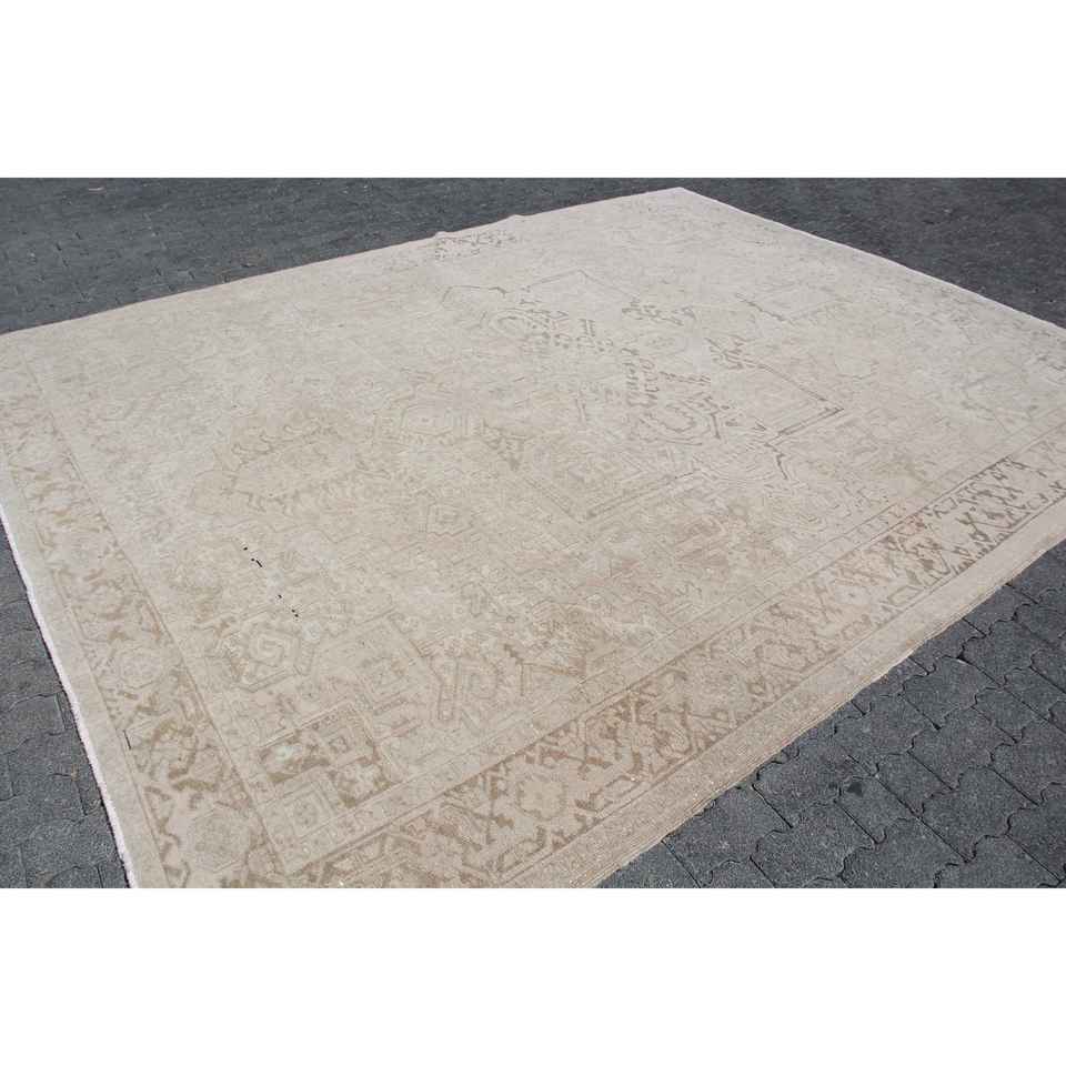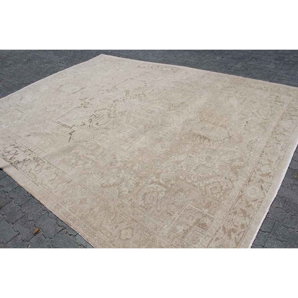 พรมตุรกี ขนาด 9.3x11.6 ฟุต (284x353 ซม.) สีเบจ ลายดอกไม้ สไตล์วินเทจ
