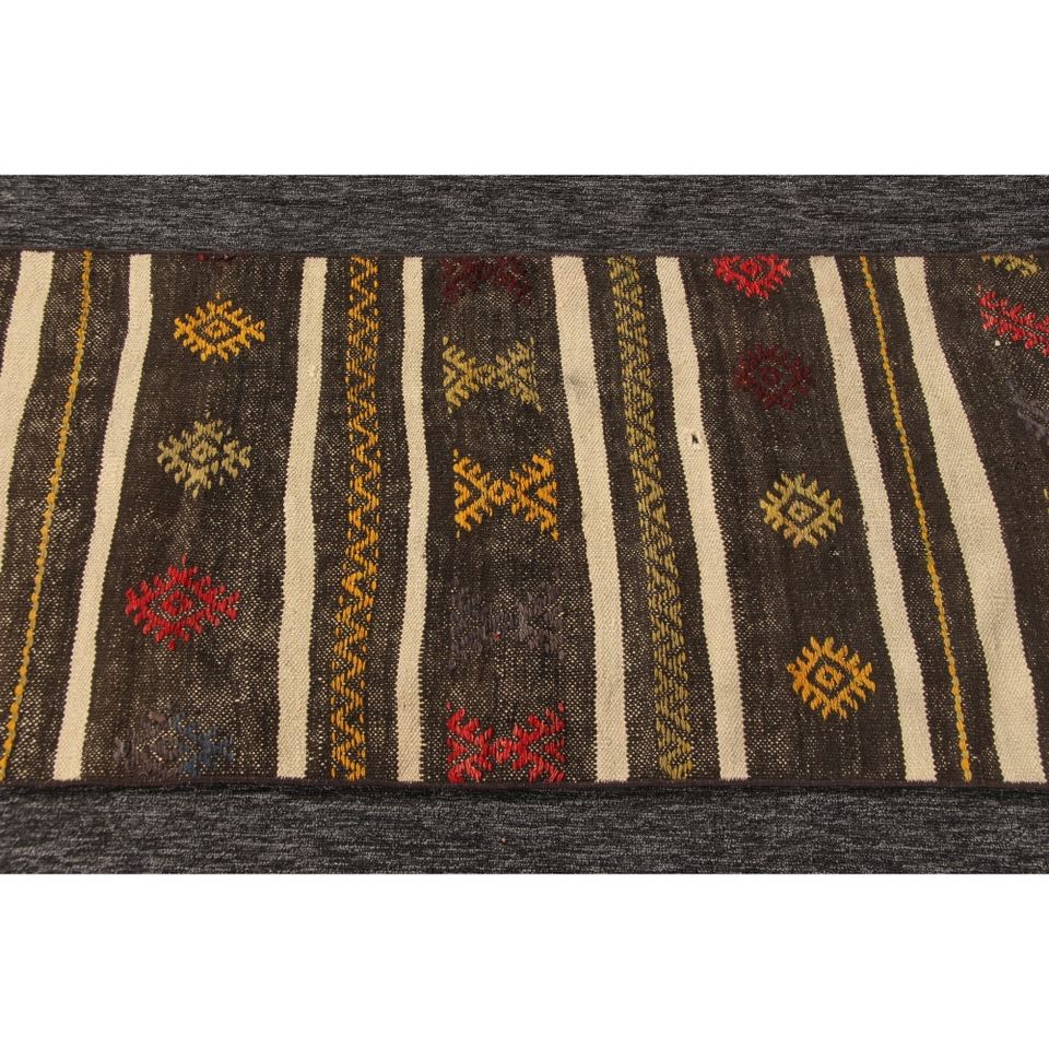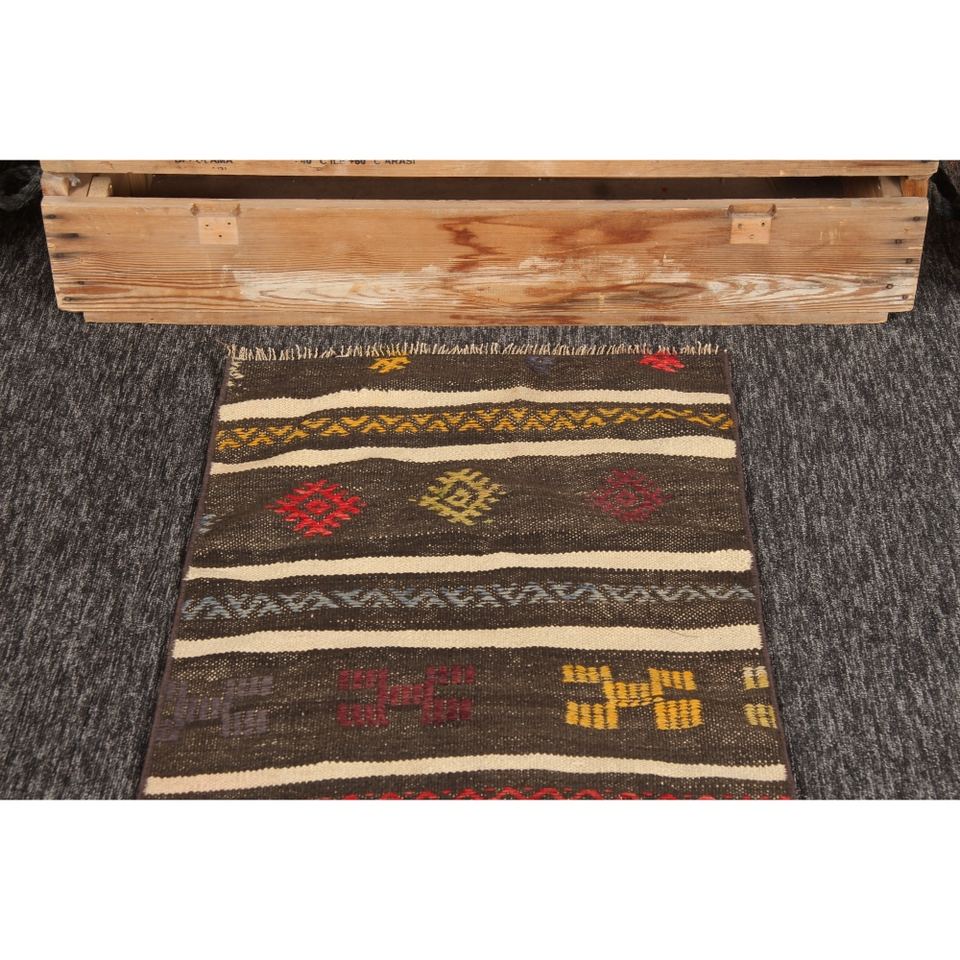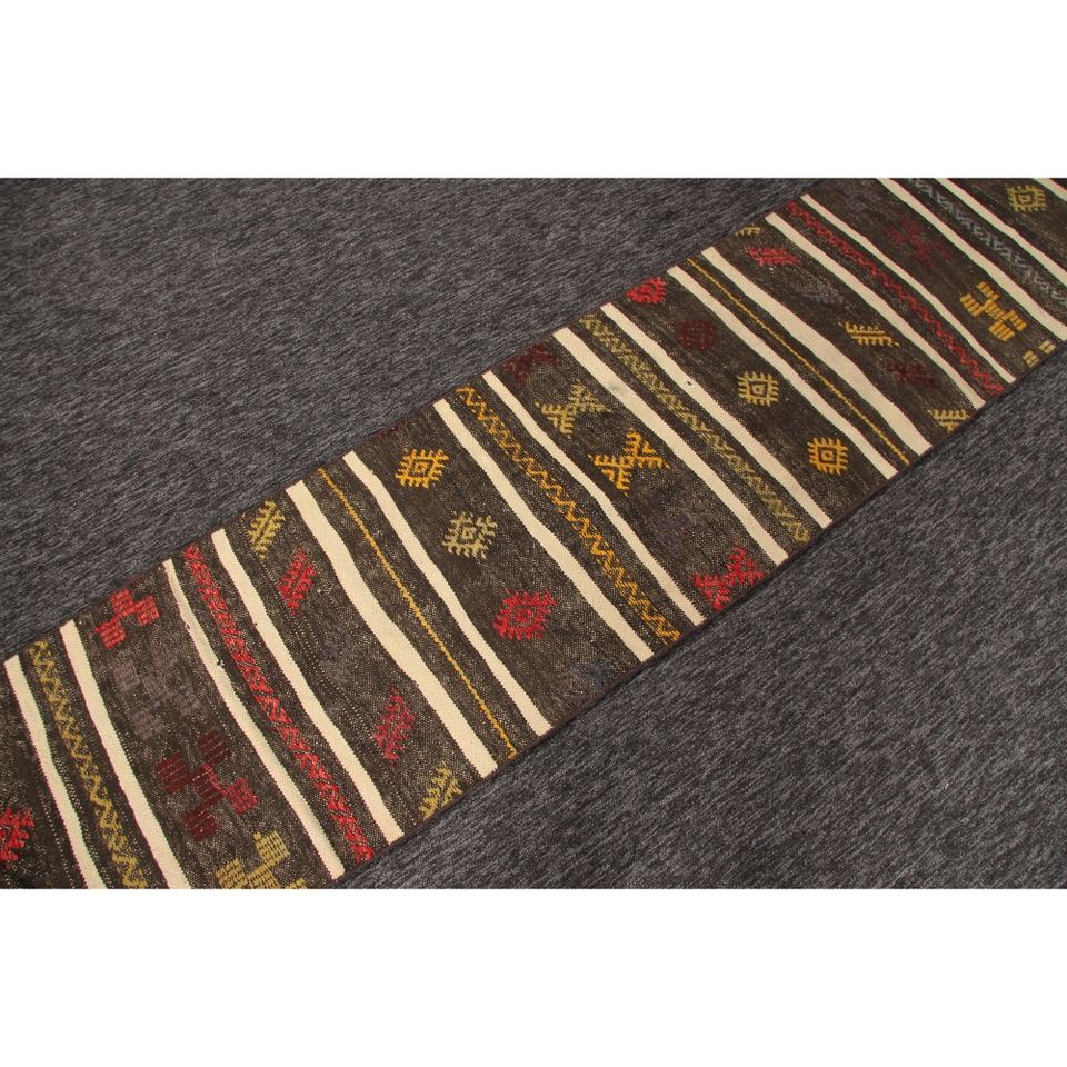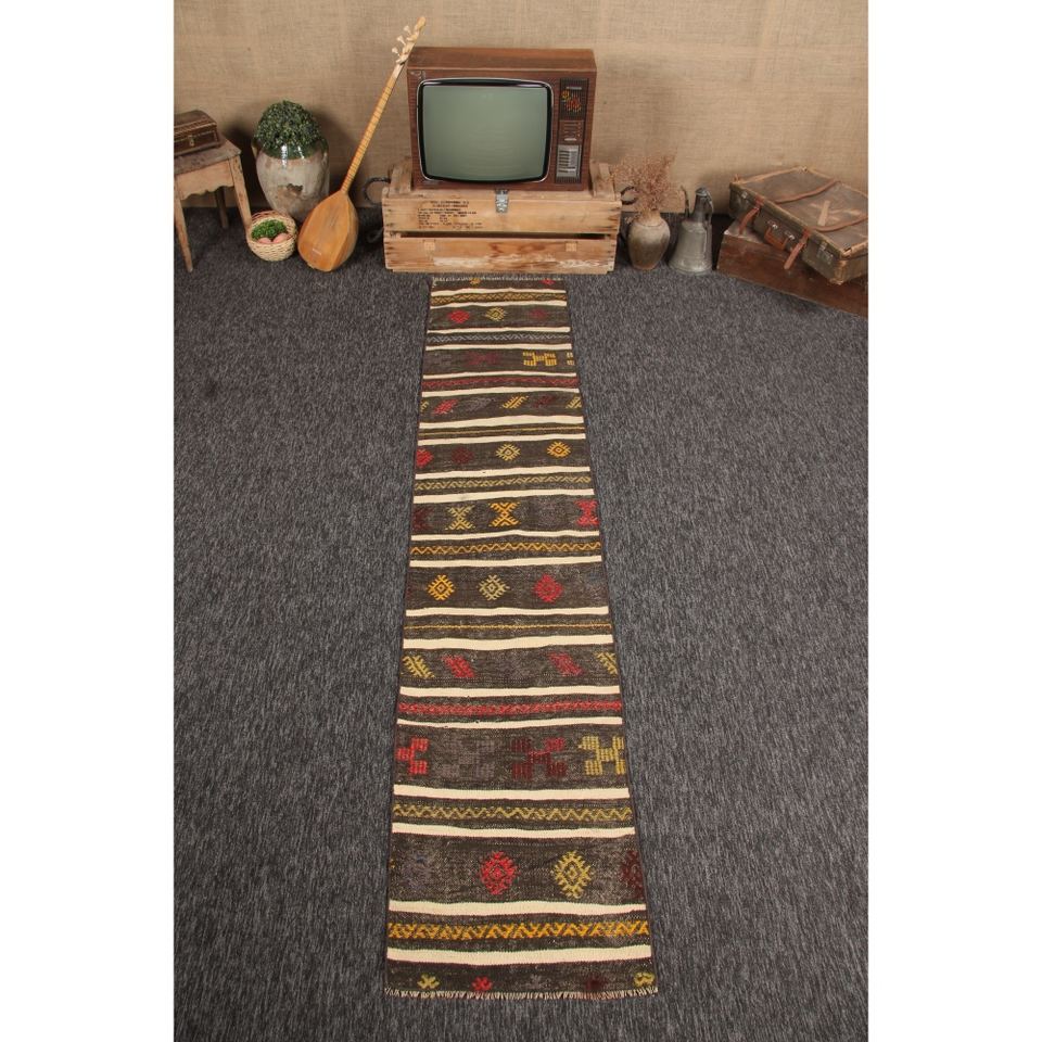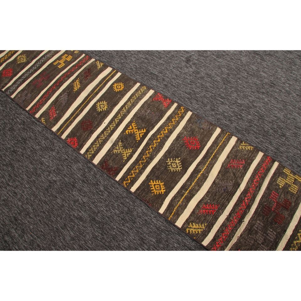 พรมตุรกี, พรมวินเทจขนาดเล็ก 1.9x9 ฟุต, พรมลายเรขาคณิตสีน้ำตาลรุ้ง