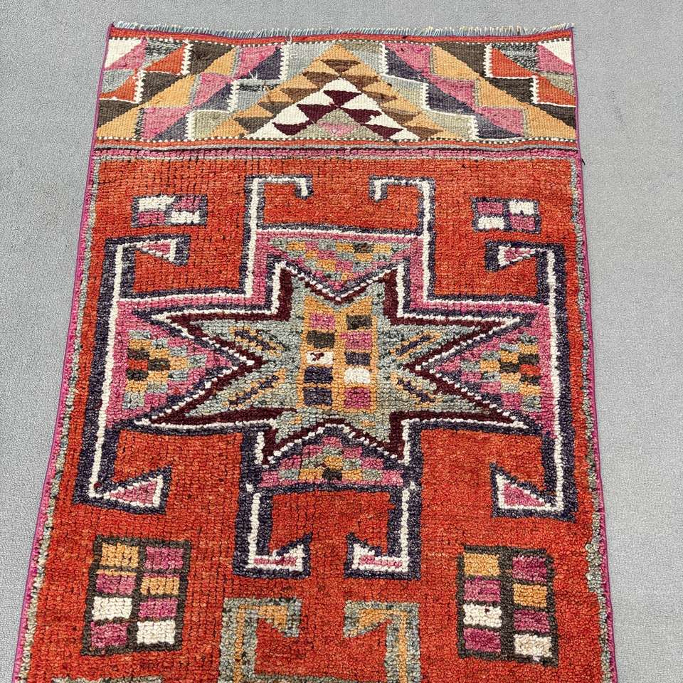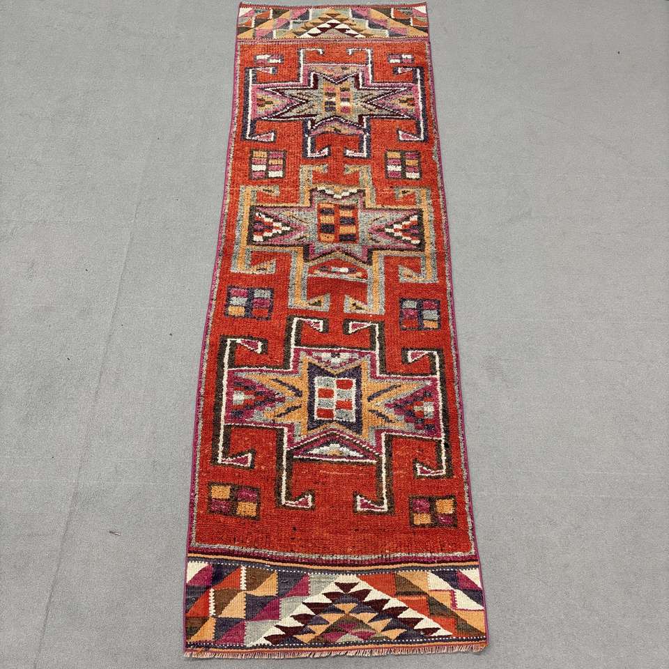 พรมวิ่งสไตล์ตุรกี ขนาด 2.8x9.3 ฟุต (86x284 ซม.) สีแดงเฮอร์กี ลายวินเทจ