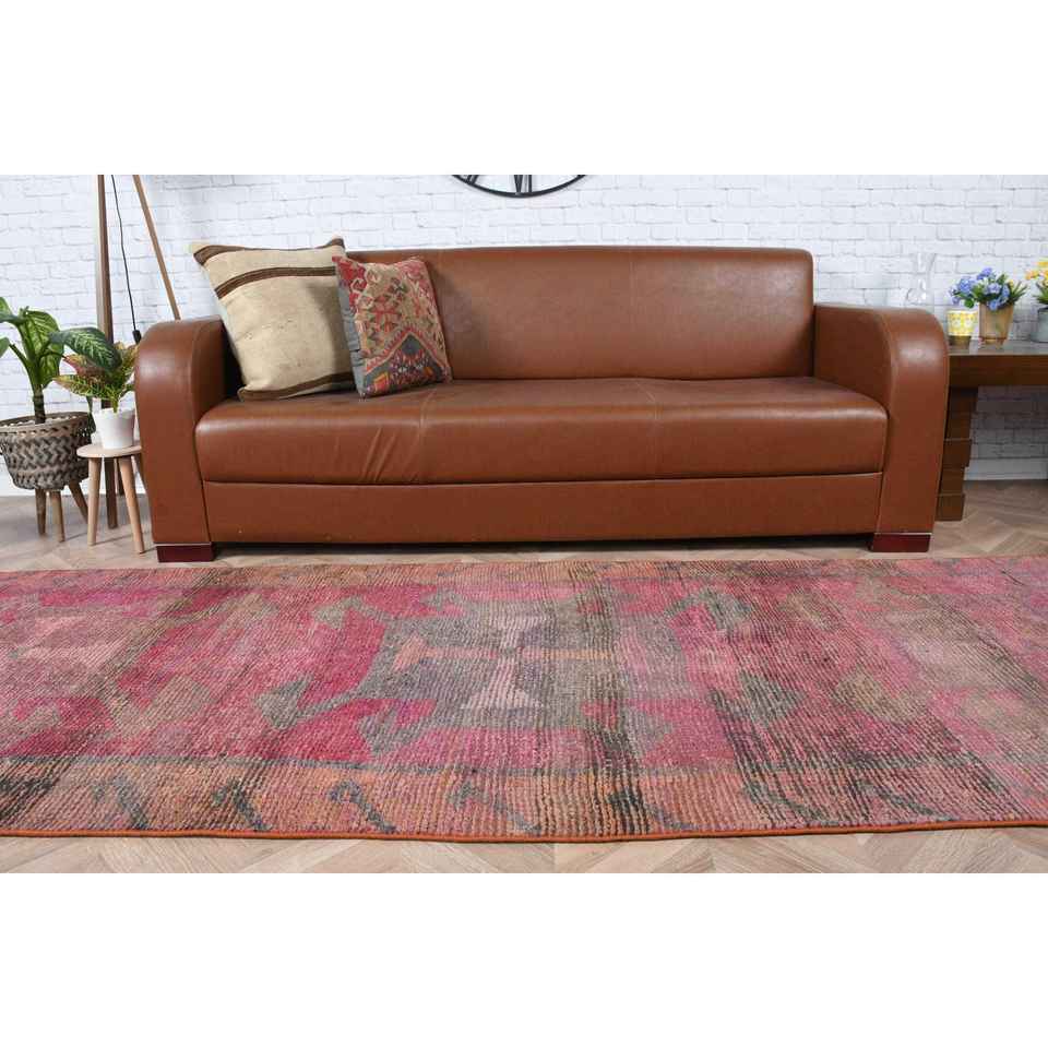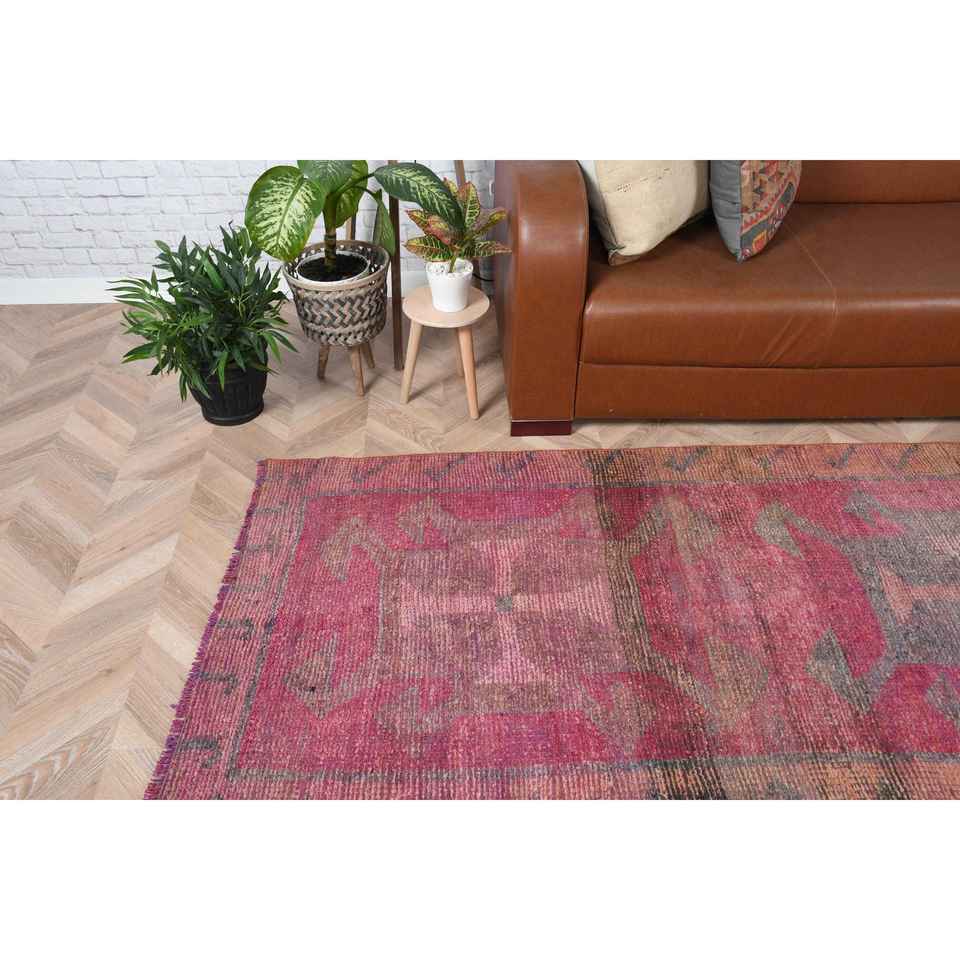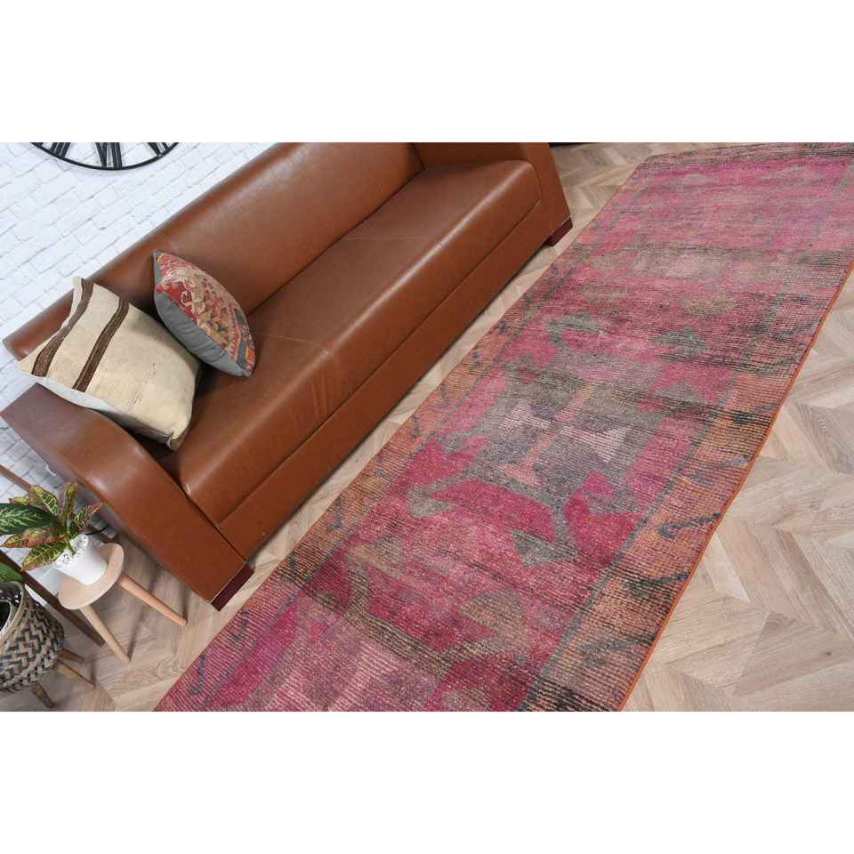 พรมวิ่งสไตล์ตุรกี ขนาด 3.3x10.6 ฟุต พรมขนสัตว์ลายสัตว์สีแดงวินเทจ
