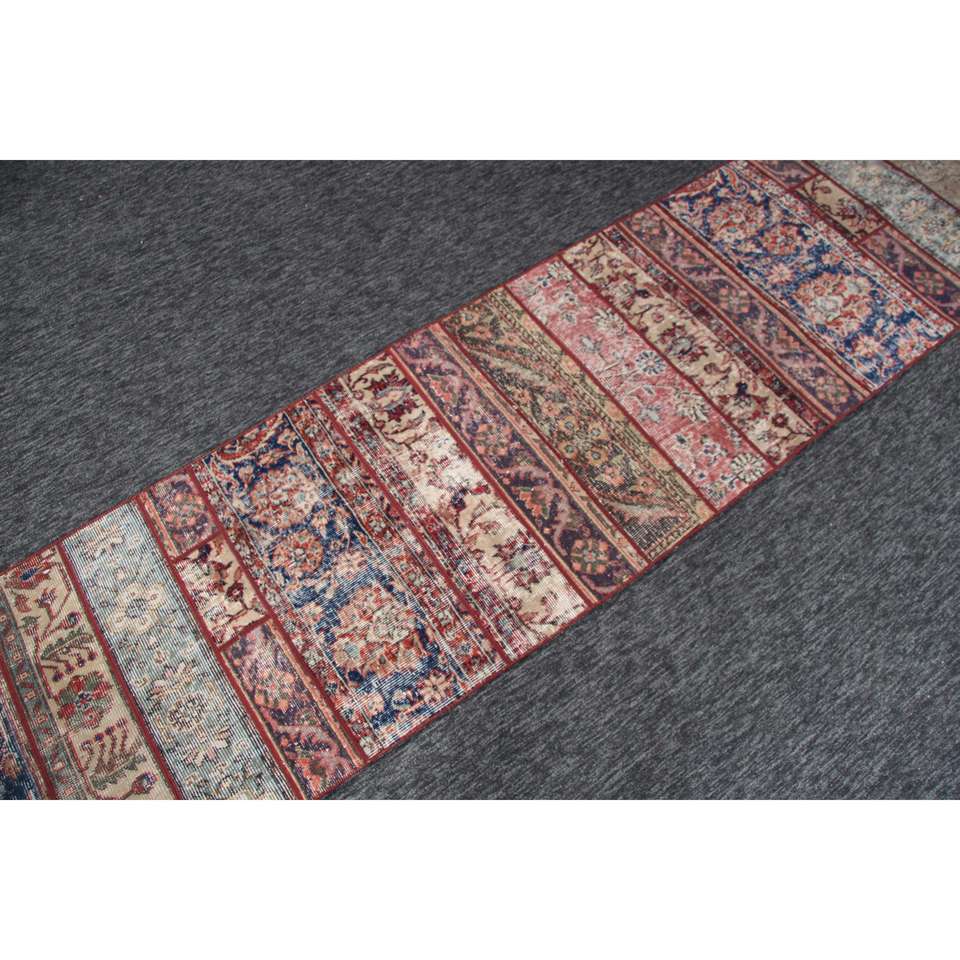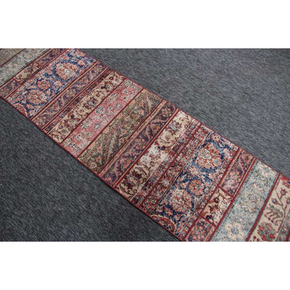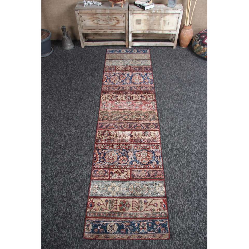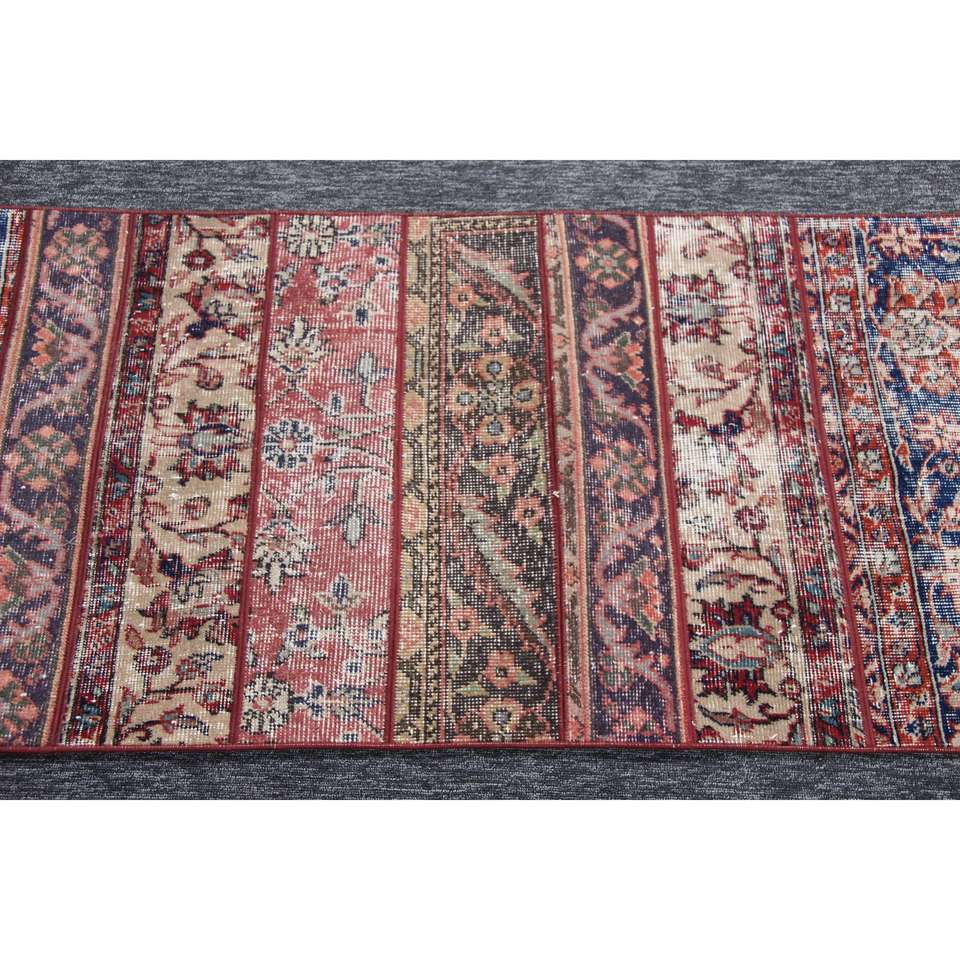 พรมตุรกีขนาดเล็ก, พรมวินเทจขนาด 2.3x9.4 ฟุต, พรมขนสัตว์สีแดงลายปะติด