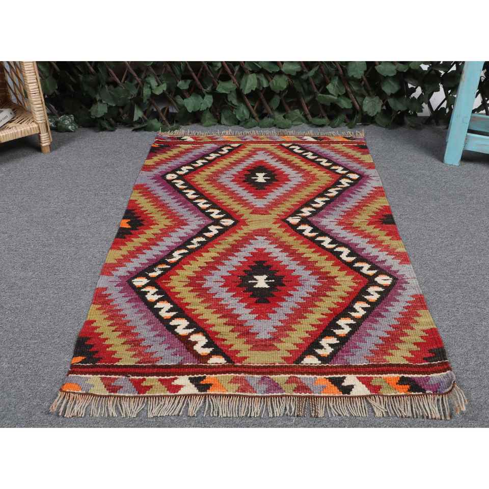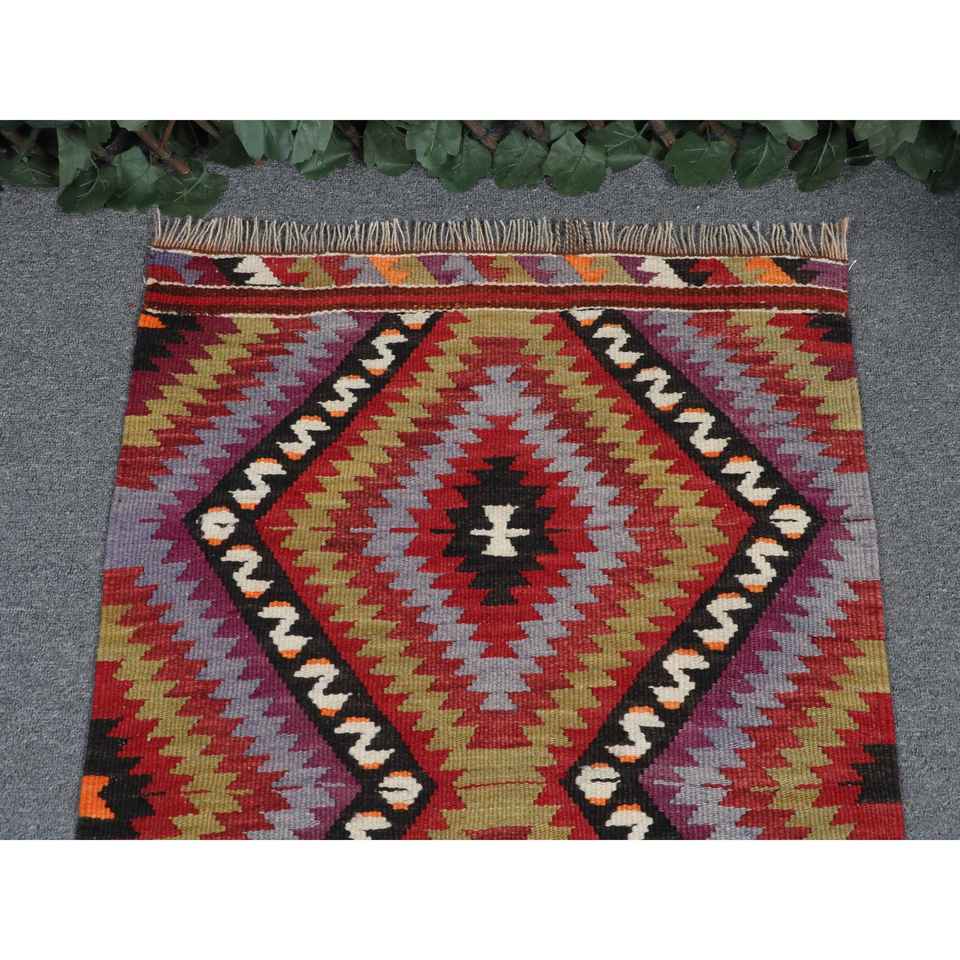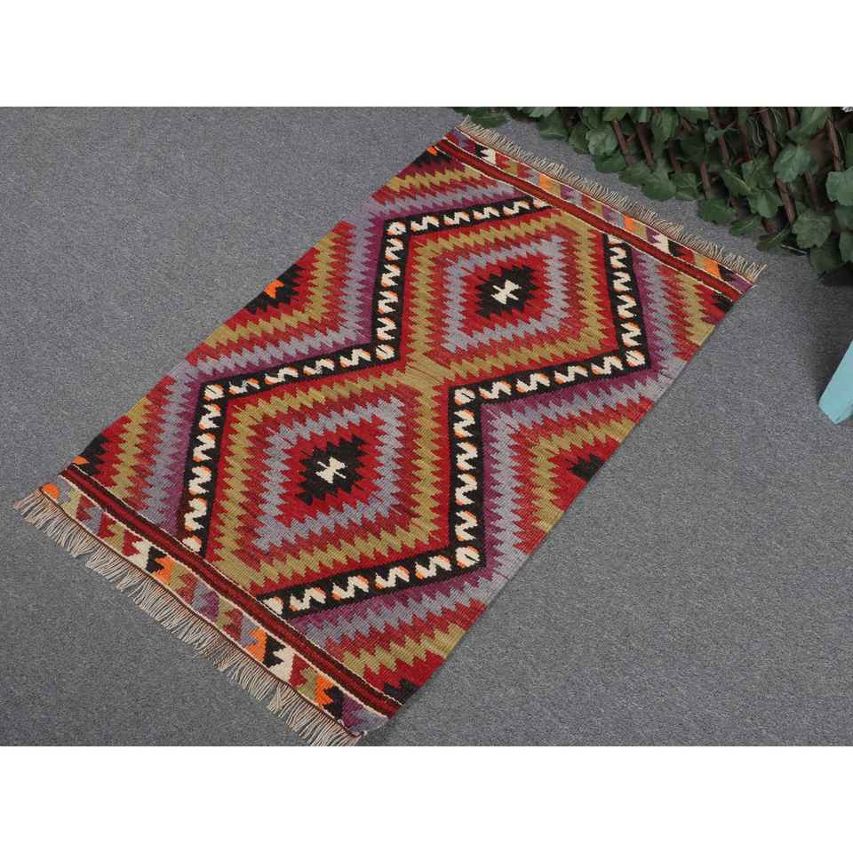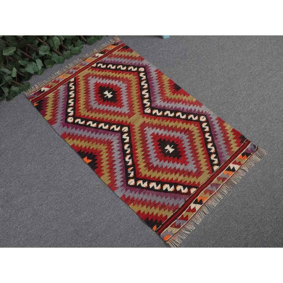 พรมตุรกีขนาดเล็ก, พรมวินเทจขนาด 2x3.3 ฟุต, พรมขนสัตว์ลายทางสีแดง