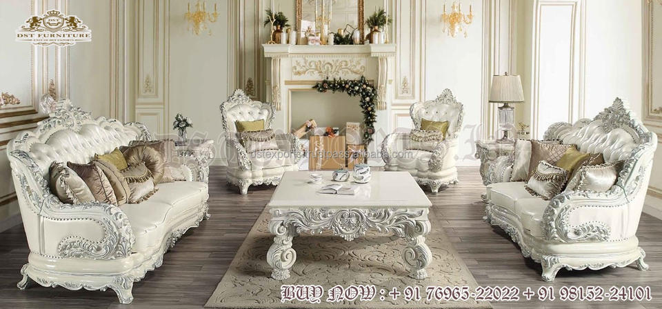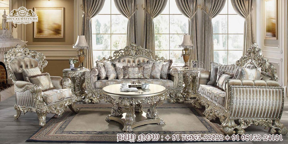 ชุดโซฟา5ที่นั่งแกะสลักหนักสไตล์ตุรกี,ชุดโซฟาไม้สักสีทองสำหรับบ้านชุดแกะสลักห้องนั่งเล่นสีทองรอยัล