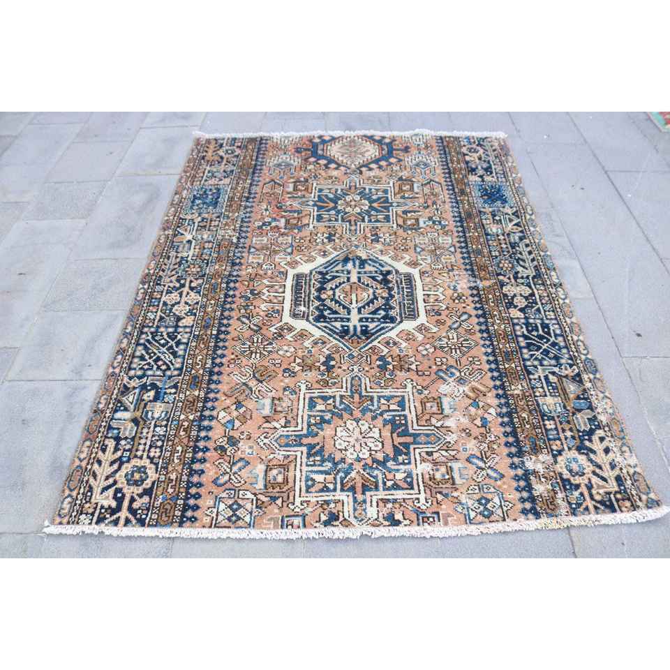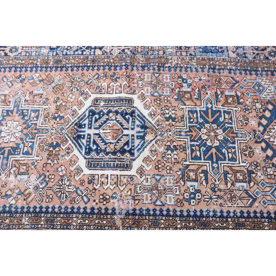 พรมวินเทจสไตล์ตุรกี ขนาด 4.7x6 ฟุต พรมขนสัตว์สีน้ำเงิน
