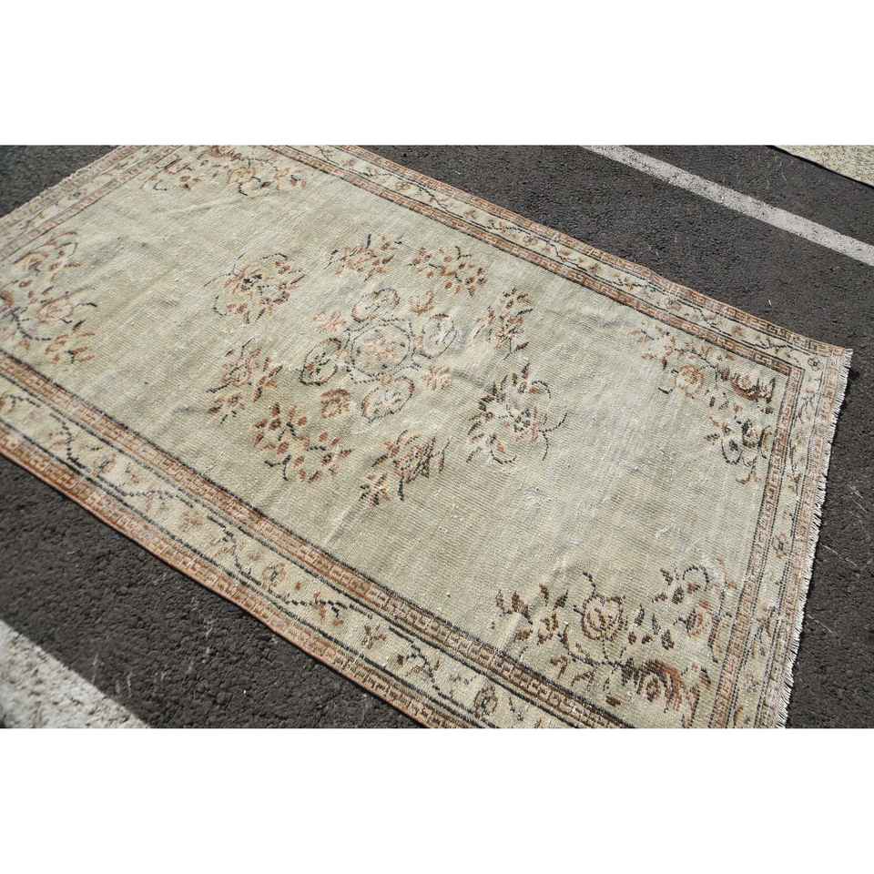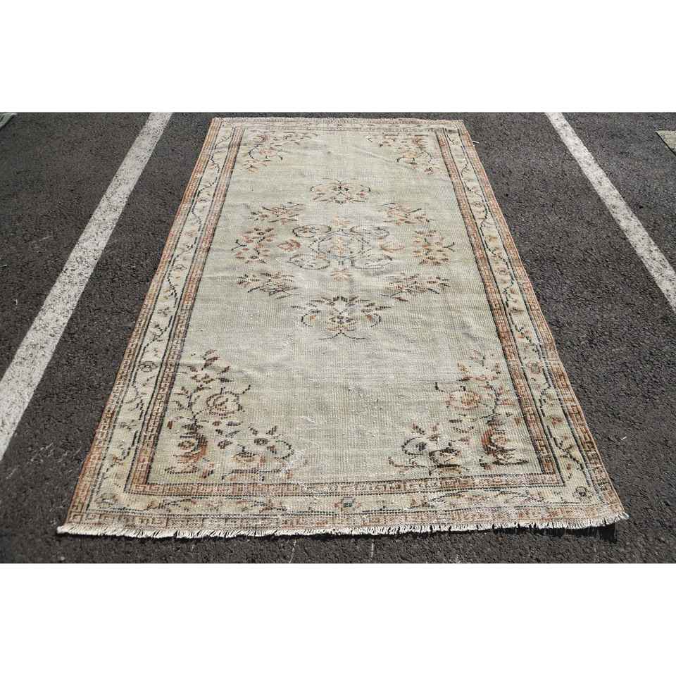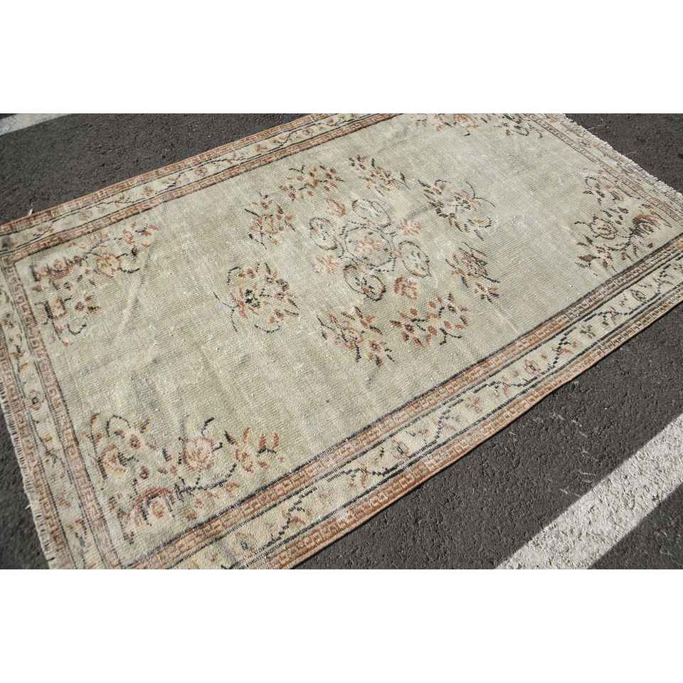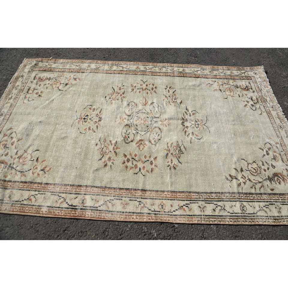 พรมวินเทจสไตล์ตุรกี ขนาด 5x7.8 ฟุต สีเบจน้ำตาล พรมขนสัตว์สไตล์ตะวันตกเฉียงใต้