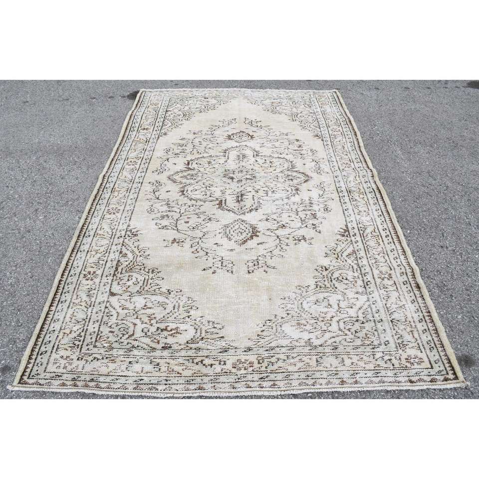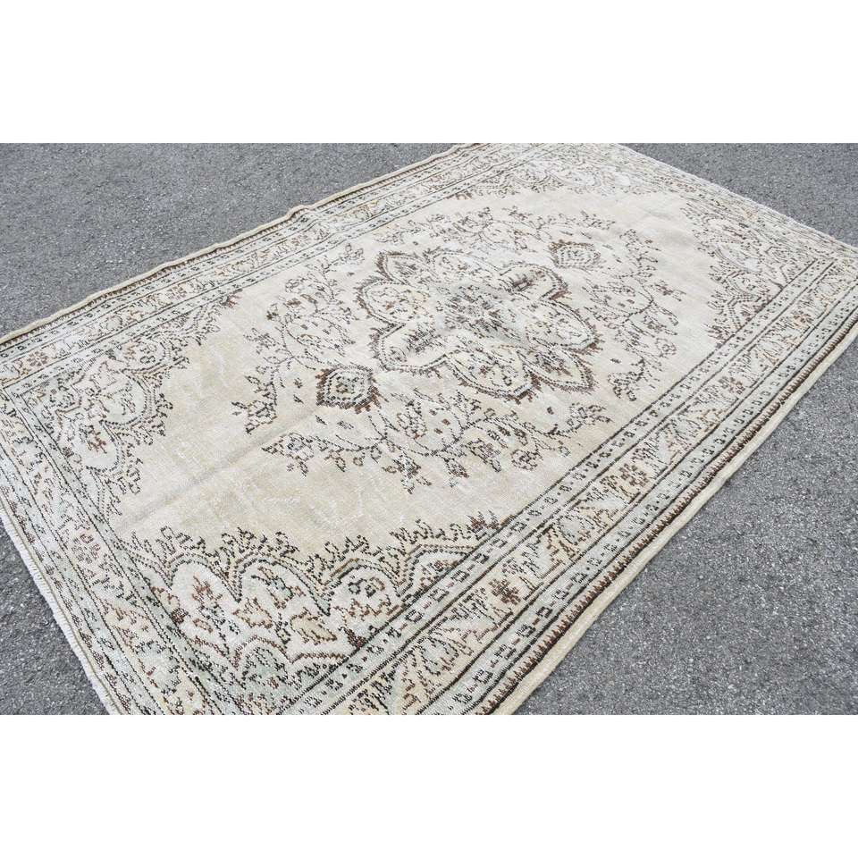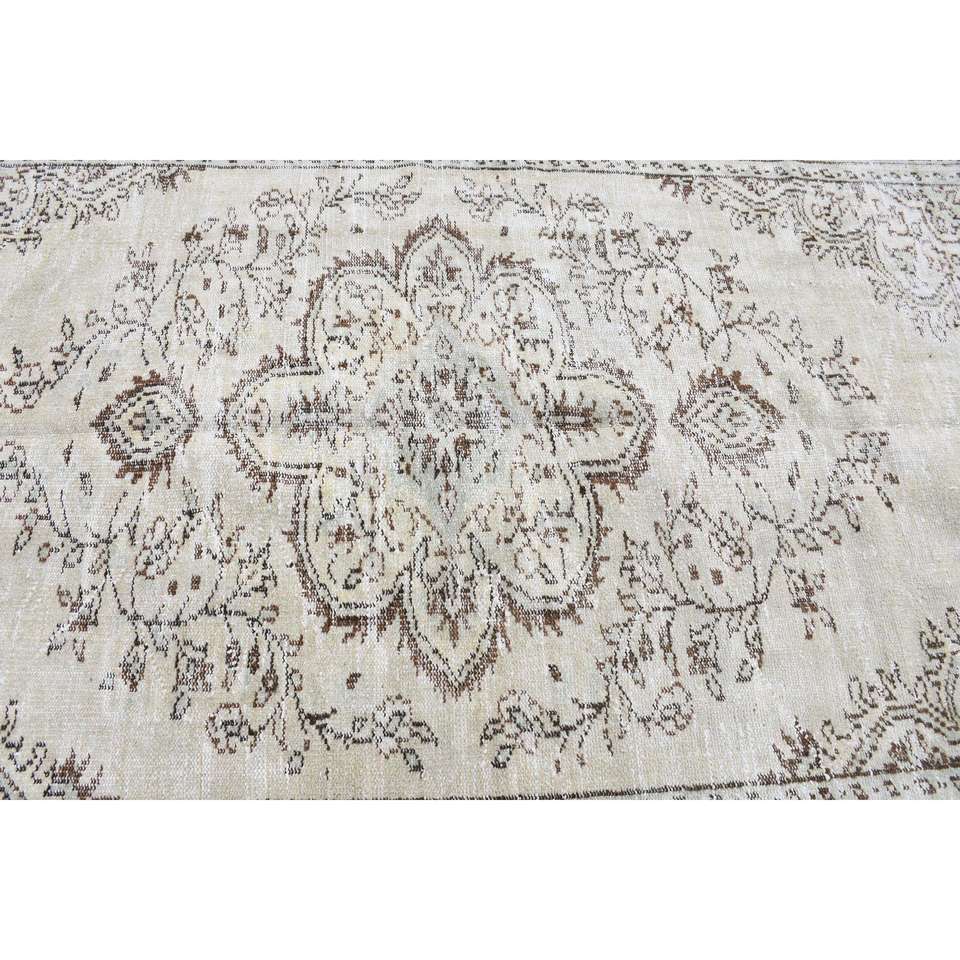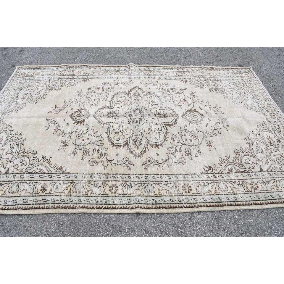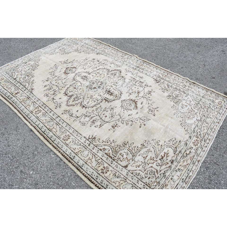 พรมวินเทจตุรกีขนาดใหญ่ 5.6x8.7 ฟุต (172x266 ซม.) ลายดอกไม้สีขาว