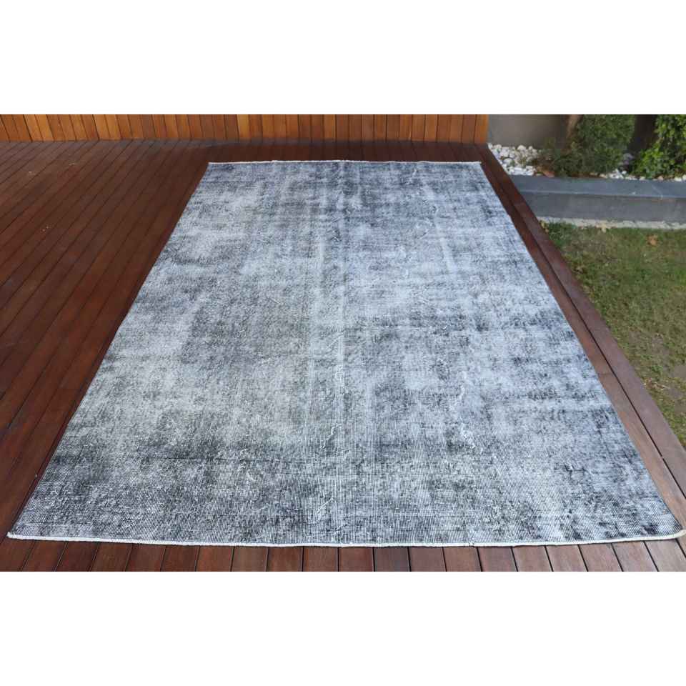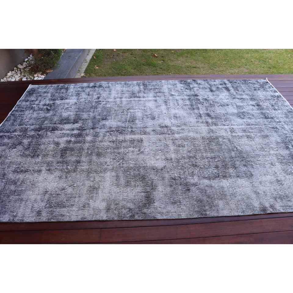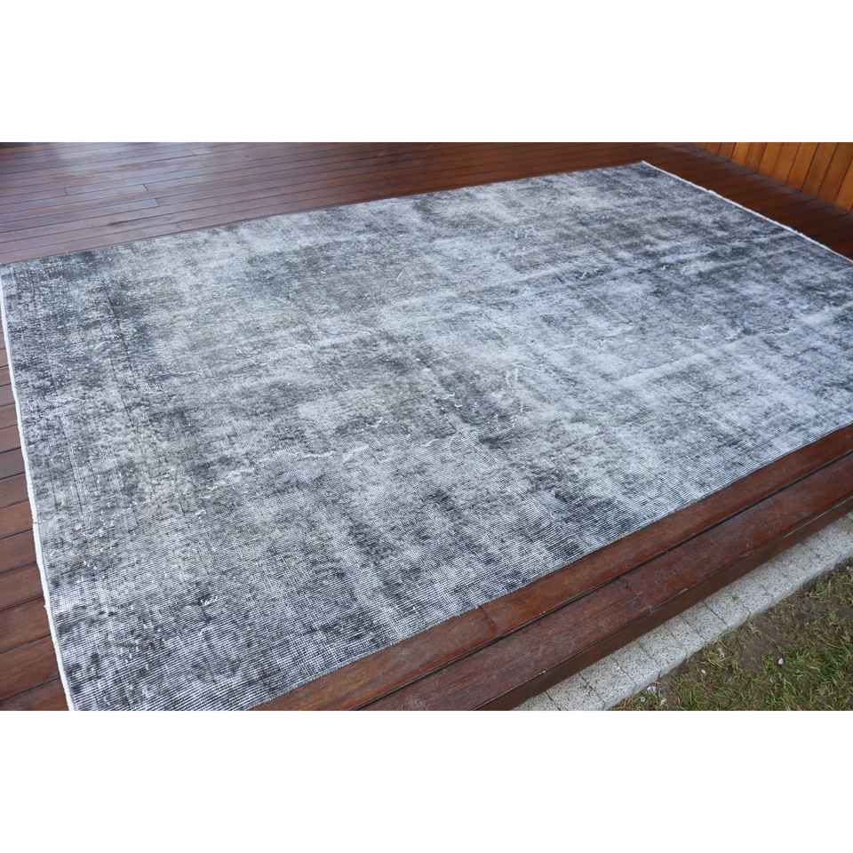 พรมวินเทจตุรกีขนาดใหญ่ 6.1x9.5 ฟุต สีเทา-ดำไล่เฉด