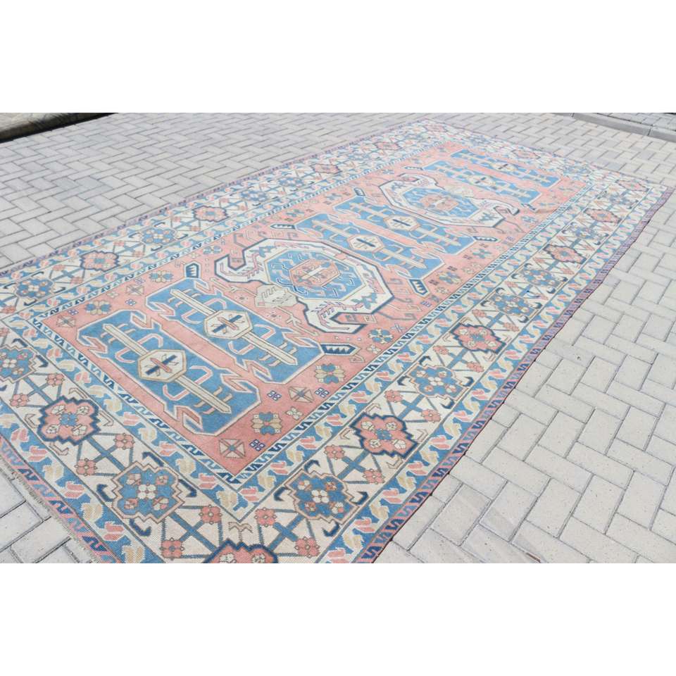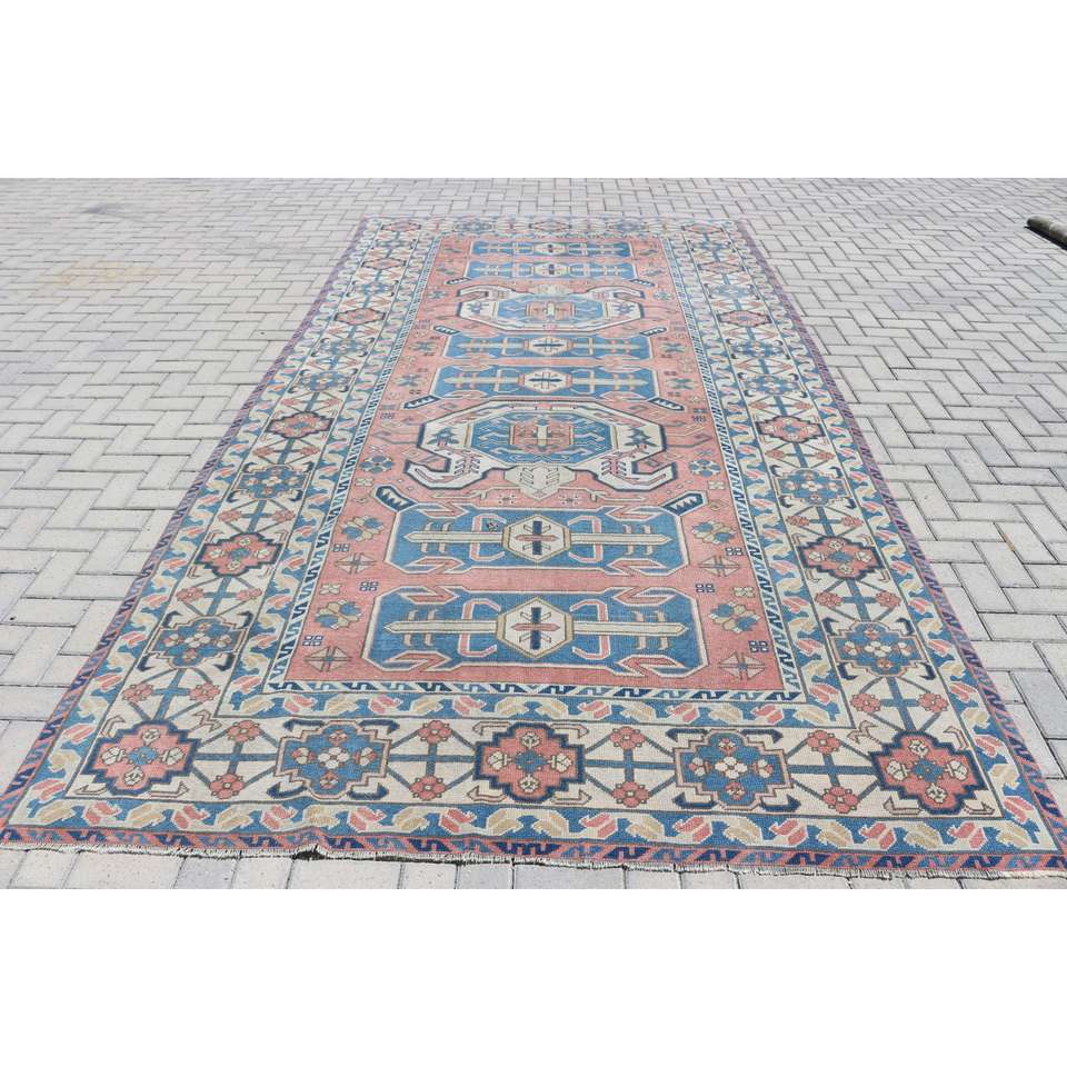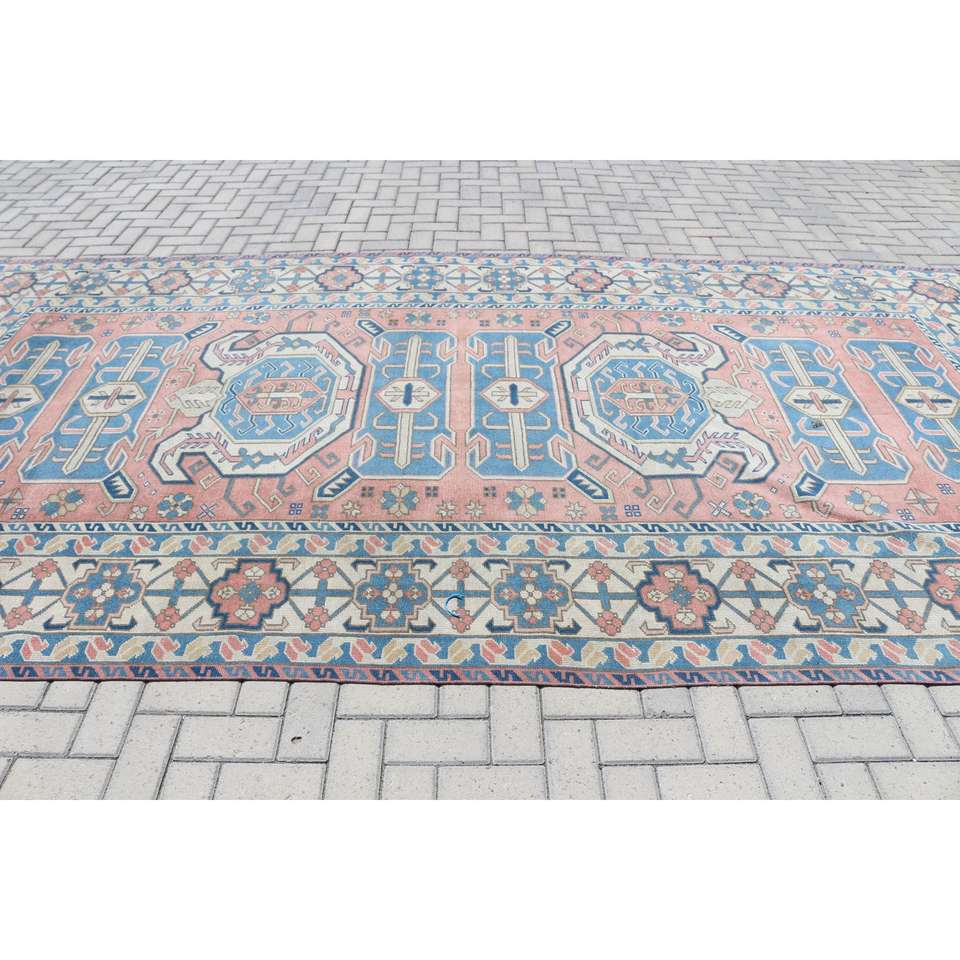 พรมวินเทจตุรกีขนาดใหญ่พิเศษ 6.9x13.5 ฟุต (210x412 ซม.) พรมลายปะติดสีน้ำเงิน