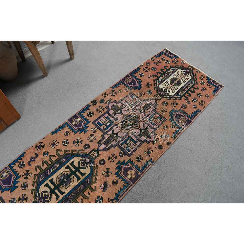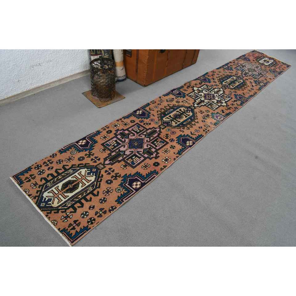 พรมวินเทจสไตล์ตุรกี ขนาด 2x12.2 ฟุต (61x372 ซม.) สีน้ำตาล ขอบสีน้ำตาล ทำจากขนสัตว์ พร้อมแผ่นรองหลังทำจากยางพารา เป็นมิตรต่อสิ่งแวดล้อม