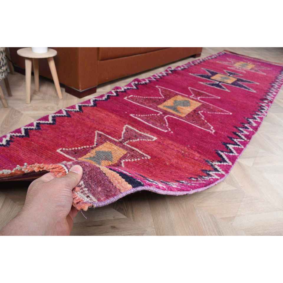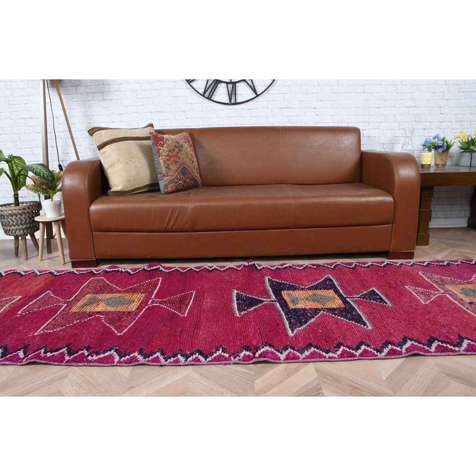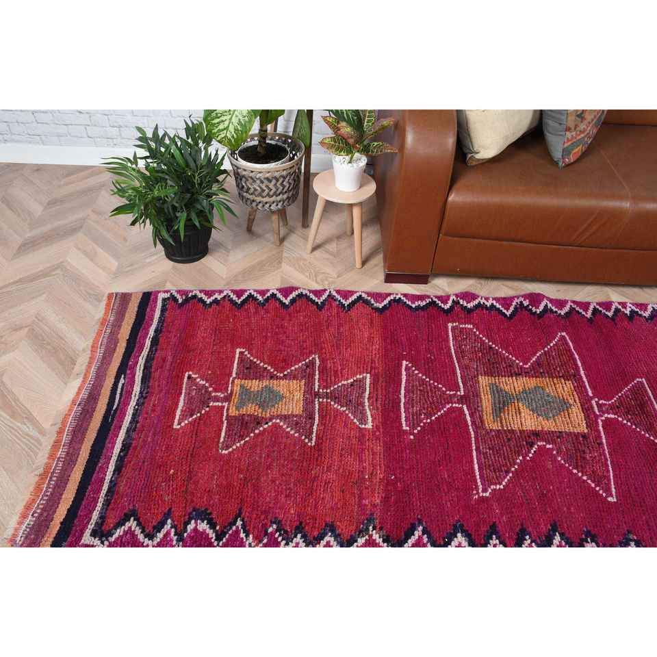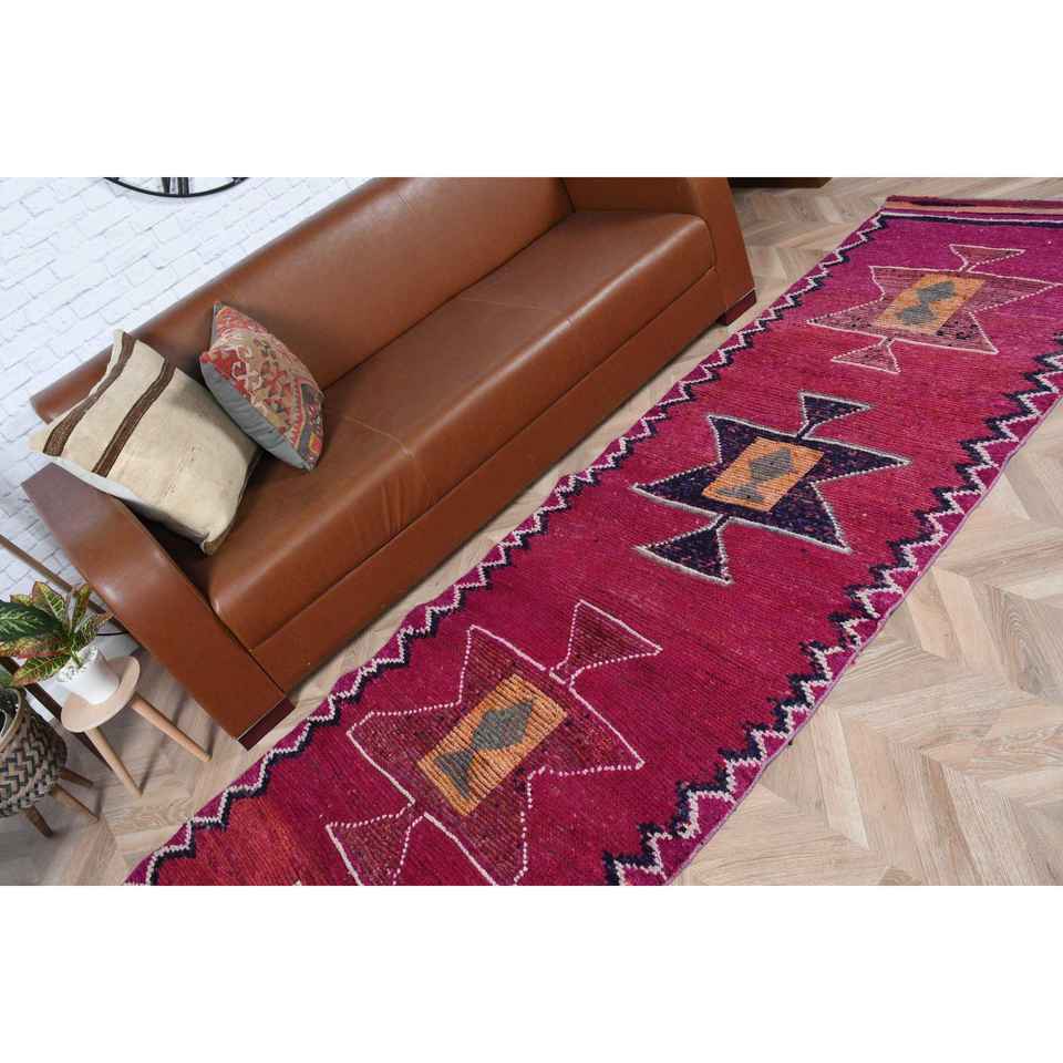 พรมวินเทจสไตล์ตุรกี ลายปะติดปะต่อ เป็นมิตรกับสิ่งแวดล้อม ทำจากขนสัตว์สีแดง พร้อมแผ่นรองหลังทำจากยางลาเท็กซ์ ขนาด 3x11.7 ฟุต สำหรับตกแต่งบ้าน