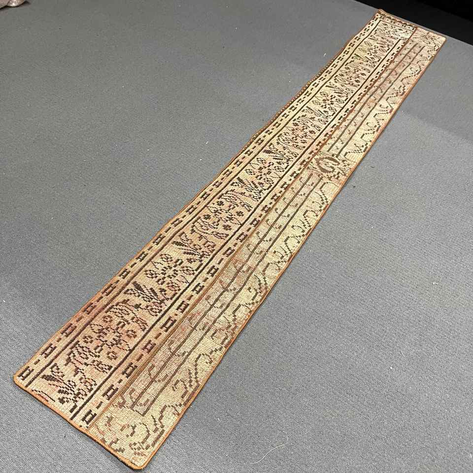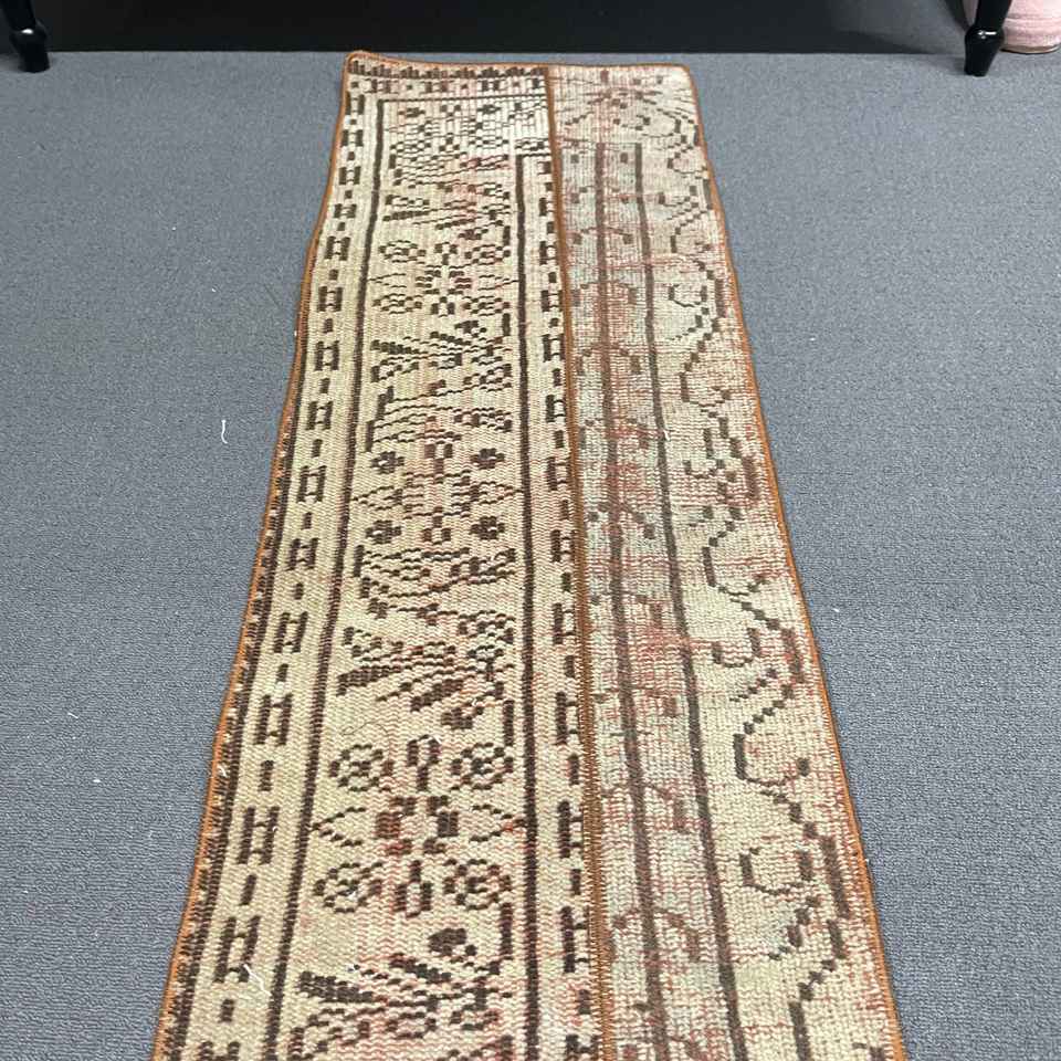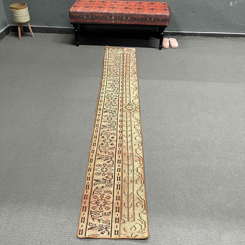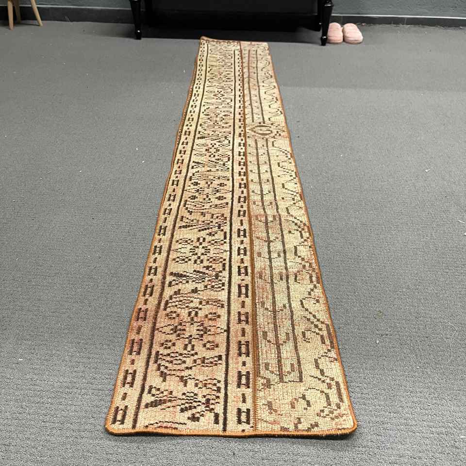 พรมวินเทจสไตล์ตุรกี, พรมปูพื้นขนาด 1.3x8.2 ฟุต, พรมลายต้นไม้และพืชสีน้ำตาลส้มทำจากขนสัตว์