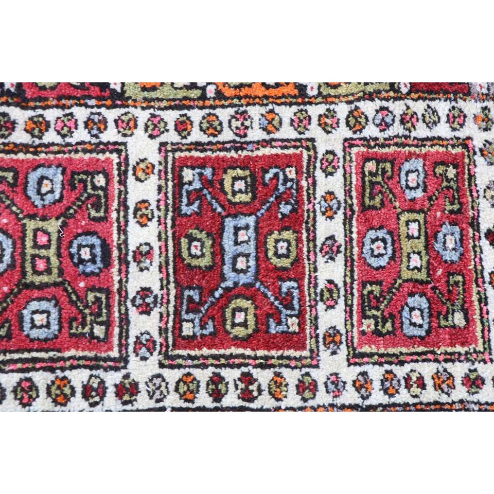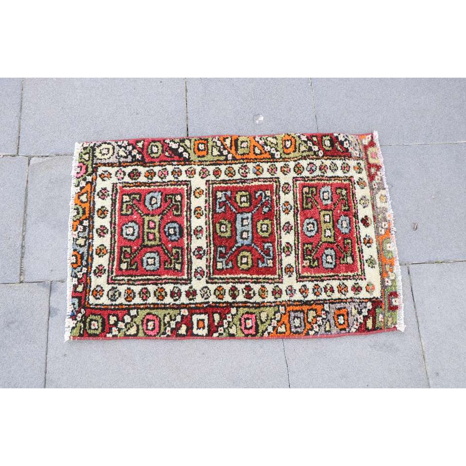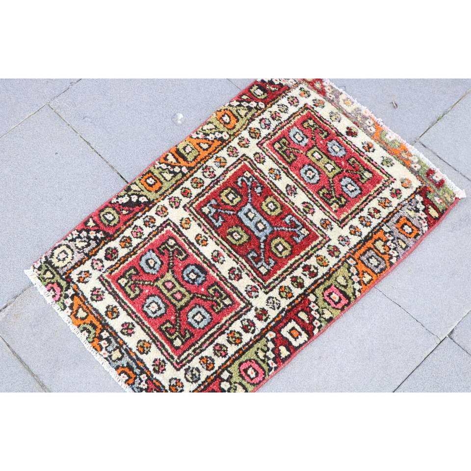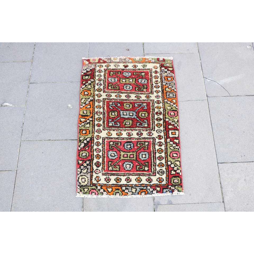พรมวินเทจตุรกี ขนาด 1.5x2.2 ฟุต พรมขนสัตว์ขอบสีแดงส้ม