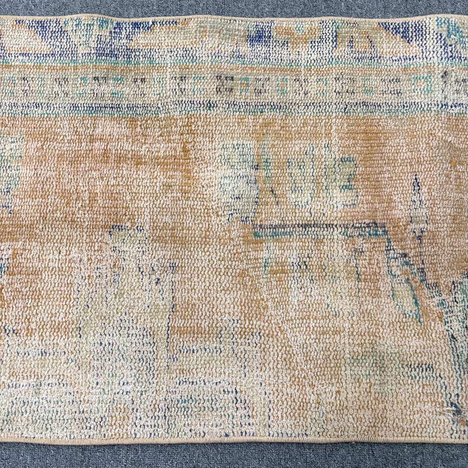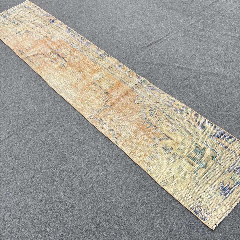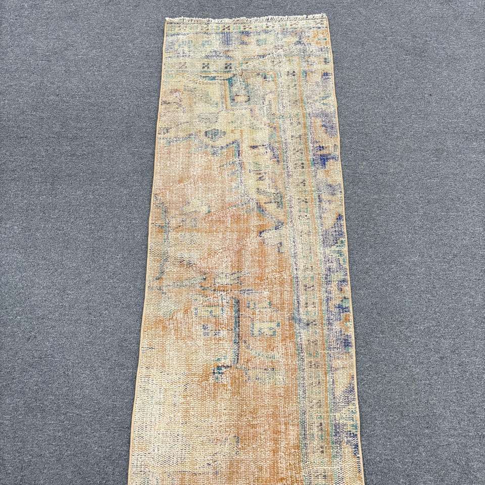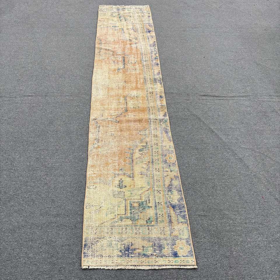 พรมวินเทจตุรกี ขนาด 1.8x8.9 ฟุต (55x271 ซม.) สีน้ำตาล-น้ำเงิน ลายต้นไม้และพืช