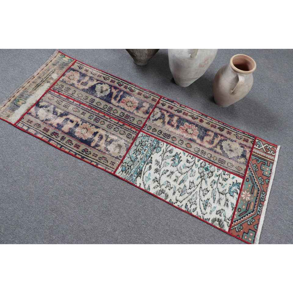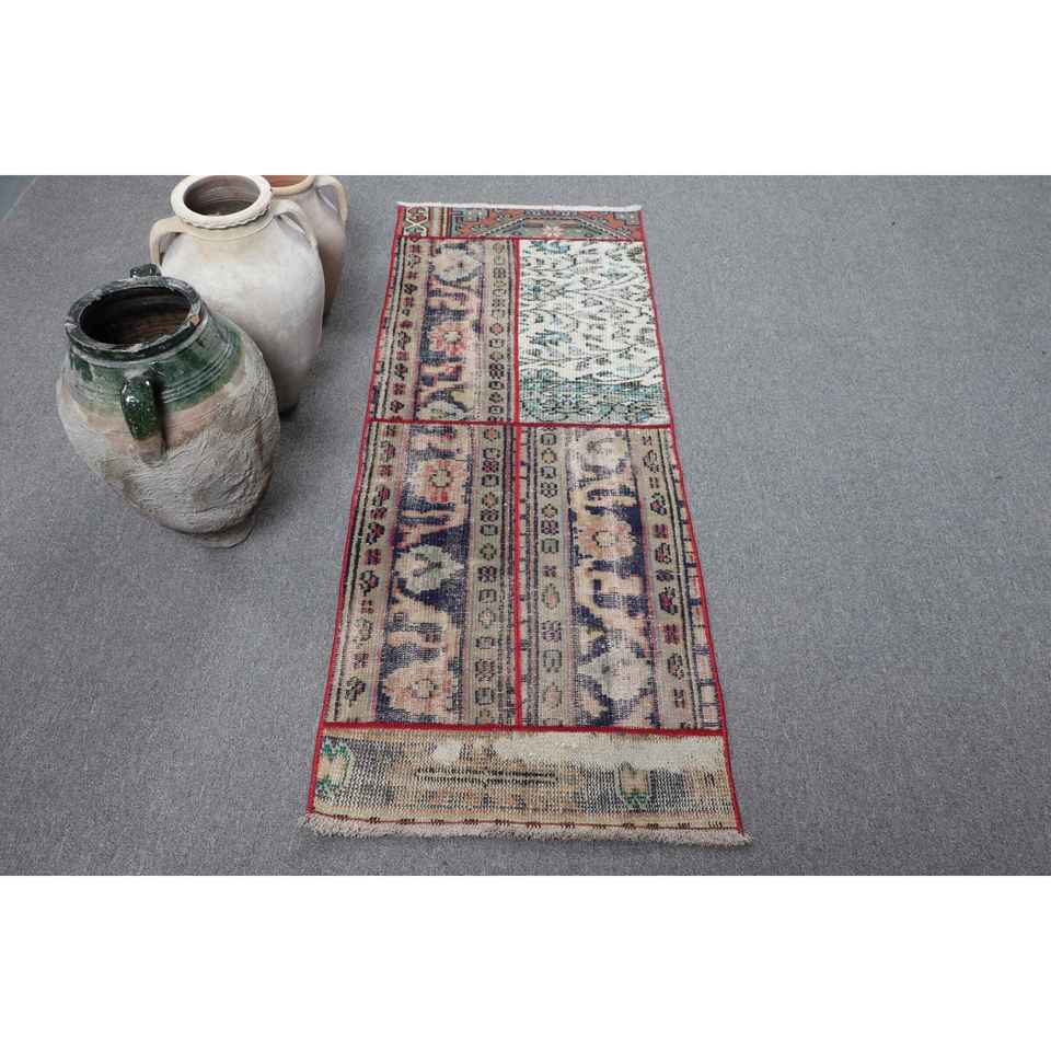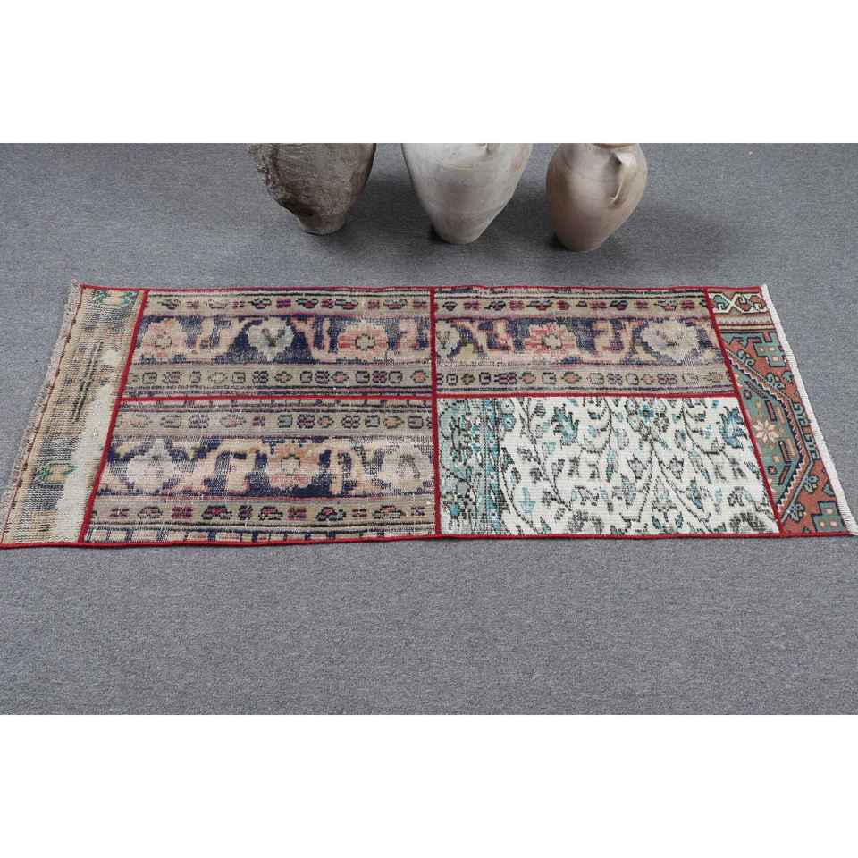พรมวินเทจสไตล์ตุรกี ขนาด 2.1x5.4 ฟุต พรมขนสัตว์สีน้ำเงินลายแบบนามธรรม