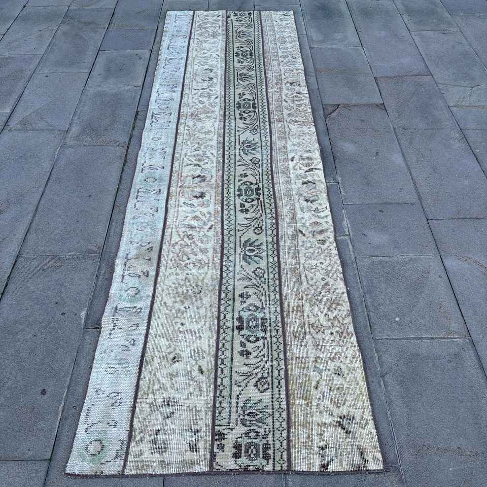 พรมวินเทจสไตล์ตุรกี, พรมปูพื้นขนาด 2.7x9.3 ฟุต, พรมขอบสีเทา