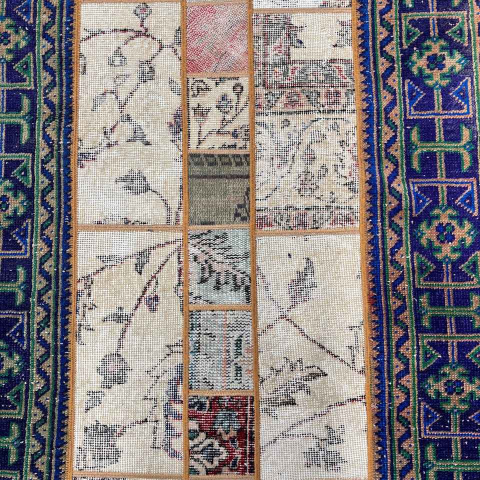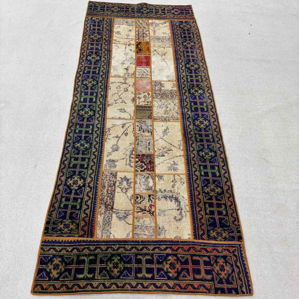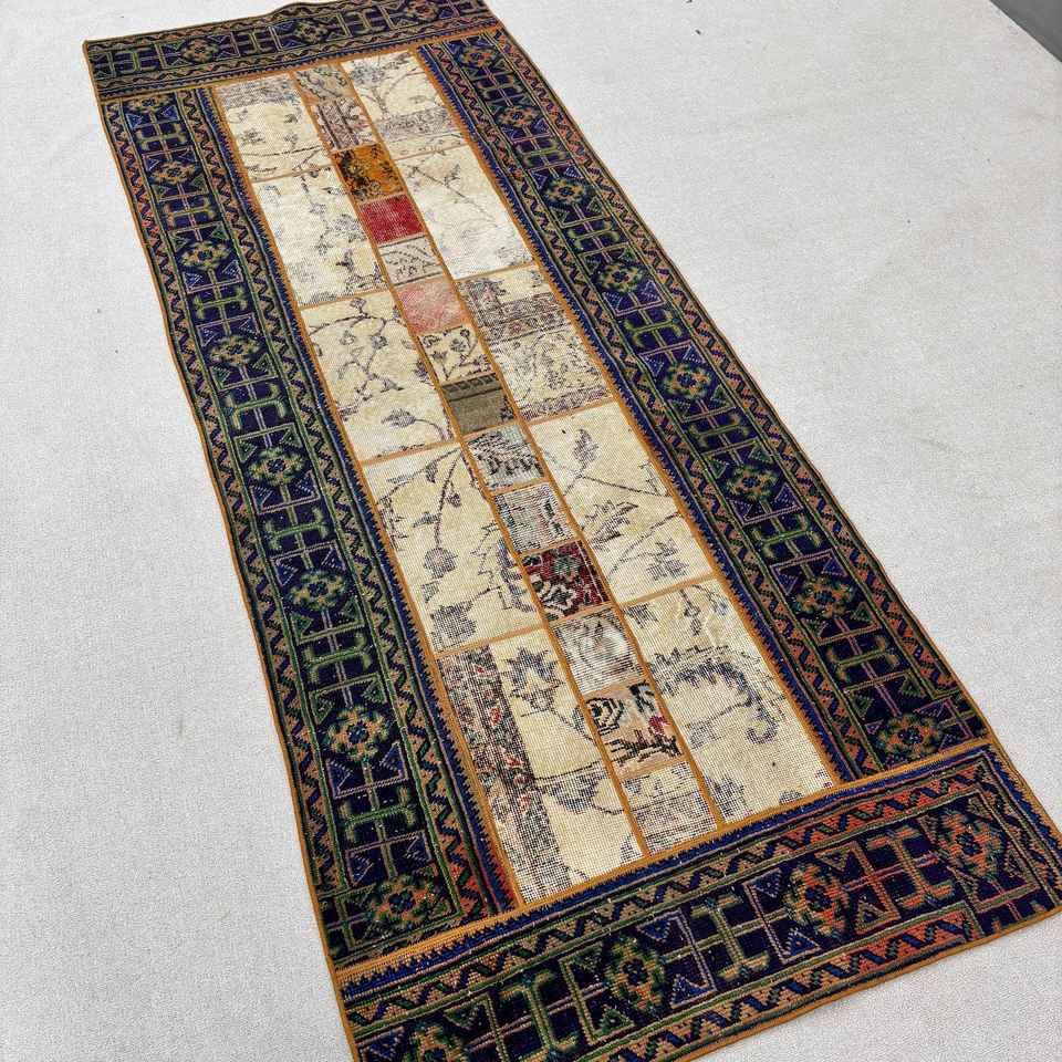 พรมวินเทจตุรกี ขนาด 3.5x8.9 ฟุต สีน้ำเงินล้วน
