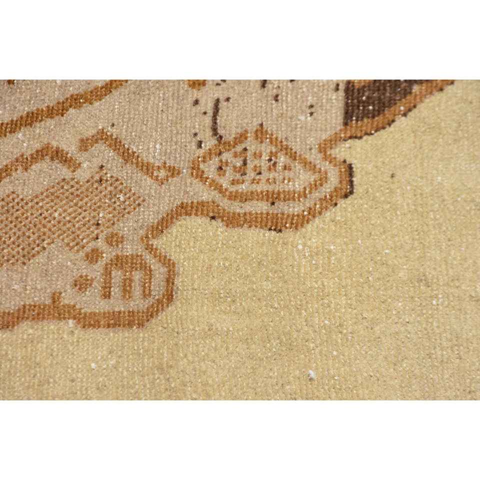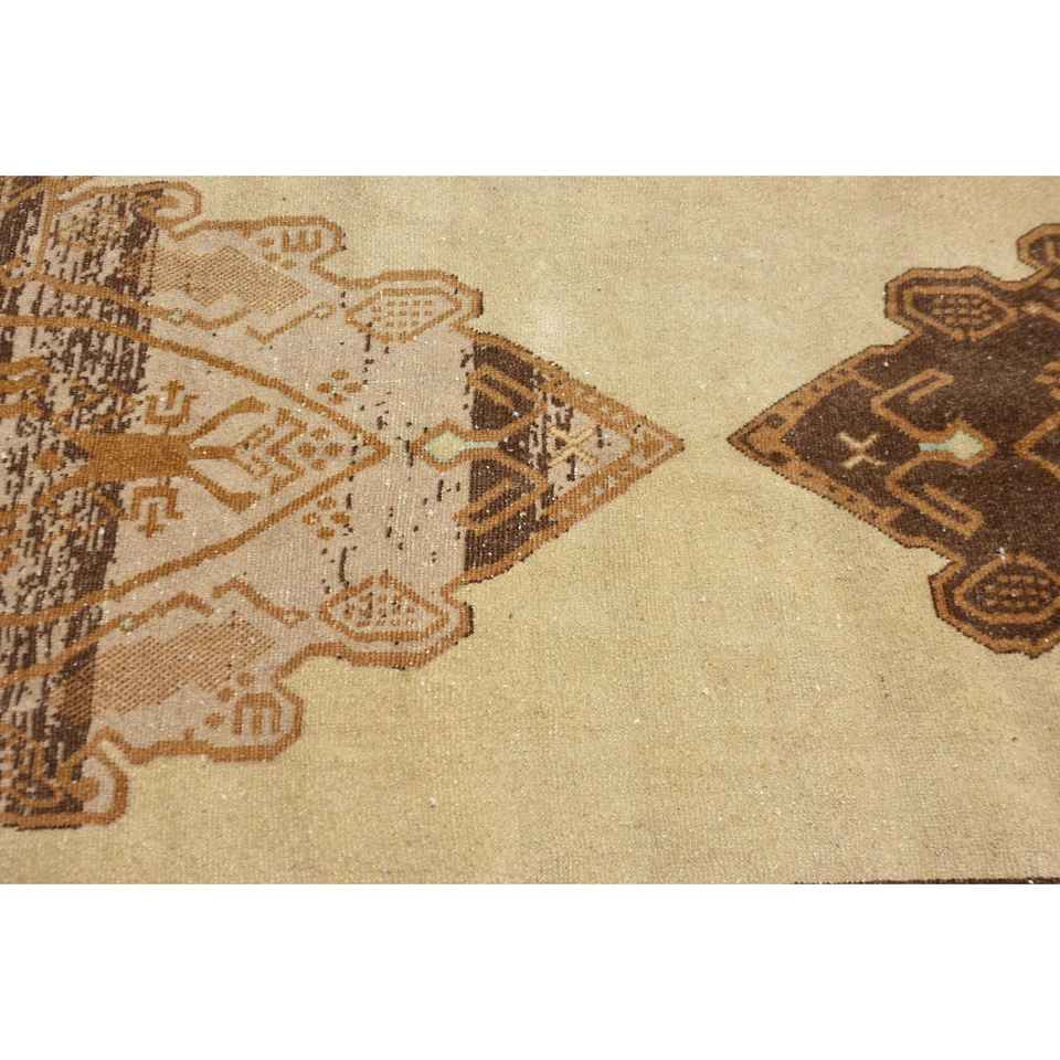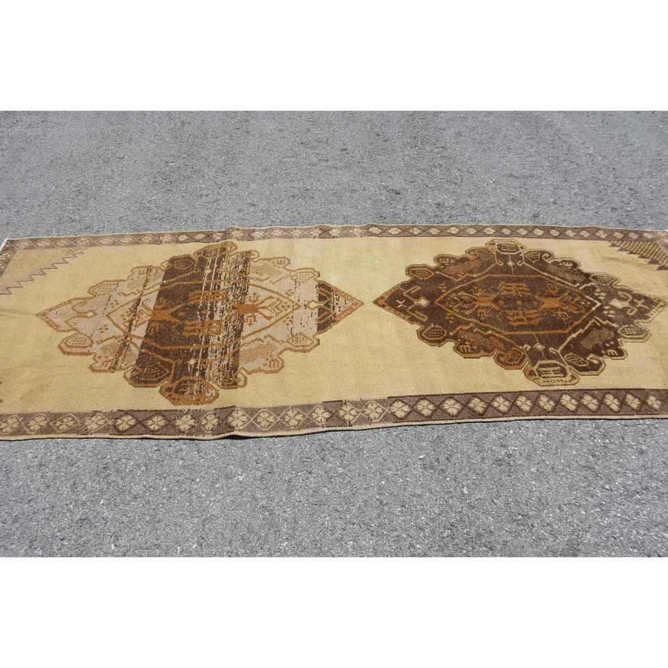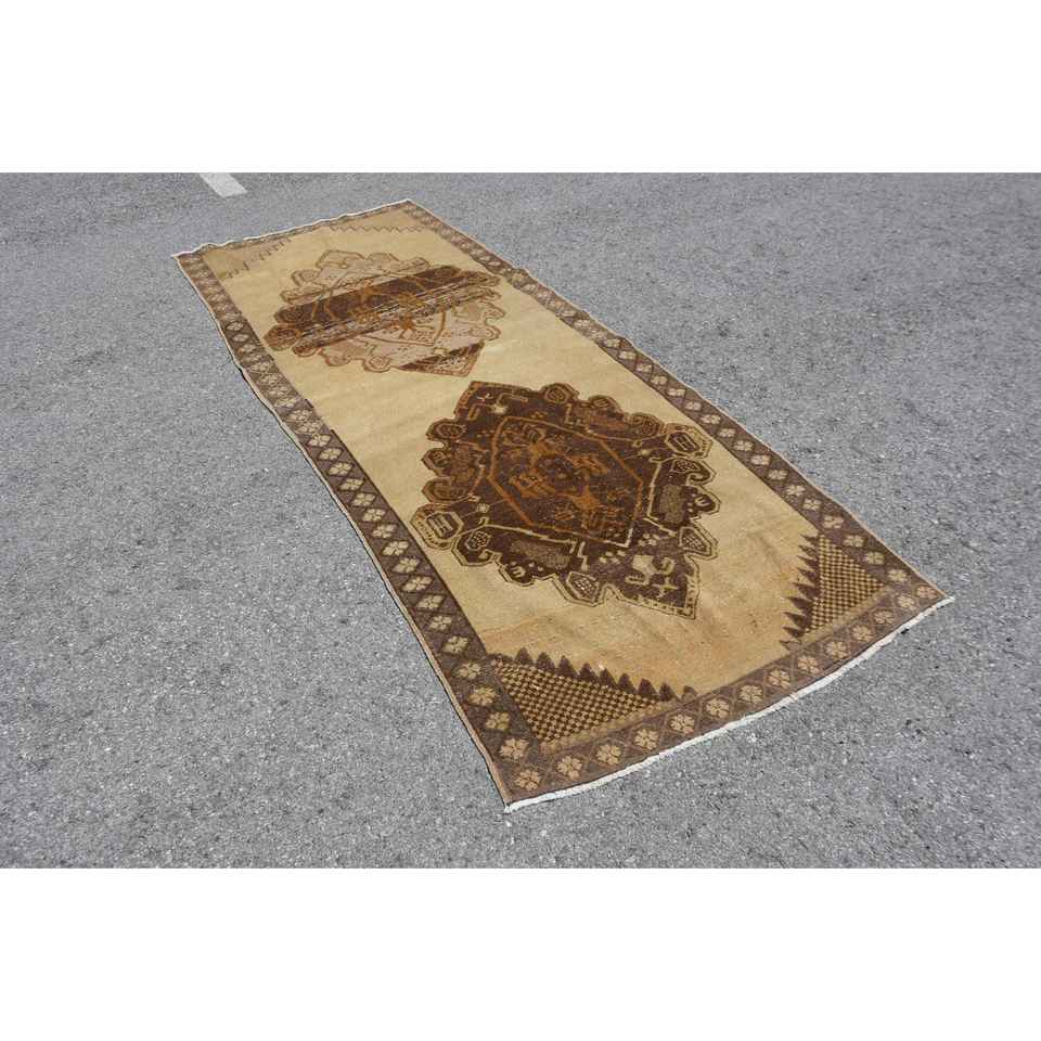 พรมวินเทจสไตล์ตุรกี ขนาด 3.8x10.8 ฟุต พรมลายทางสีน้ำตาล