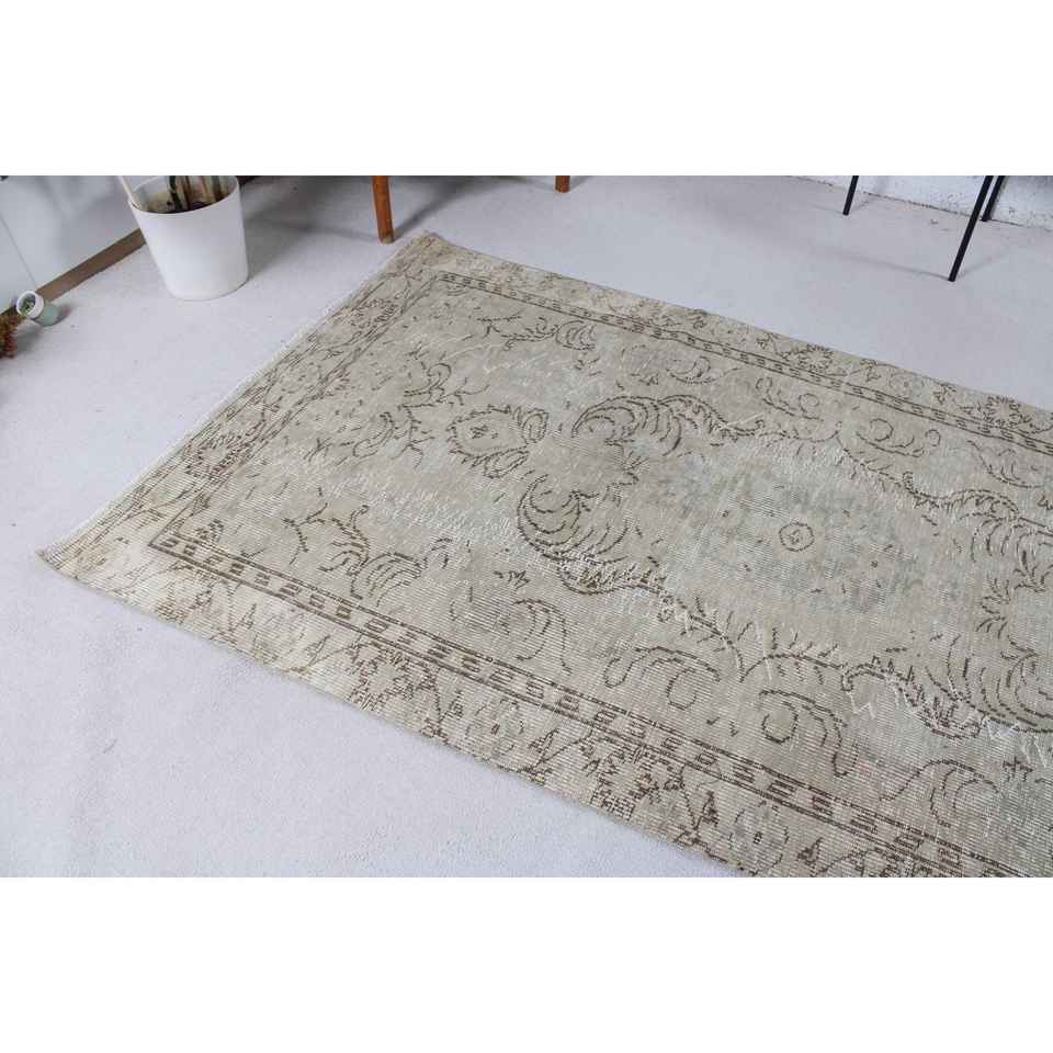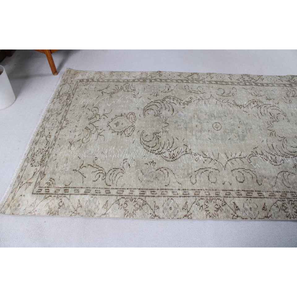 พรมวินเทจสไตล์ตุรกี ขนาด 4.5x8.7 ฟุต พรมลายทางสีเทาน้ำตาล