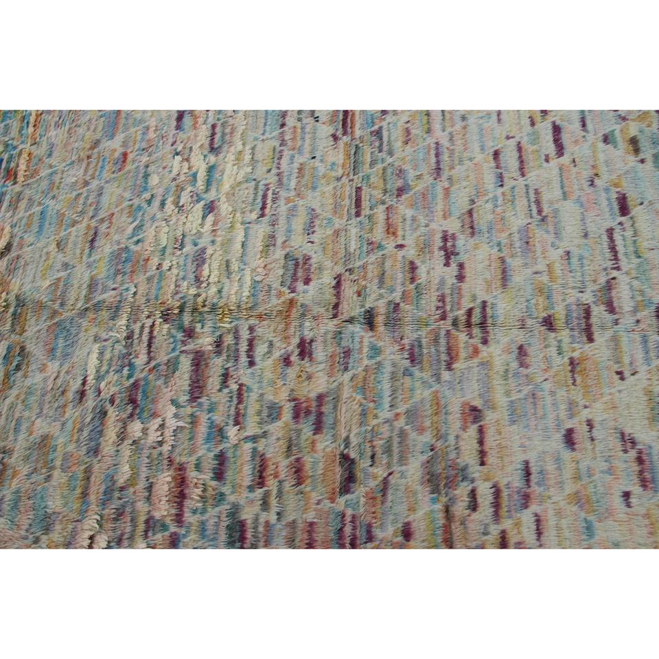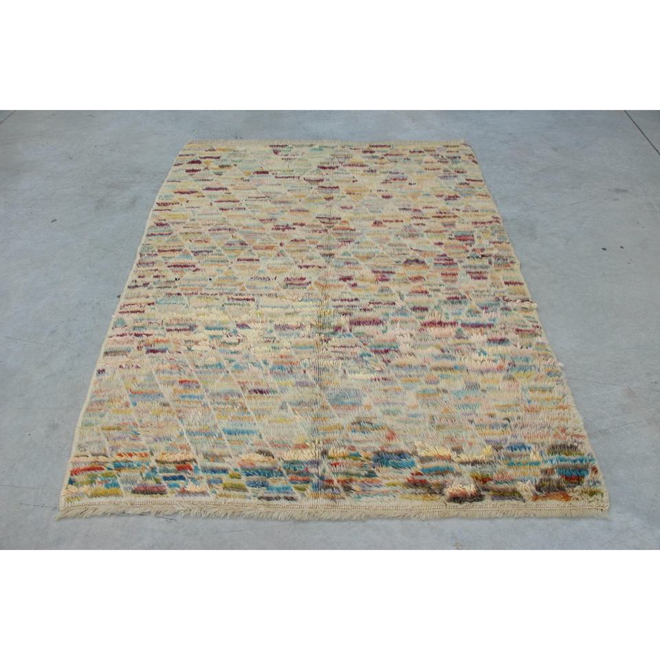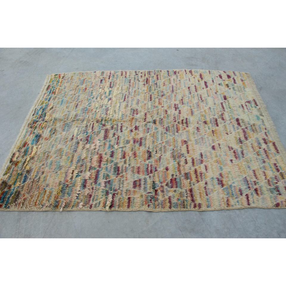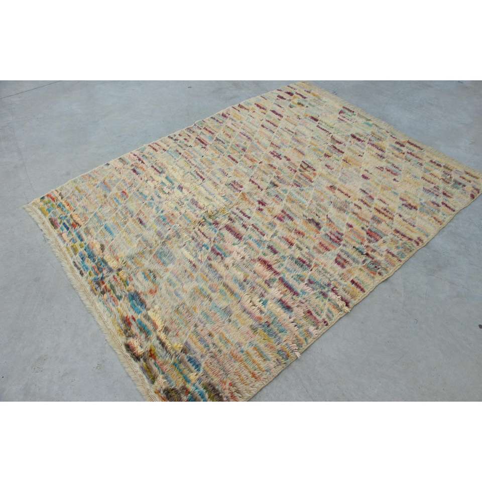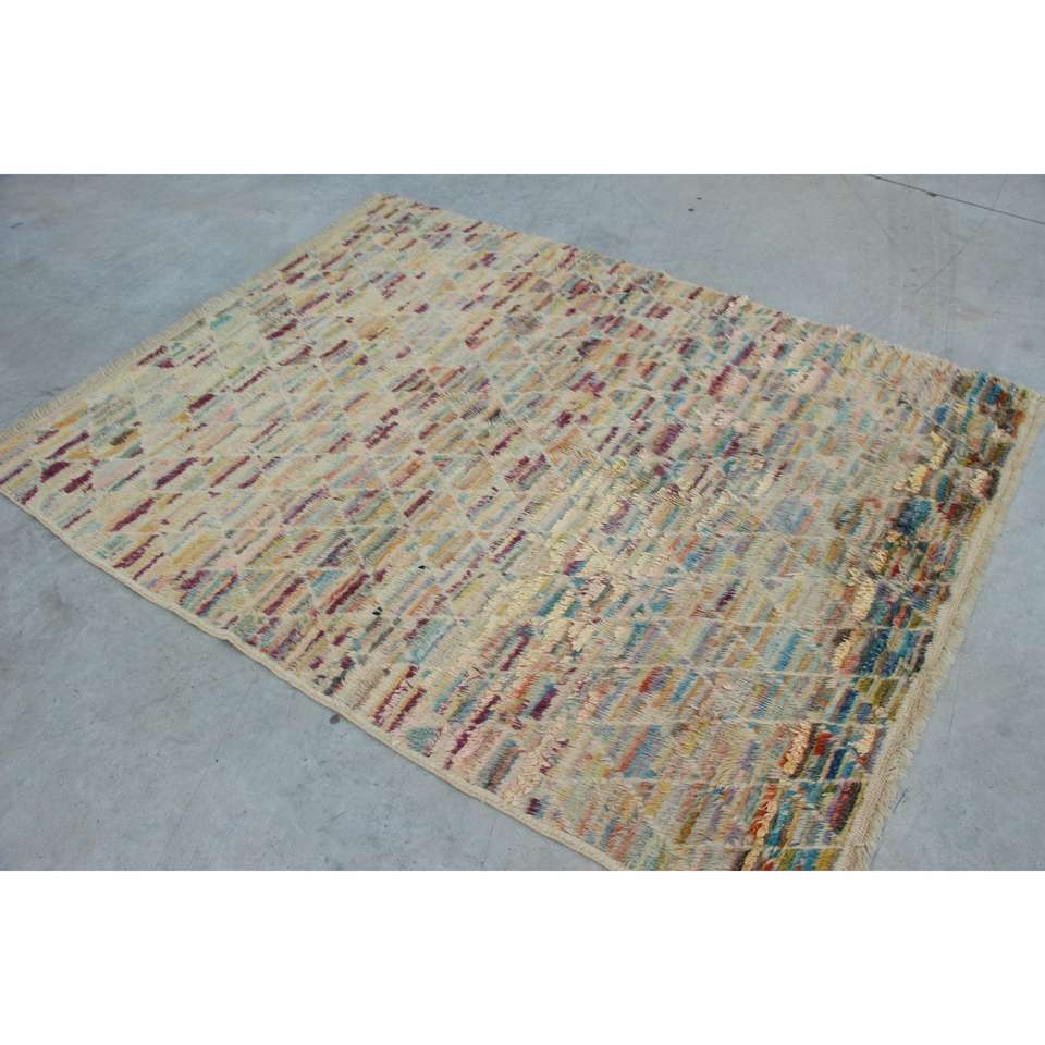 พรมวินเทจสไตล์ตุรกี ขนาด 4.8x6.4 ฟุต พรมสีเหลืองน้ำเงินสไตล์ตะวันตกเฉียงใต้