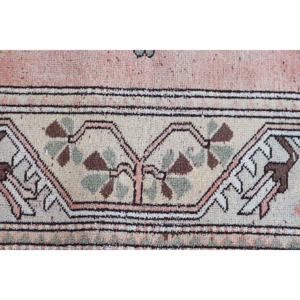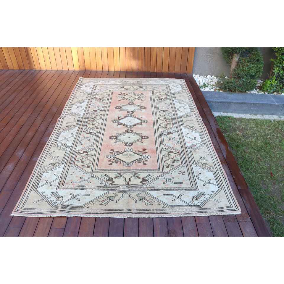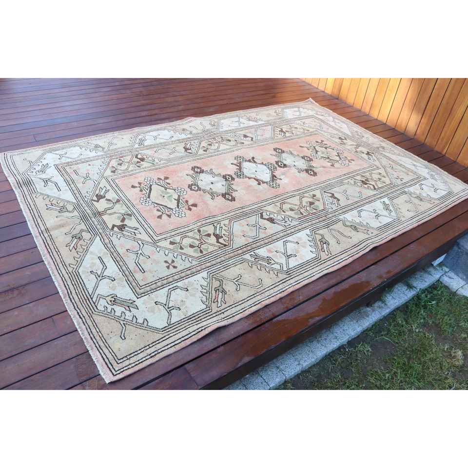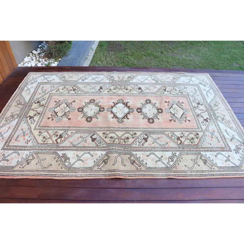 พรมวินเทจตุรกี ขนาด 5.1x7.7 ฟุต (154x236 ซม.) สีขาวชมพู ลายต้นไม้และพืช