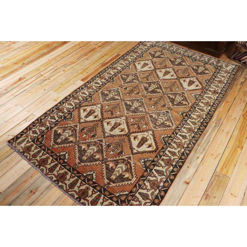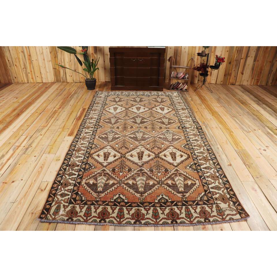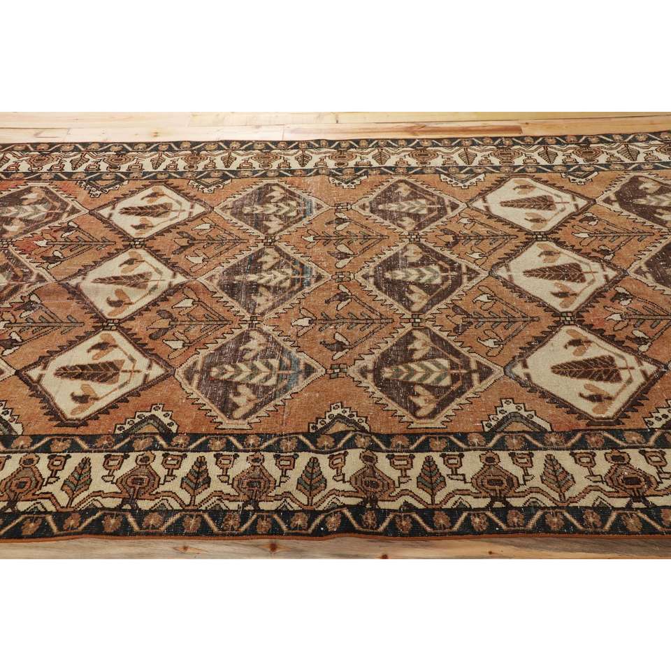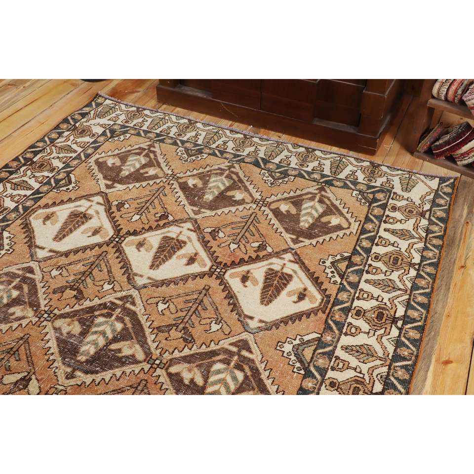พรมวินเทจตุรกี ขนาด 5.3x9.3 ฟุต พรมขนสัตว์เปอร์เซียสีน้ำตาล