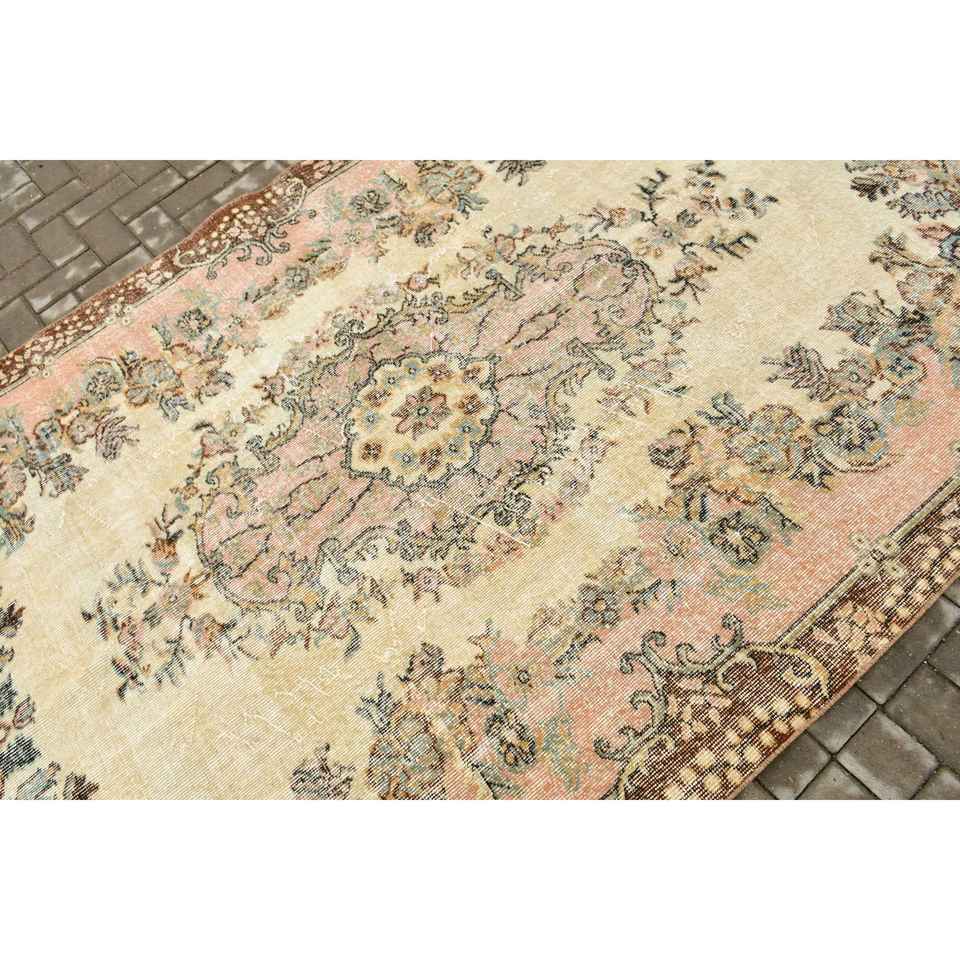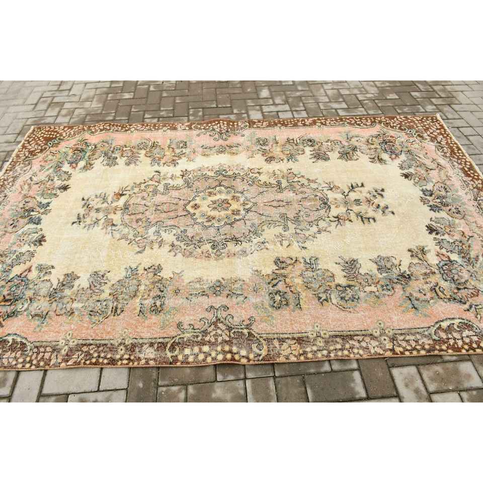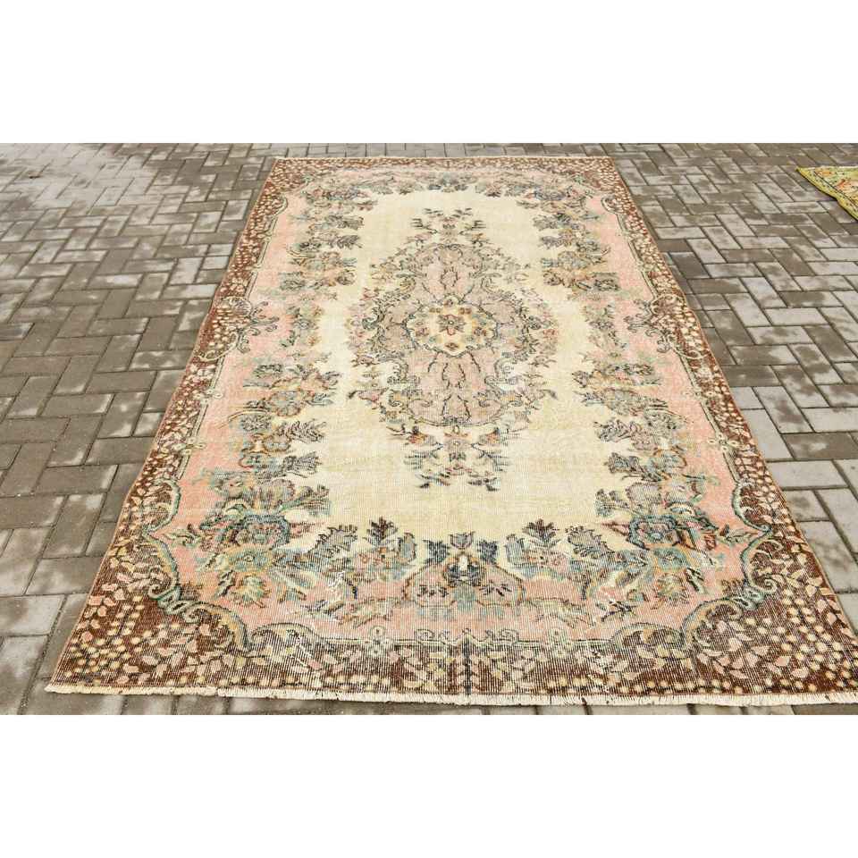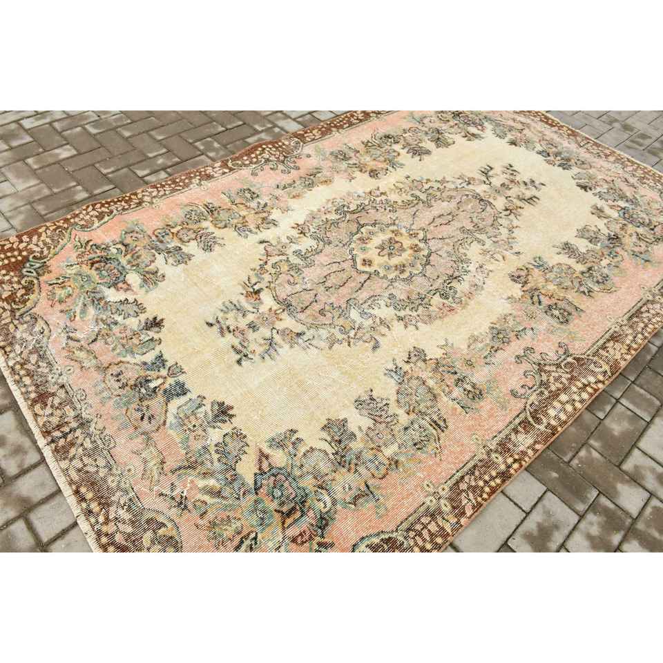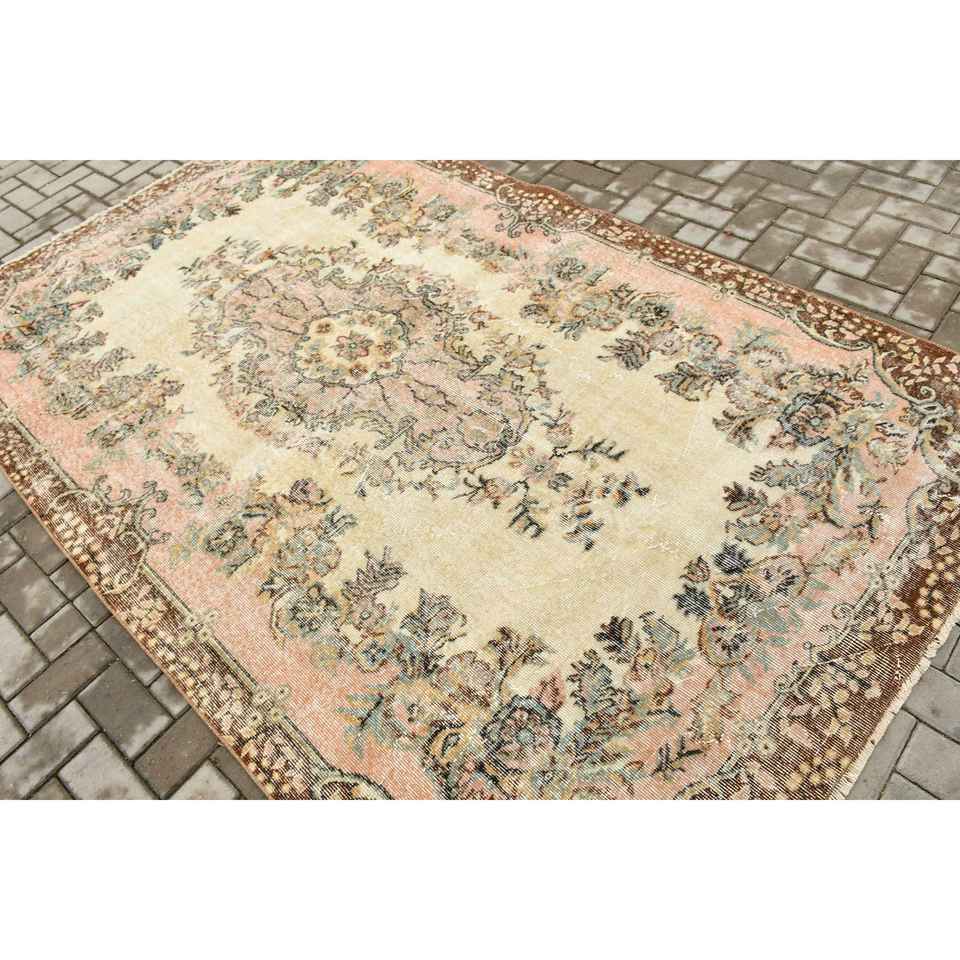 พรมวินเทจตุรกี ขนาด 5.5x8.8 ฟุต (168x269 ซม.) สีน้ำตาลขอบชมพู